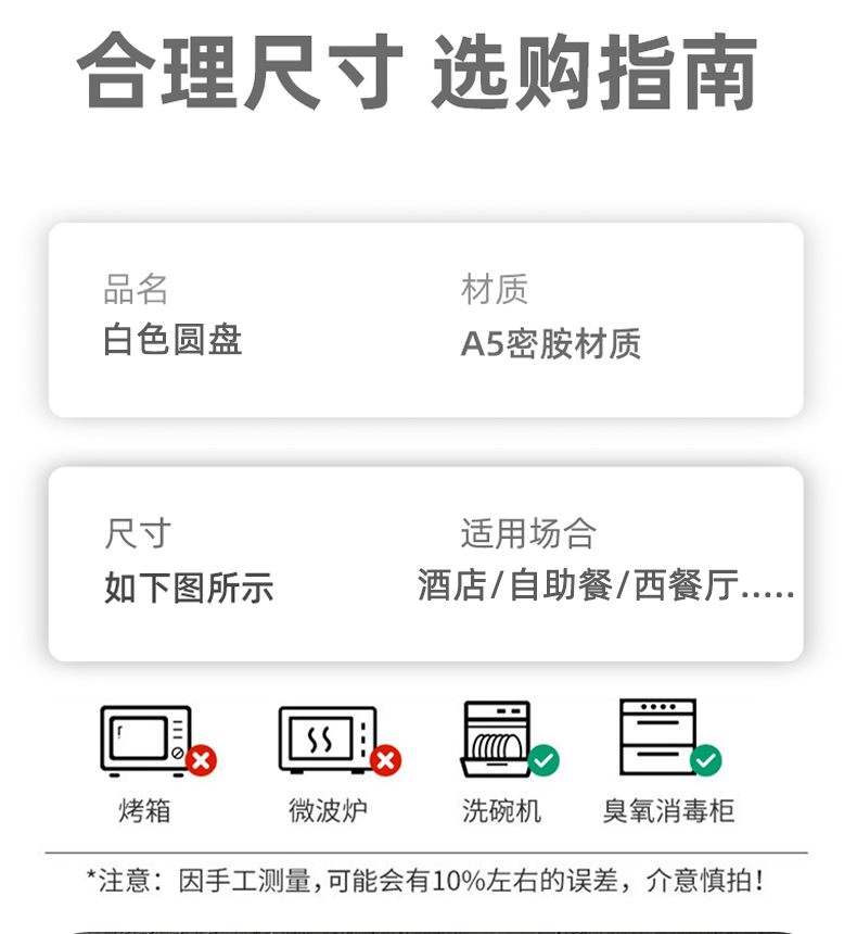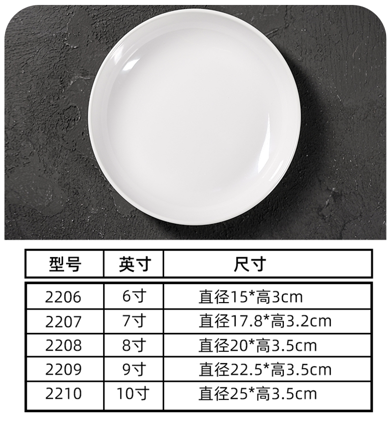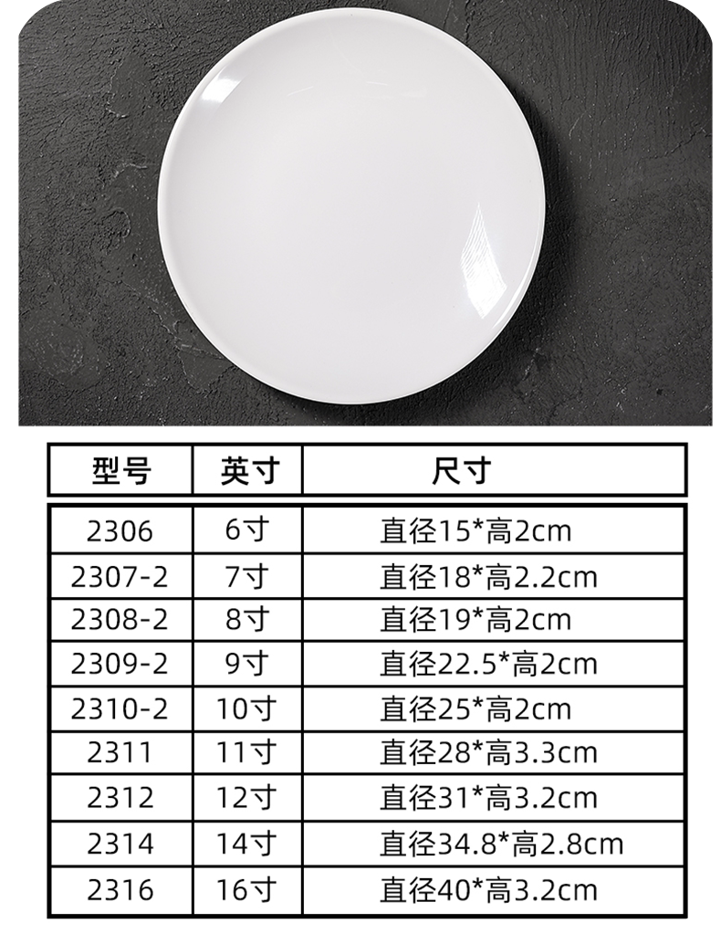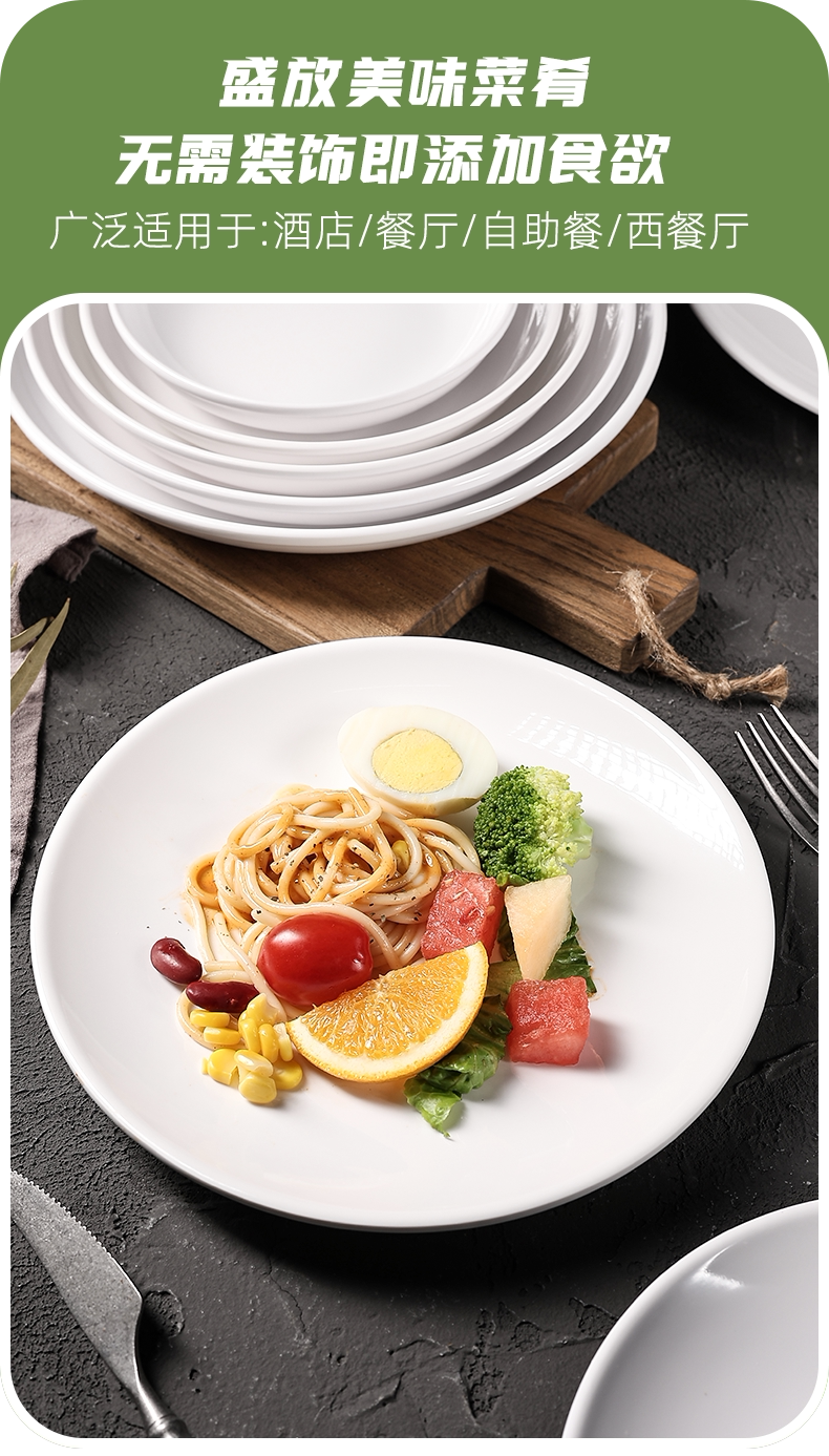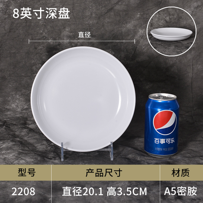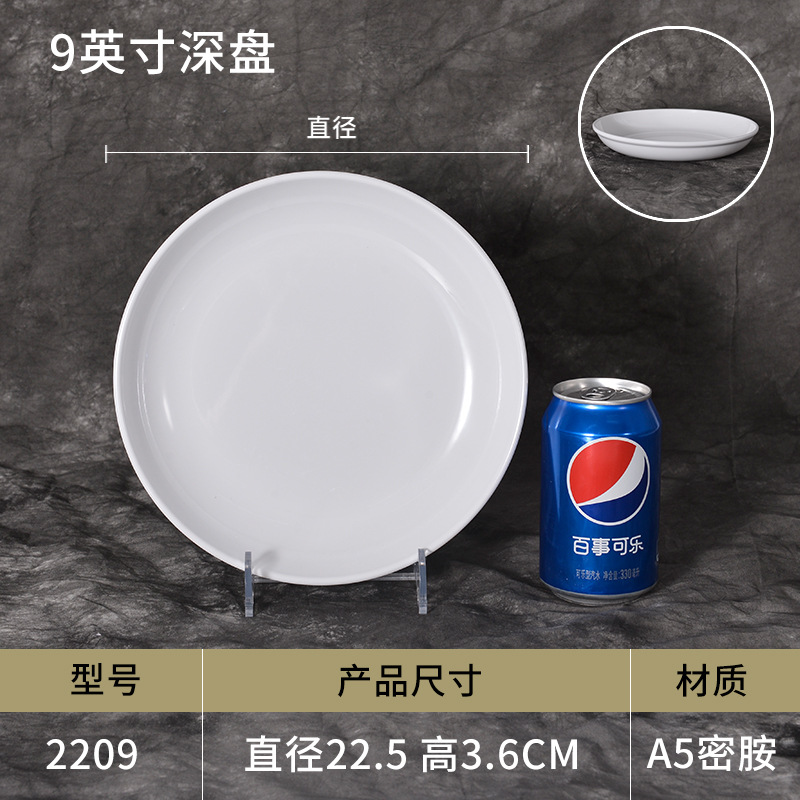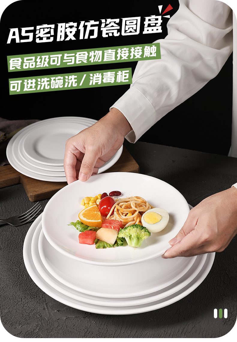 A5 멜라민 접시, 고급 모조 도자기 플라스틱 원형 접시, 레스토랑 상업용 호텔 호텔 특별 흰색 셀프 서비스 접시스토어 가기