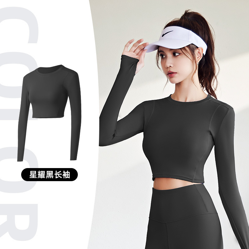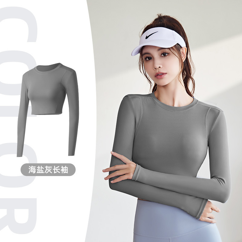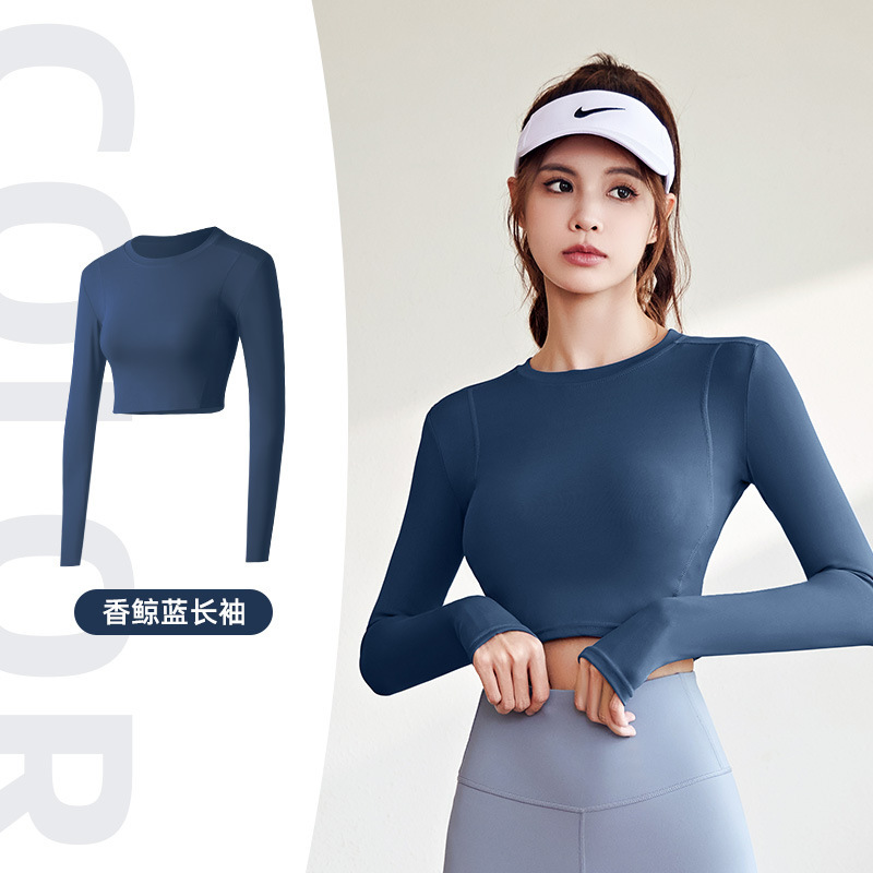 여성용 스포츠 요가 상의, 유럽 및 미국 런닝 반바지, 배꼽 노출 체육관 타이즈, 긴팔 티셔츠, 요가복스토어 가기