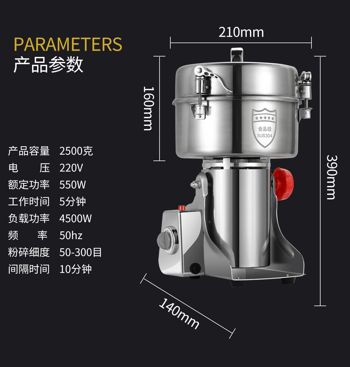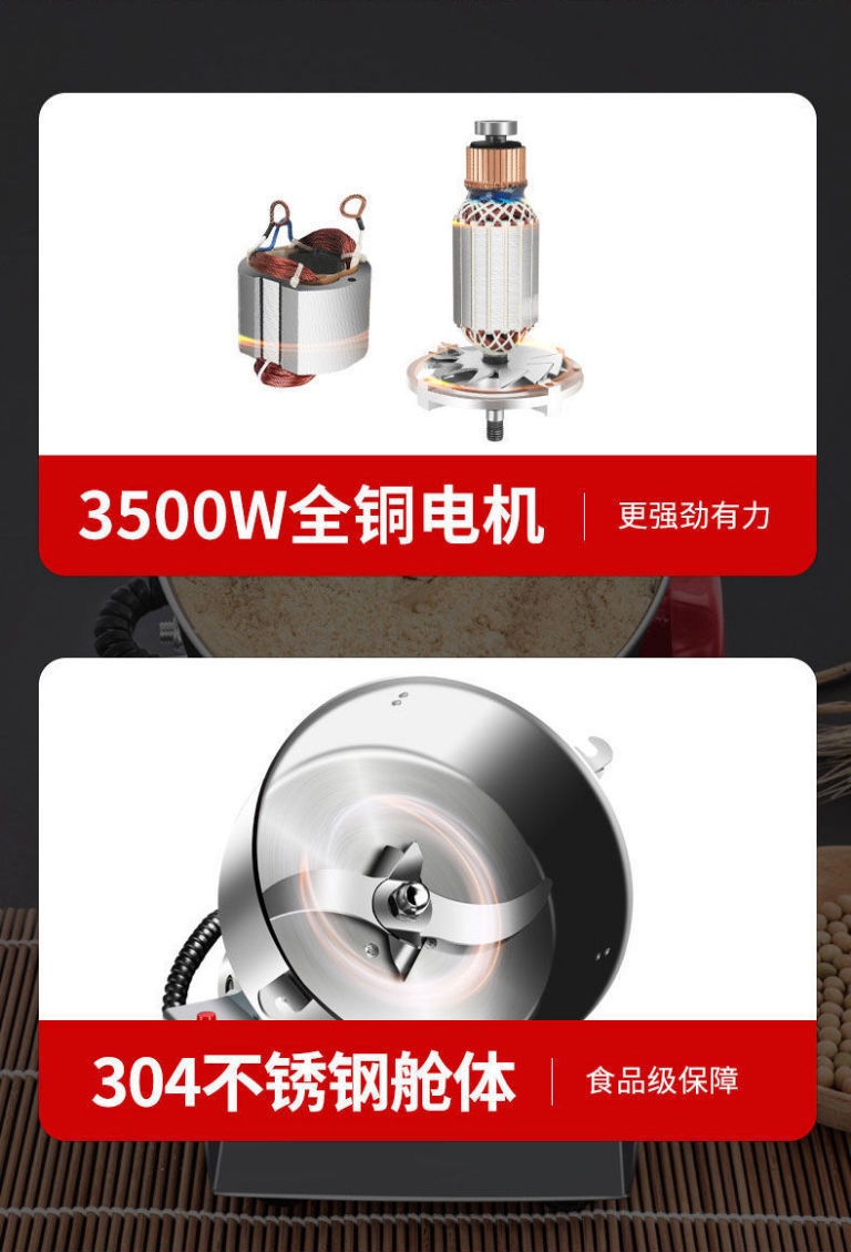 • 2500g 304 스테인레스 스틸 무해한 분말통 + 순수 구리 대형 모터 모델