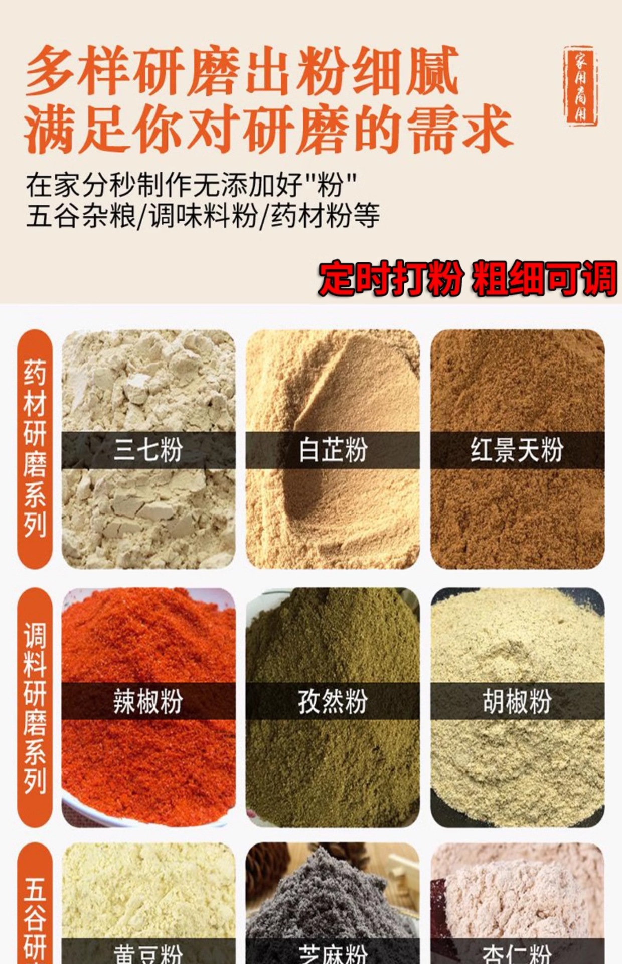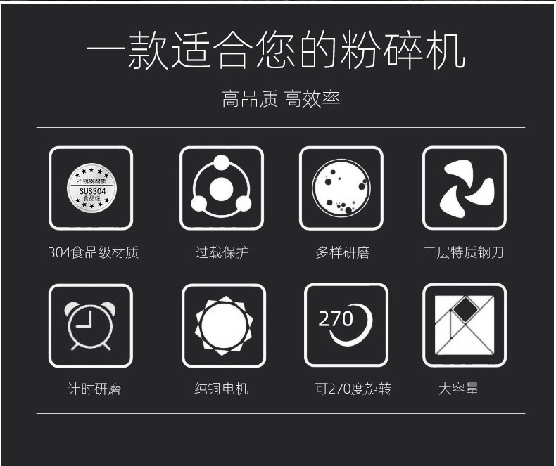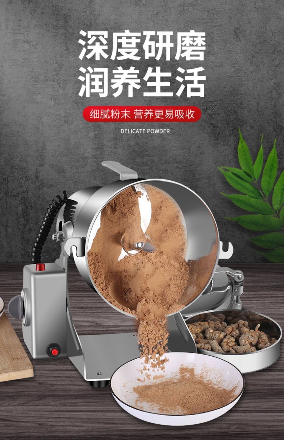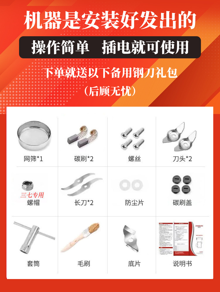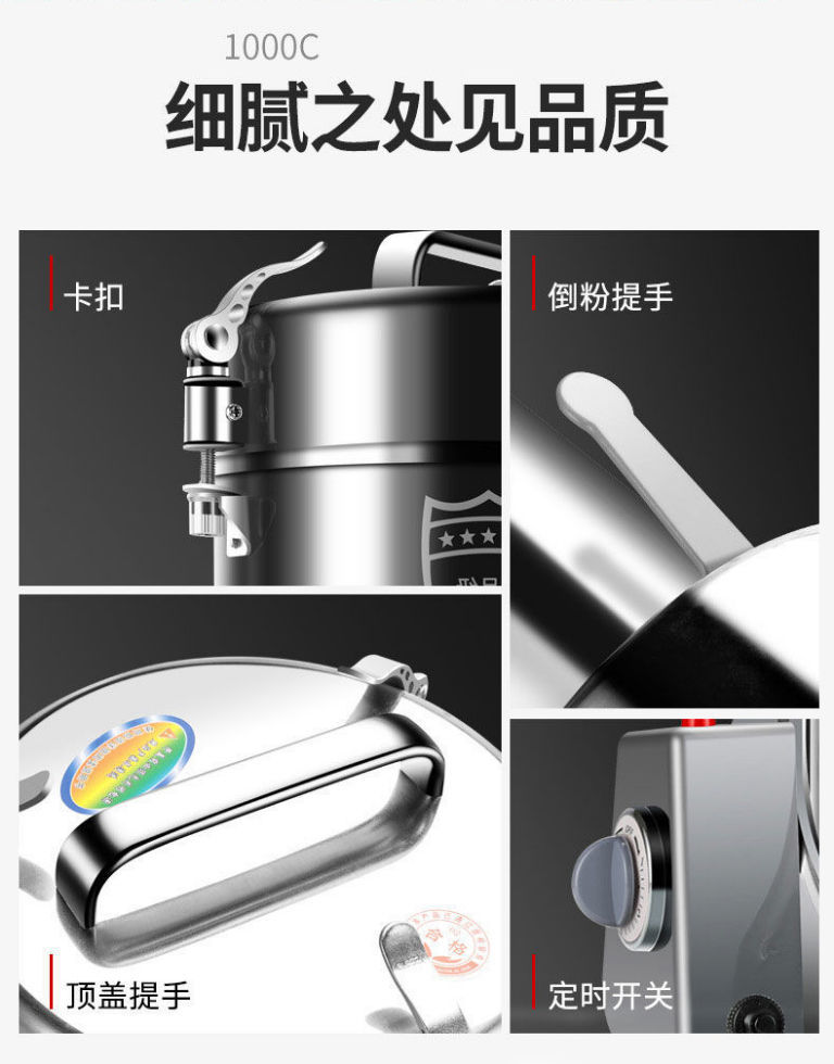 • 1000g 304 스테인레스 스틸 무해한 분말통 + 순수 구리 대형 모터 + 3층 경화 스테인레스 스틸 칼