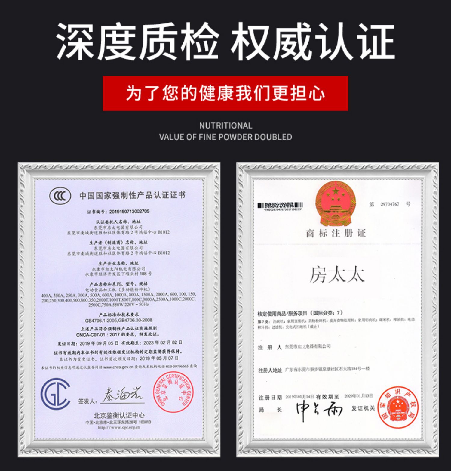 • 2500g 304 스테인레스 스틸 무해한 분말통 + 순수 구리 대형 모터 + 3층 경화 스테인레스 스틸 칼
