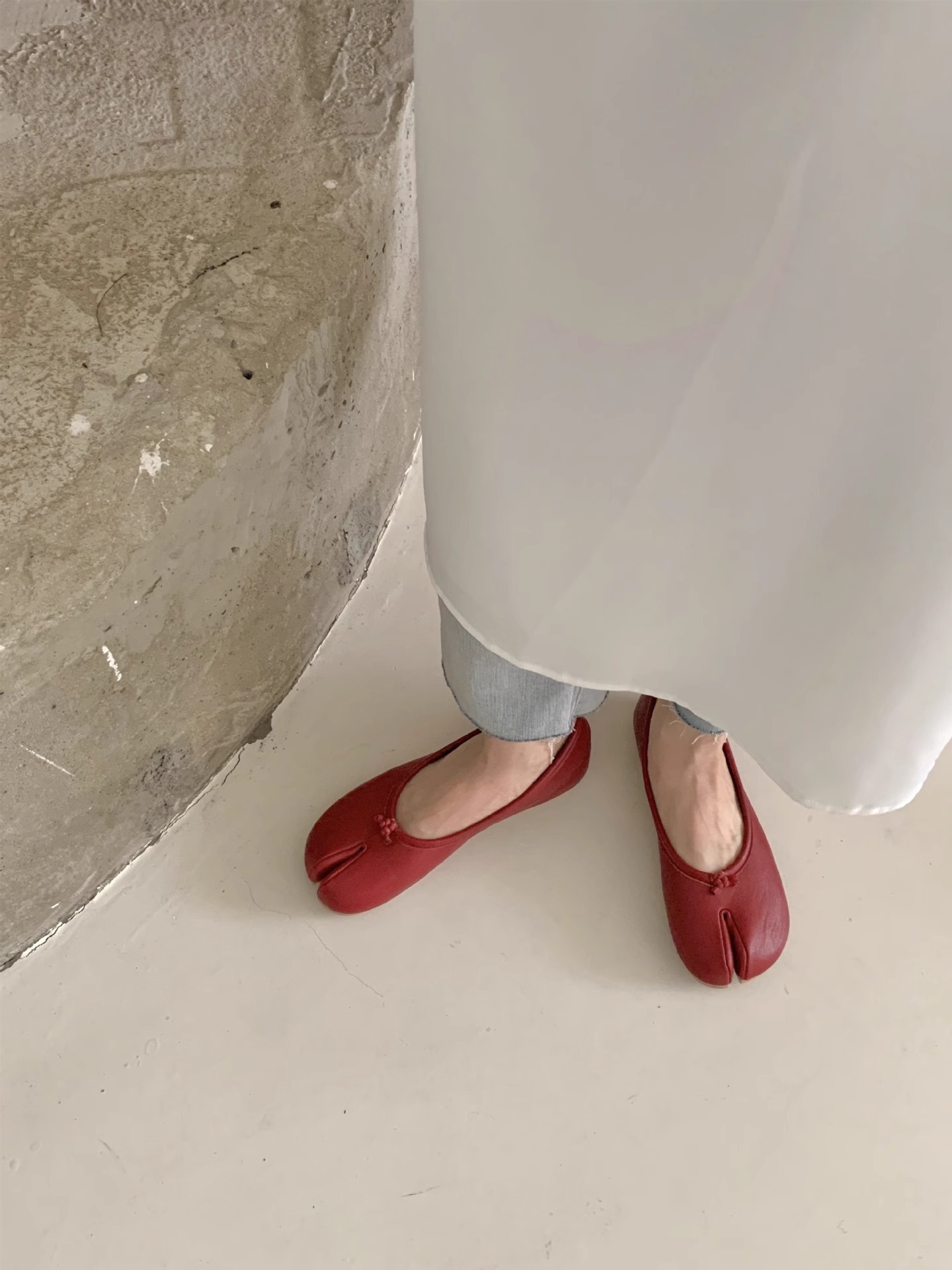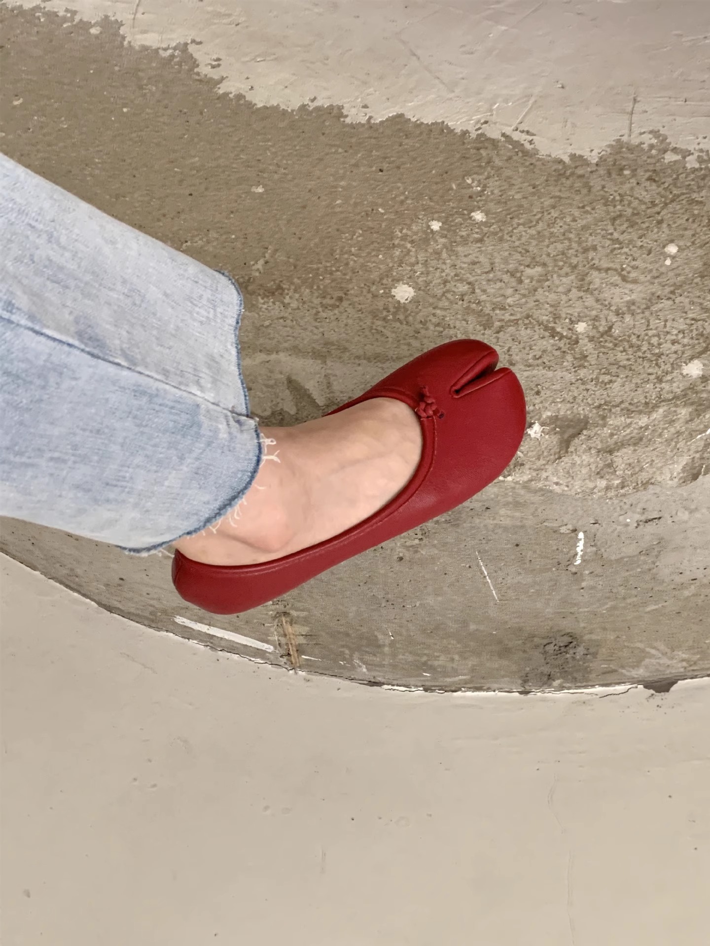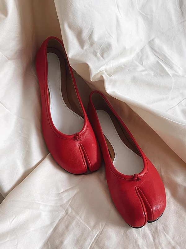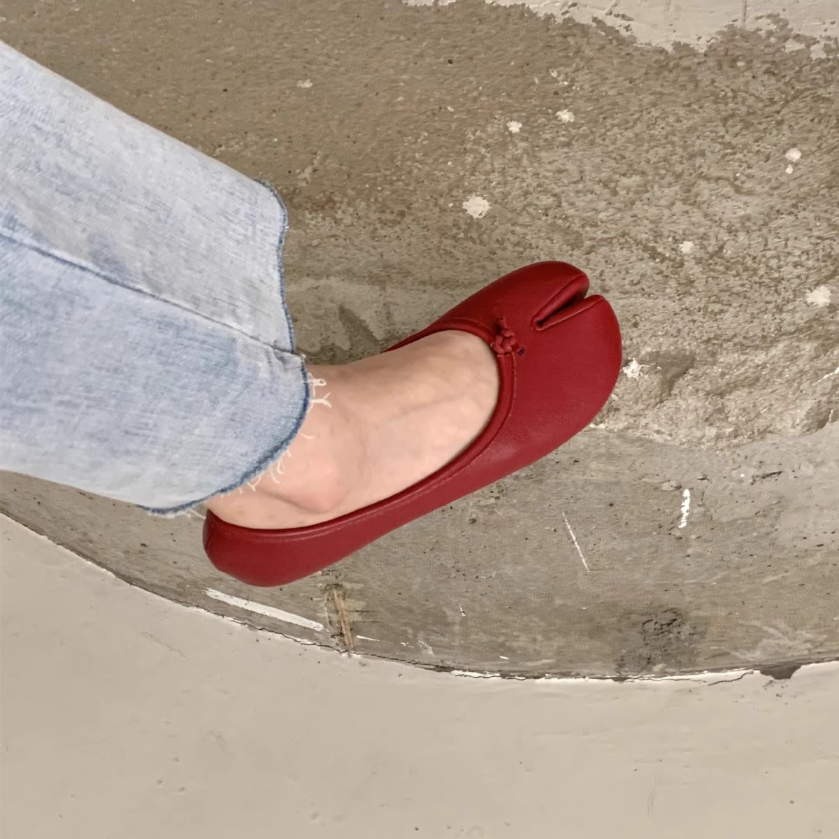 양가죽 버전 ~ 2025 새로운 정품 가죽 빨간 돼지의 토트 발가락 여성 신발 낮은 입 메리 제인 신발 여성용 플랫 국자 신발스토어 가기