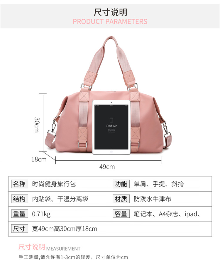 새로운 피트니스 가방 휴대용 어깨 요가 가방 여성용 습식 및 건식 분리 방수 대용량 수하물 가방 단거리 여행 가방