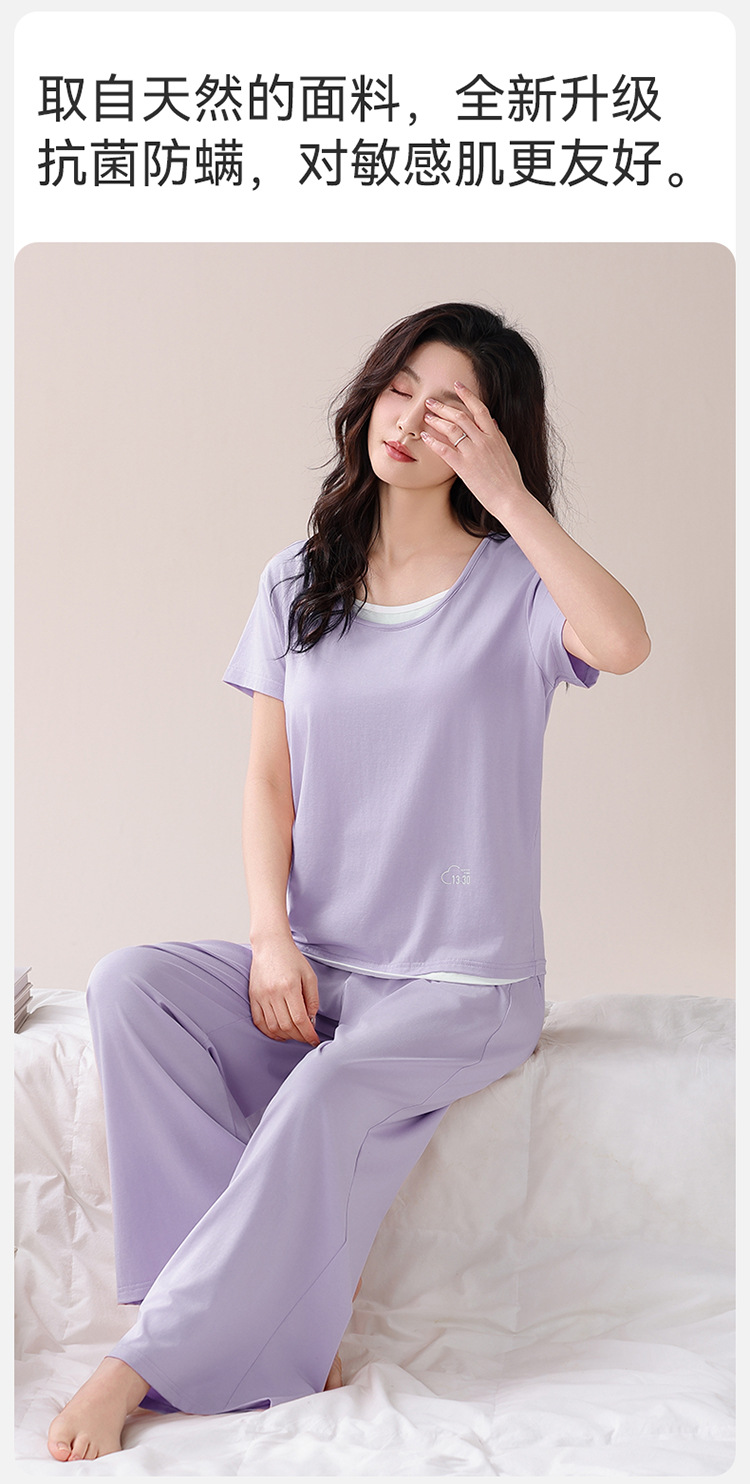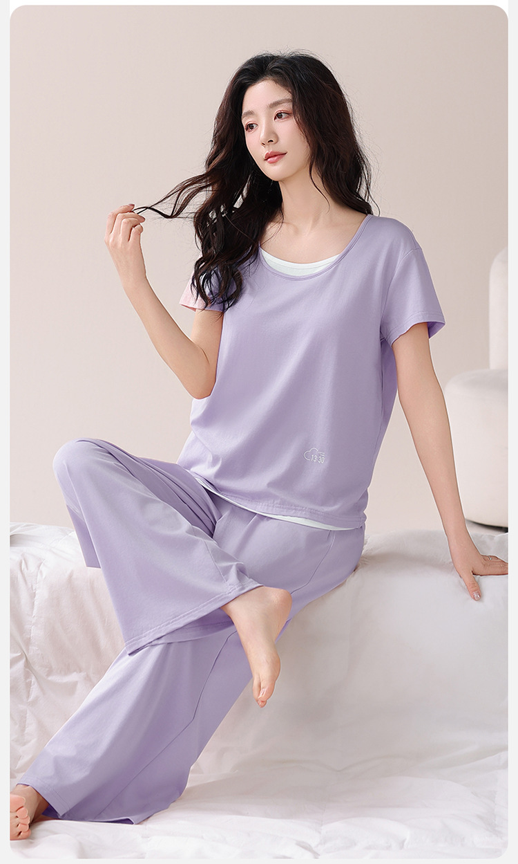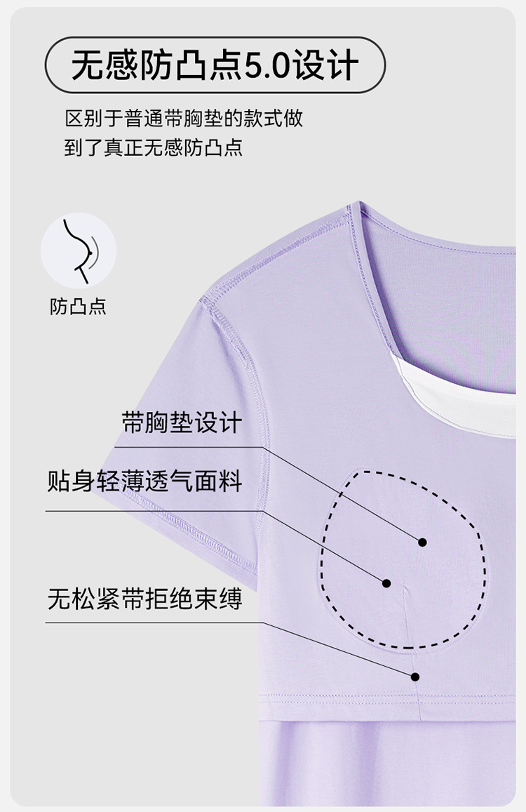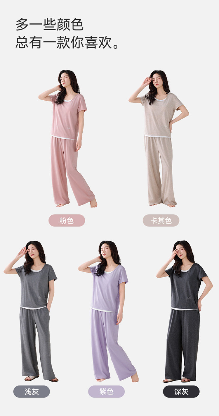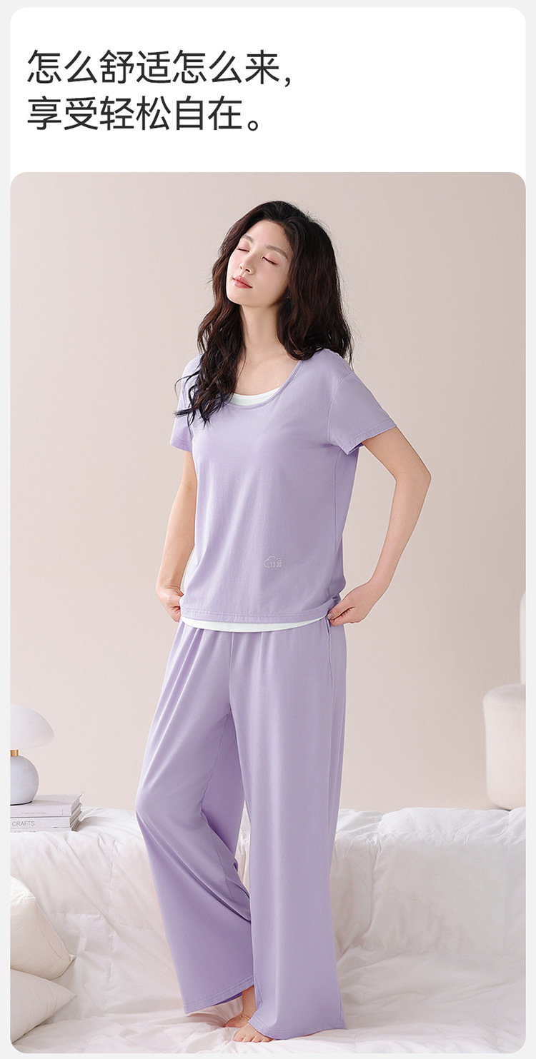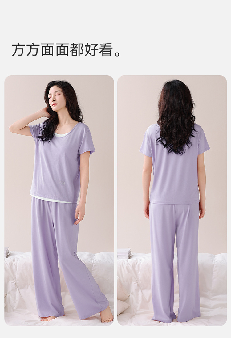 여성용 가슴 패드가 있는 여름 모달 얇은 홈웨어 캐주얼 페이크 투피스 슈트, 반팔 바지 외부 착용 가능스토어 가기
