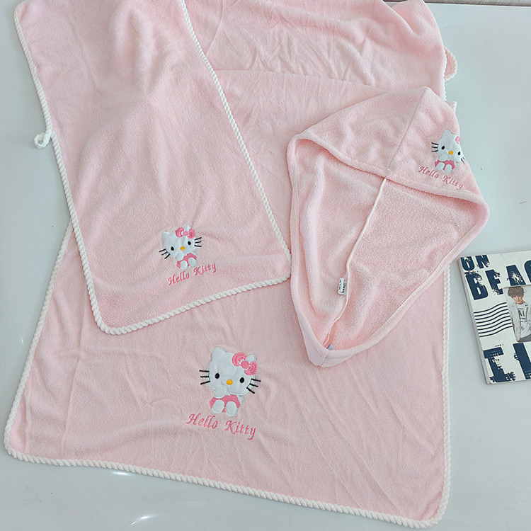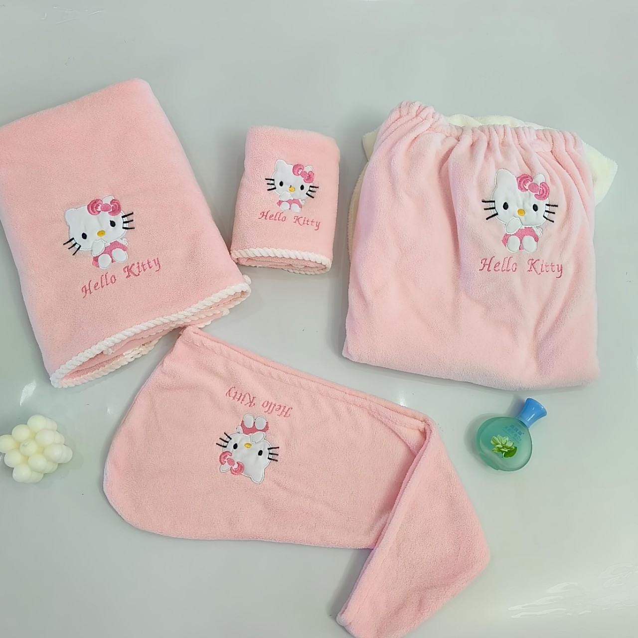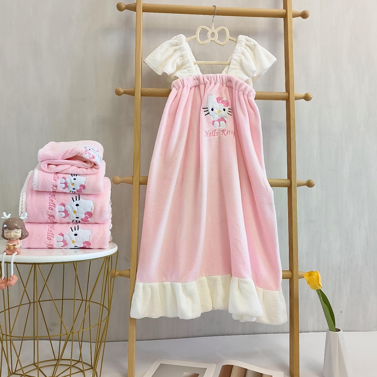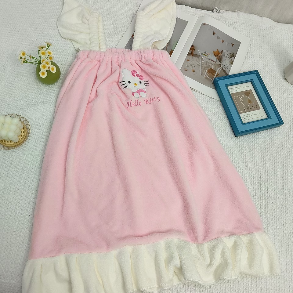 귀여운 산호 양털 KT 고양이 슬링 목욕 스커트 스트랩리스 흡수 타월 자수 더블 어깨 공주 스타일 목욕 목욕 가운 착용