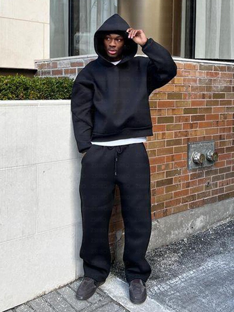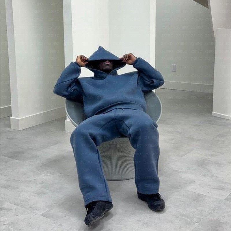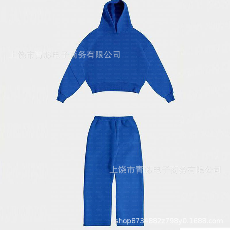 유럽과 미국의 트렌디 브랜드 크로스보더 캐주얼 심플 커플 패션 후드티 스웨트셔츠 솔리드 컬러 루즈 스웨트셔츠 바지 도매스토어 가기