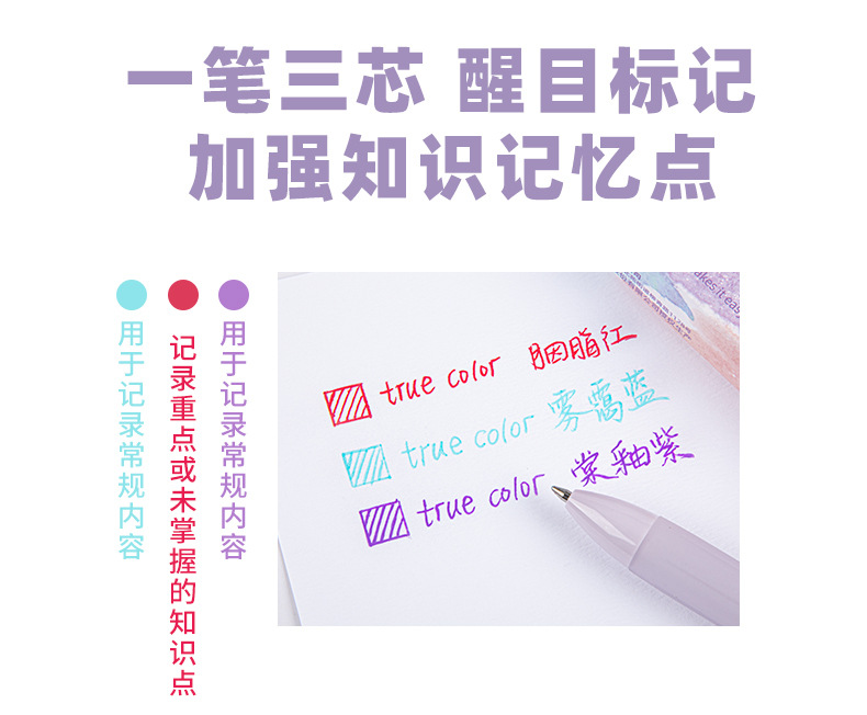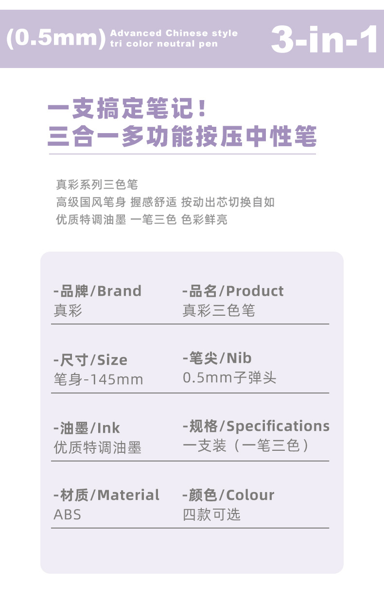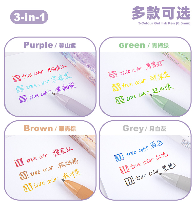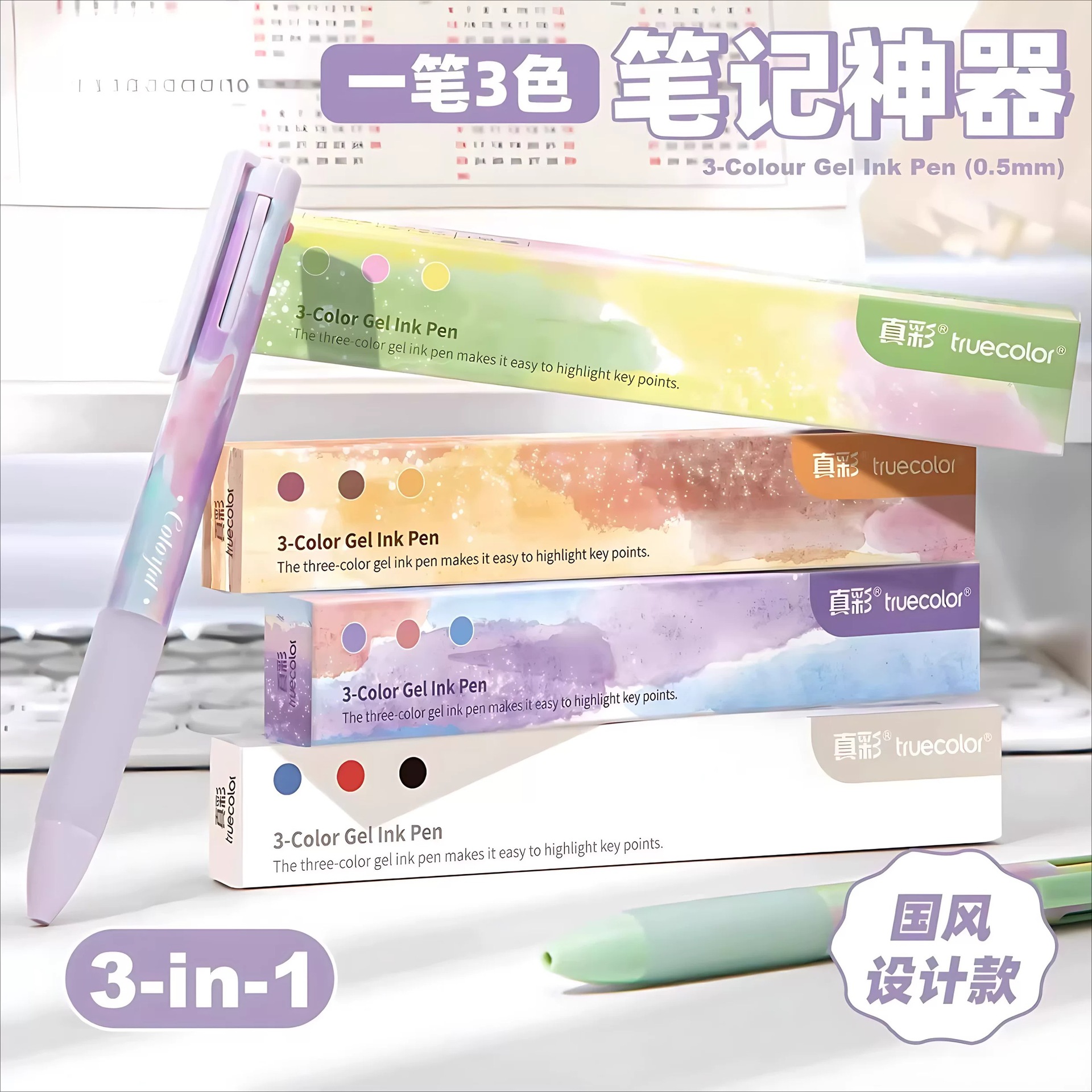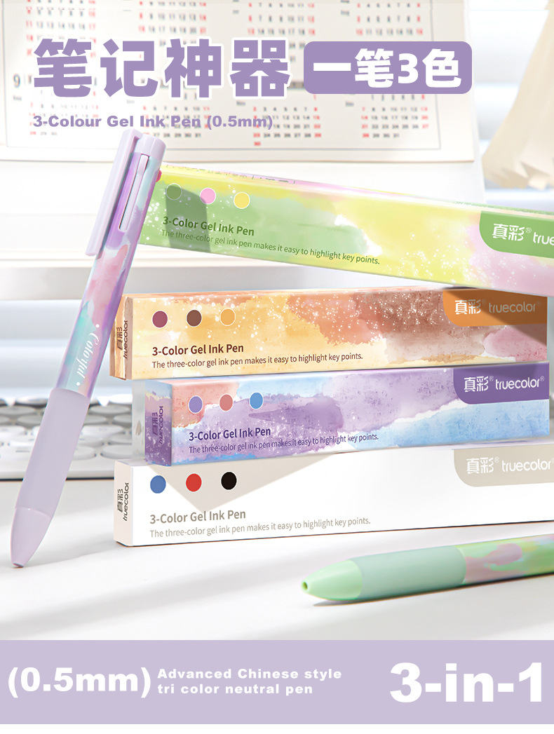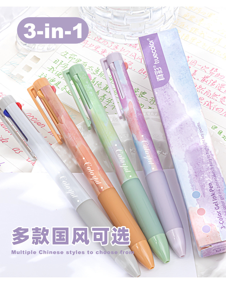 학생들이 메모를 할 수 있는 트루 컬러 3색 프레스 젤 펜, 속건성 및 부드러운 멀티 컬러 중국 스타일의 고가치 페인팅 및 컬러링 펜스토어 가기