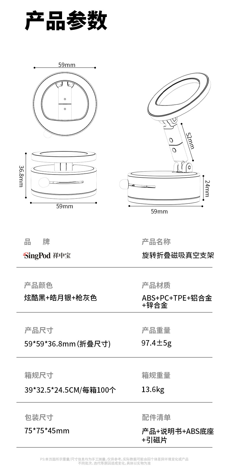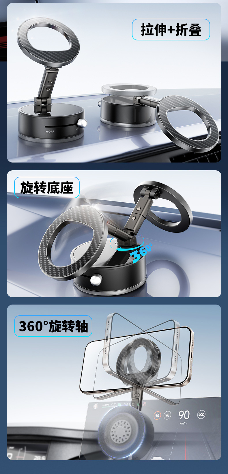 자동차 흡입 컵 자기 브래킷 접이식 망원경 사무실 게으른 진공 양면 다기능 자기 휴대 전화 브래킷