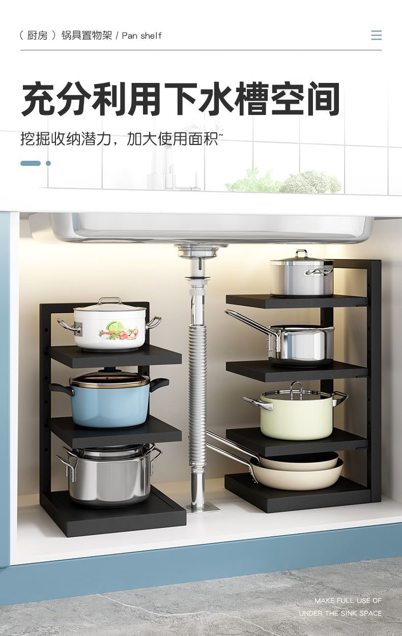 냄비 랙 특수 저장 냄비 저장 주방 탄소 강철 랙 저장 랙 낮은 싱크 다층 가정용 캐비닛