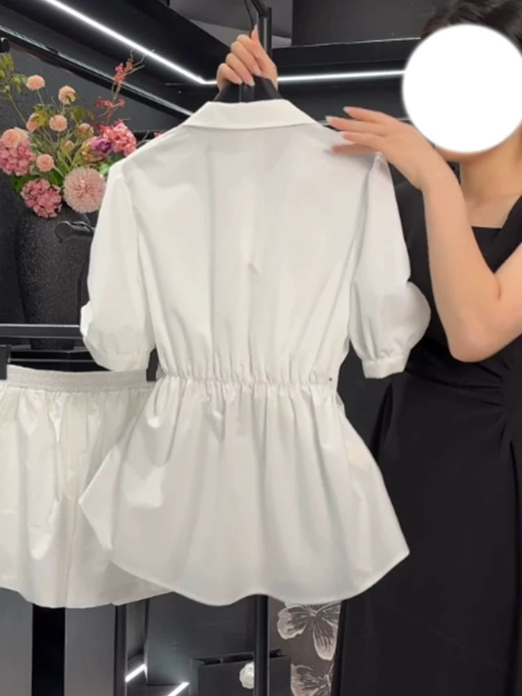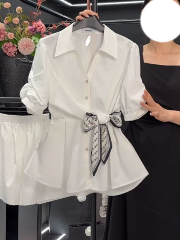 하이 엔드 화이트 여성 쉬폰 셔츠 여성 여름 2025 새로운 반팔 탑 셔츠 허리 셔츠스토어 가기