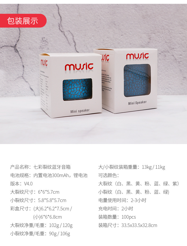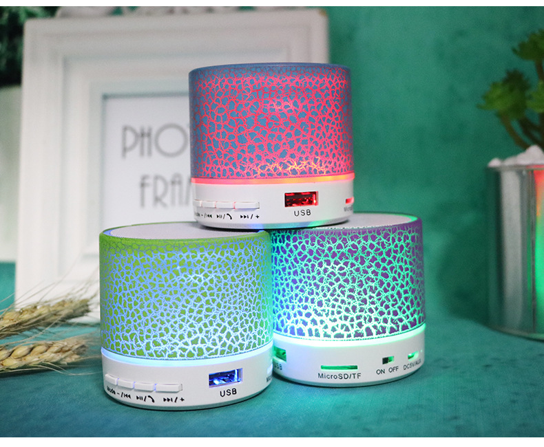 새로운 미니 균열 블루투스 스테레오 휴대용 카드 서브 우퍼 스테레오 led 빛나는 무선 스피커 선물스토어 가기