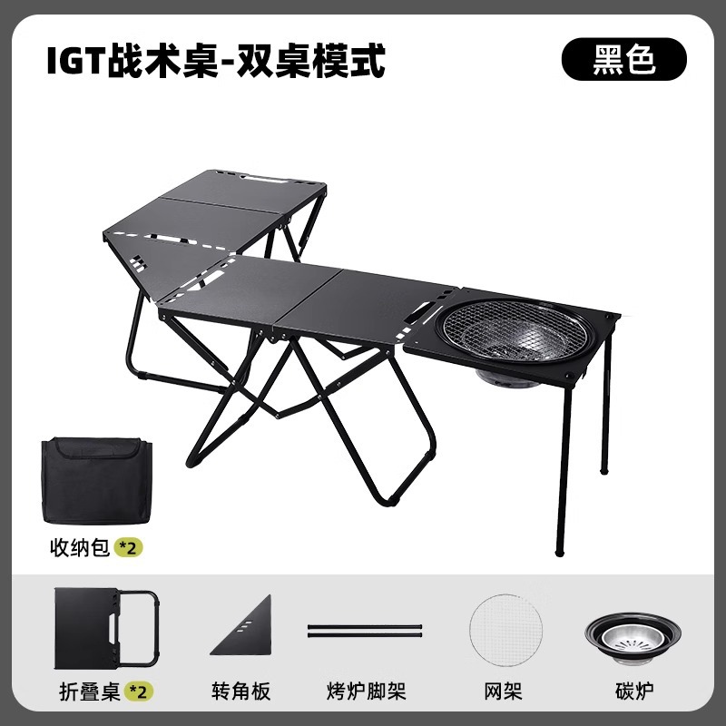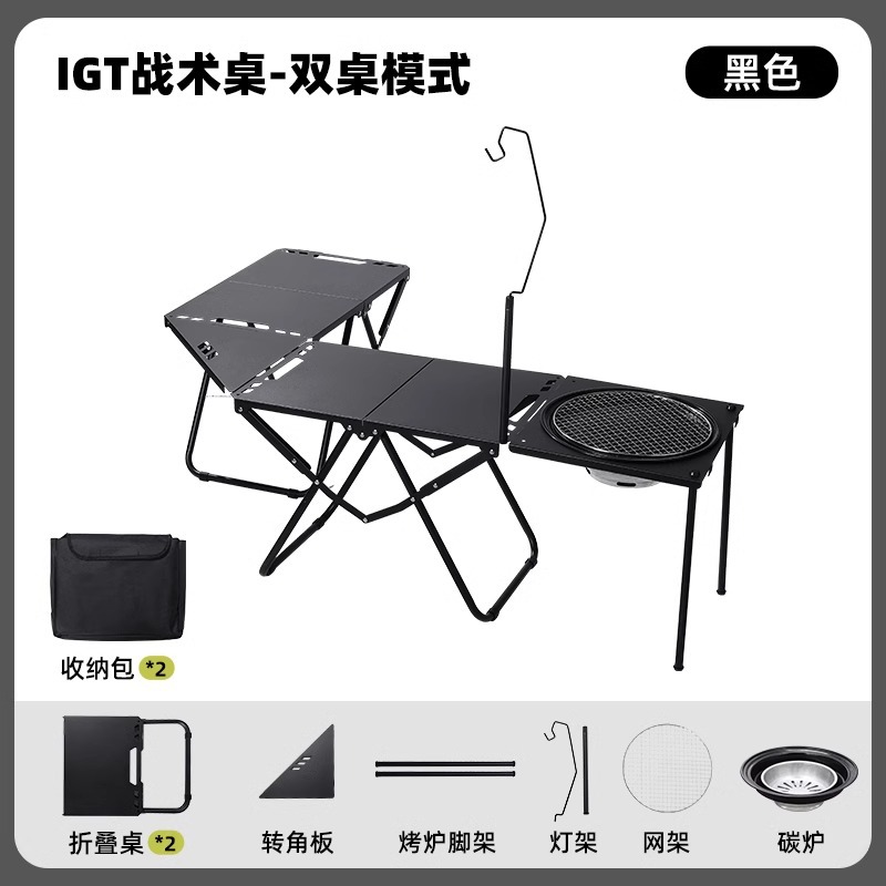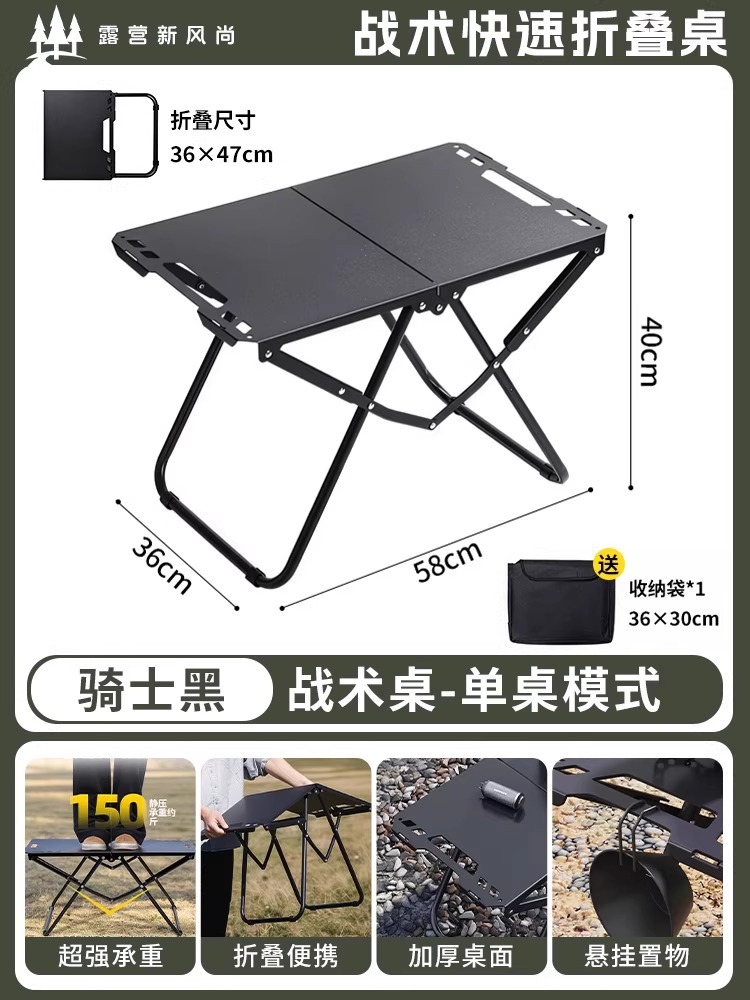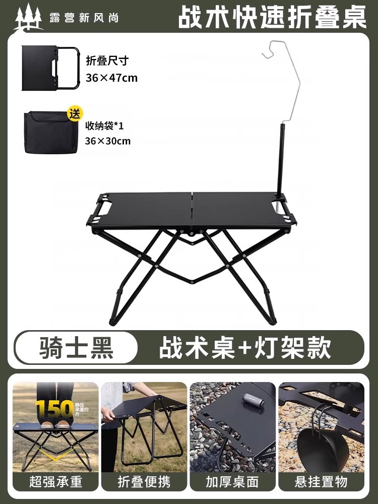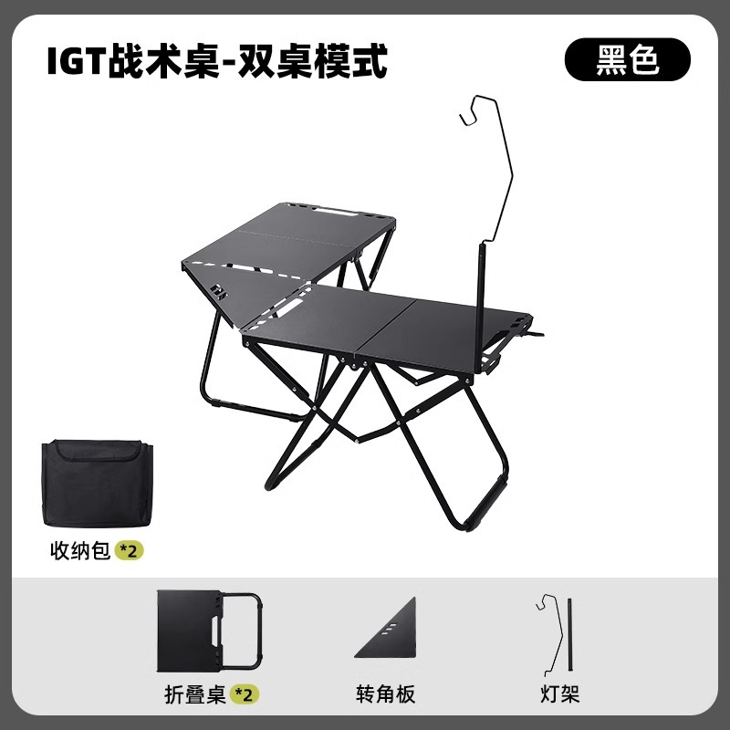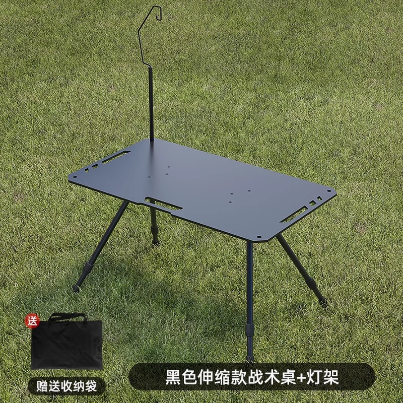• [두꺼운 탄소강 전술 테이블 조합] 블랙*2+삼각형 연결 플레이트+라이트 스탠드(수납 가방 포함)