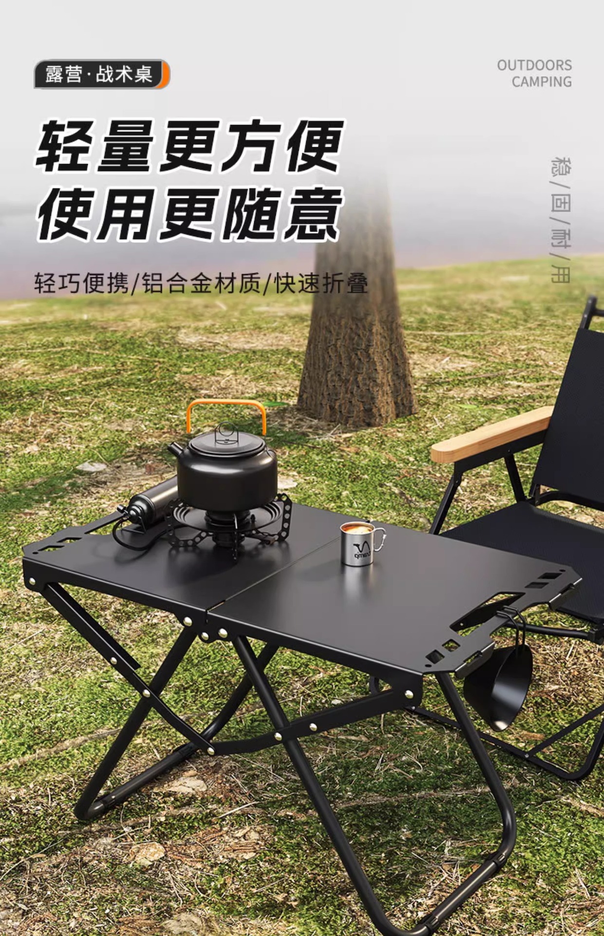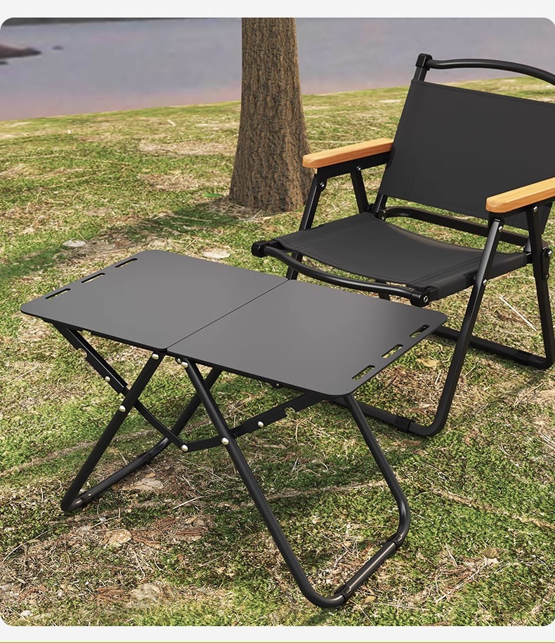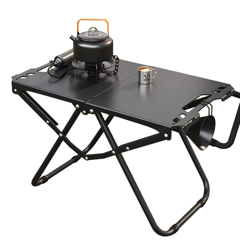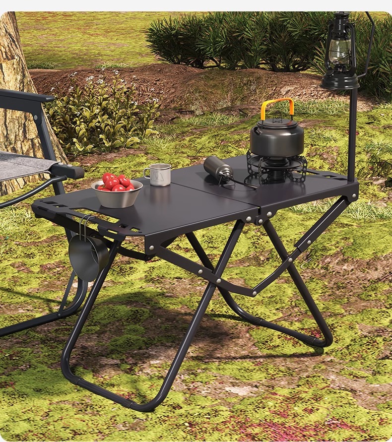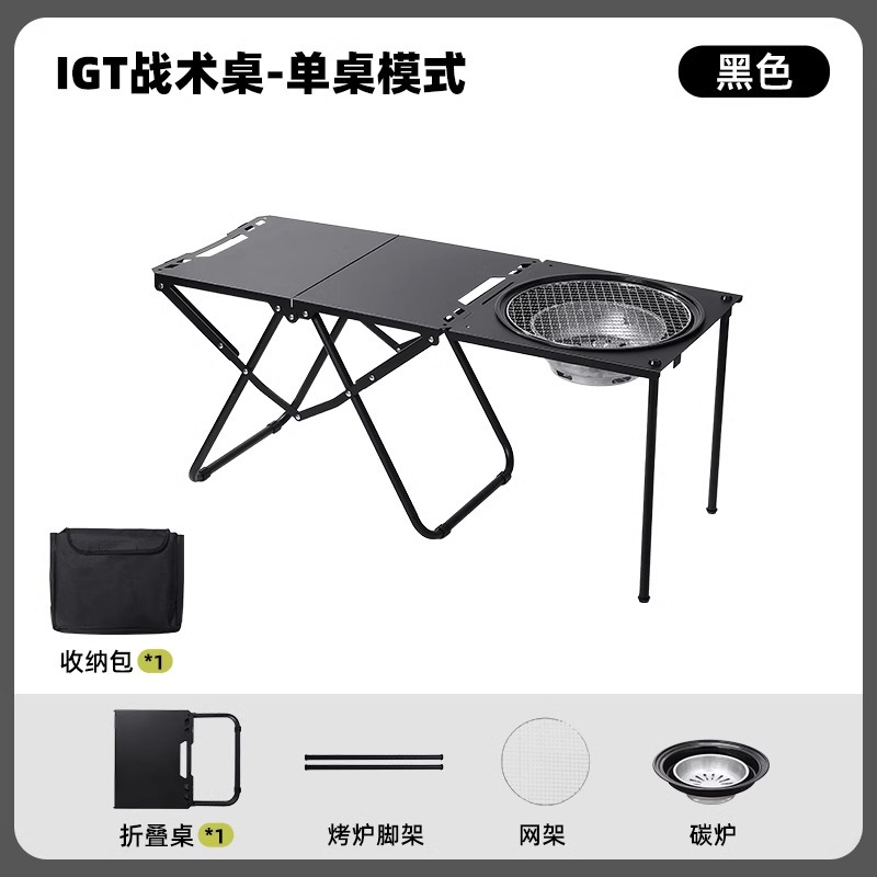• [두꺼운 탄소강 전술 테이블 조합] 블랙*2+삼각형 연결 플레이트+라이트 스탠드(수납 가방 포함)