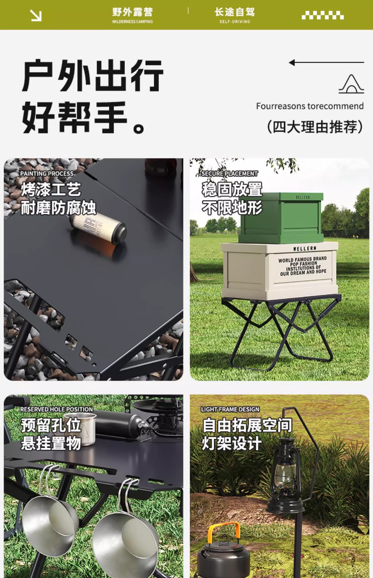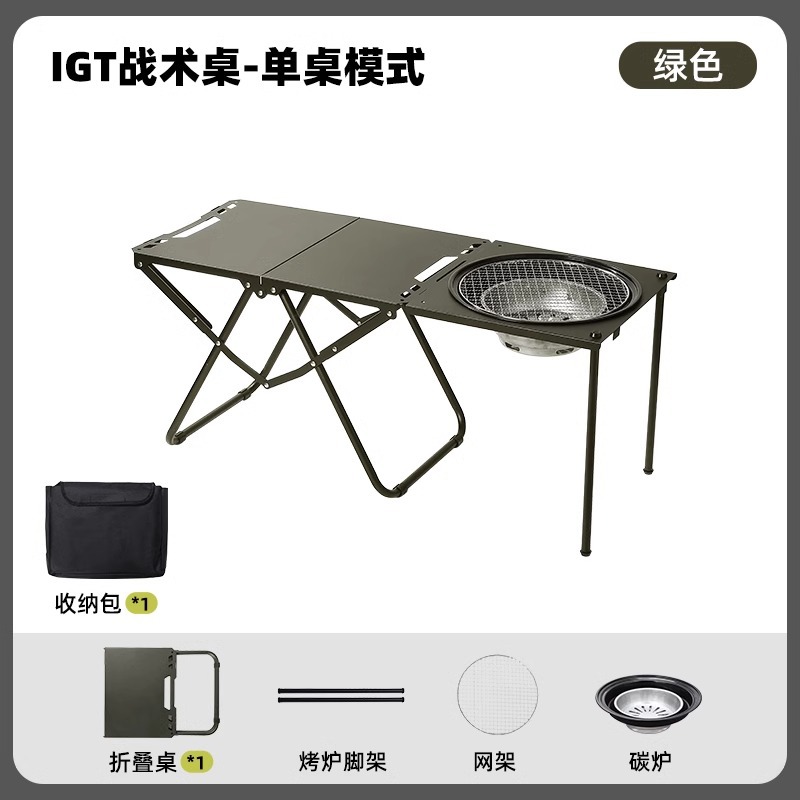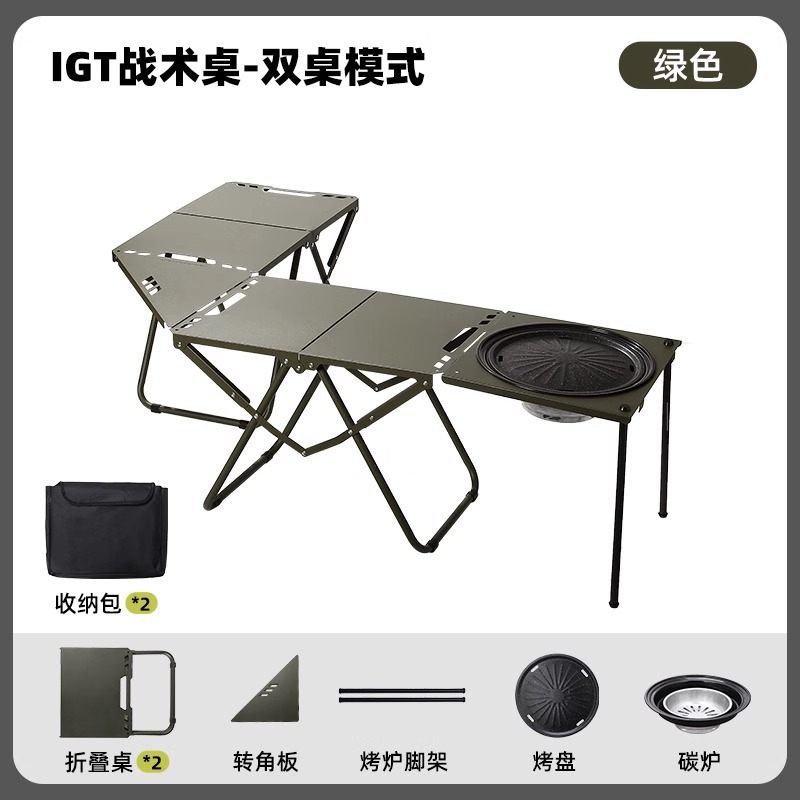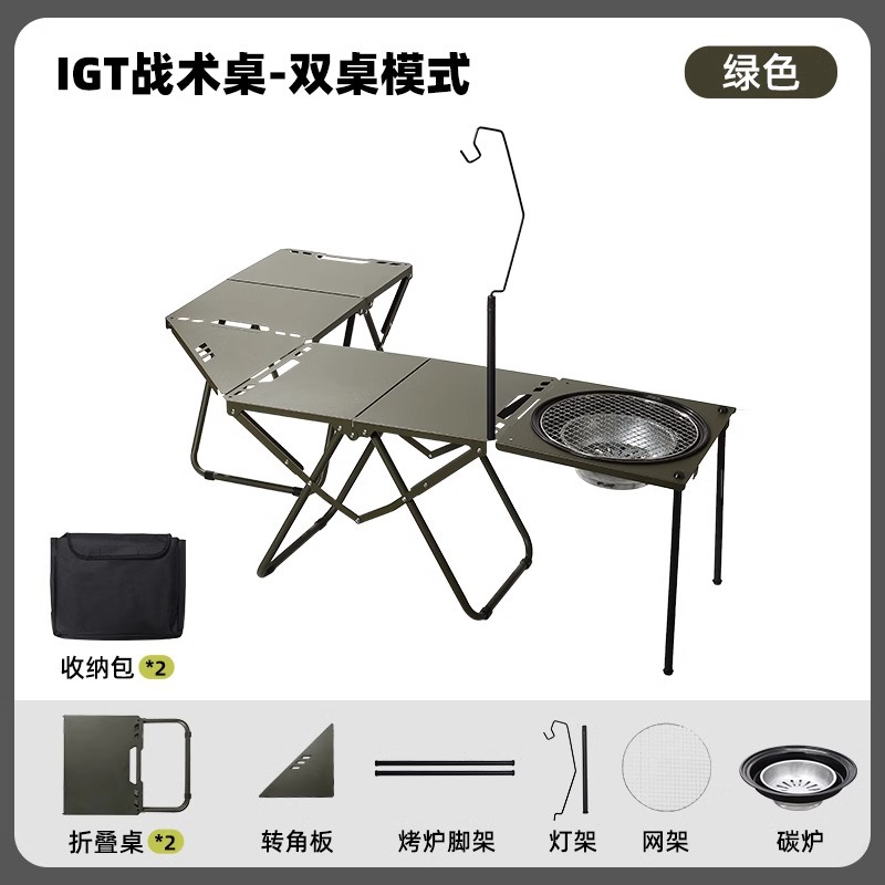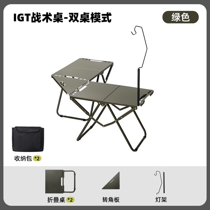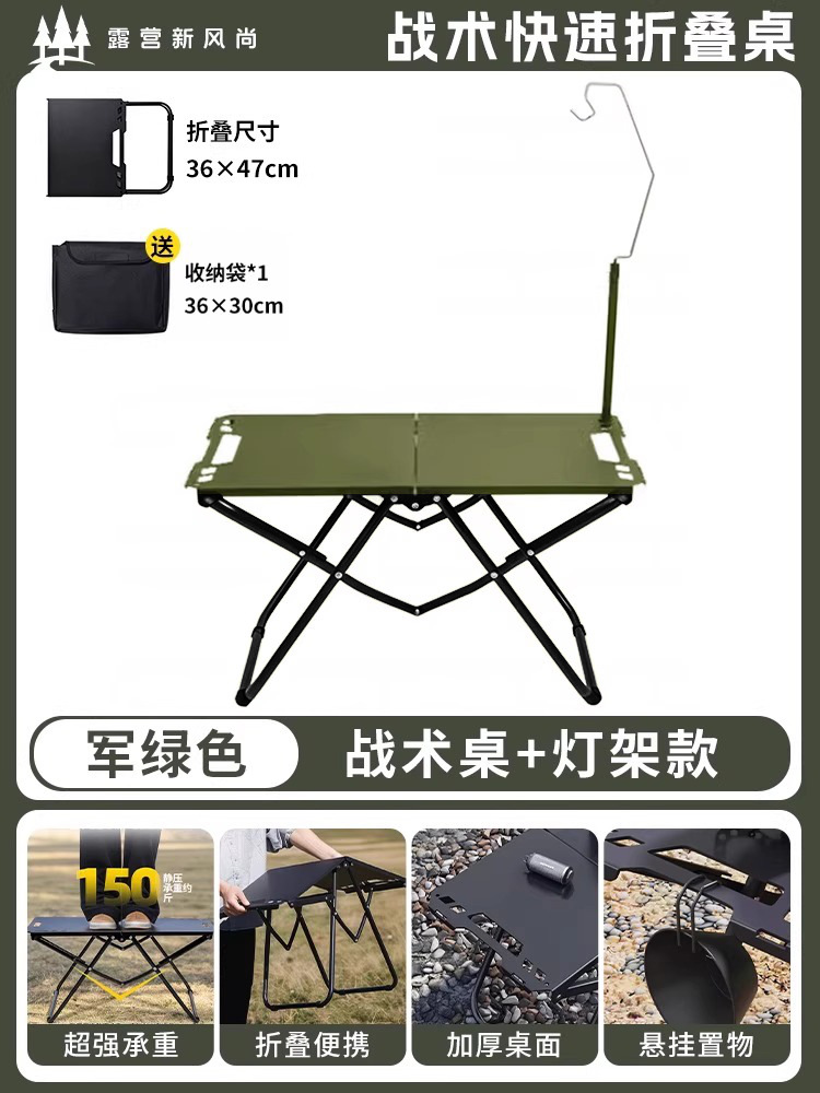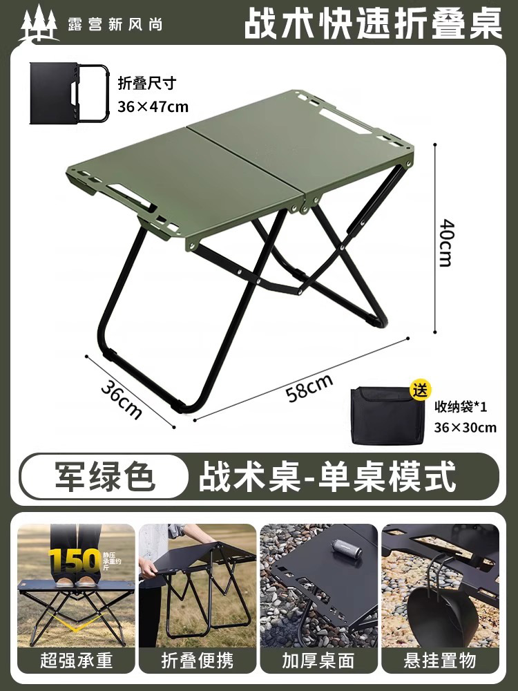 • [두꺼운 탄소강 전술 테이블 조합] 밀리터리 그린*2+삼각형 연결 플레이트+라이트 스탠드(수납 가방 포함)