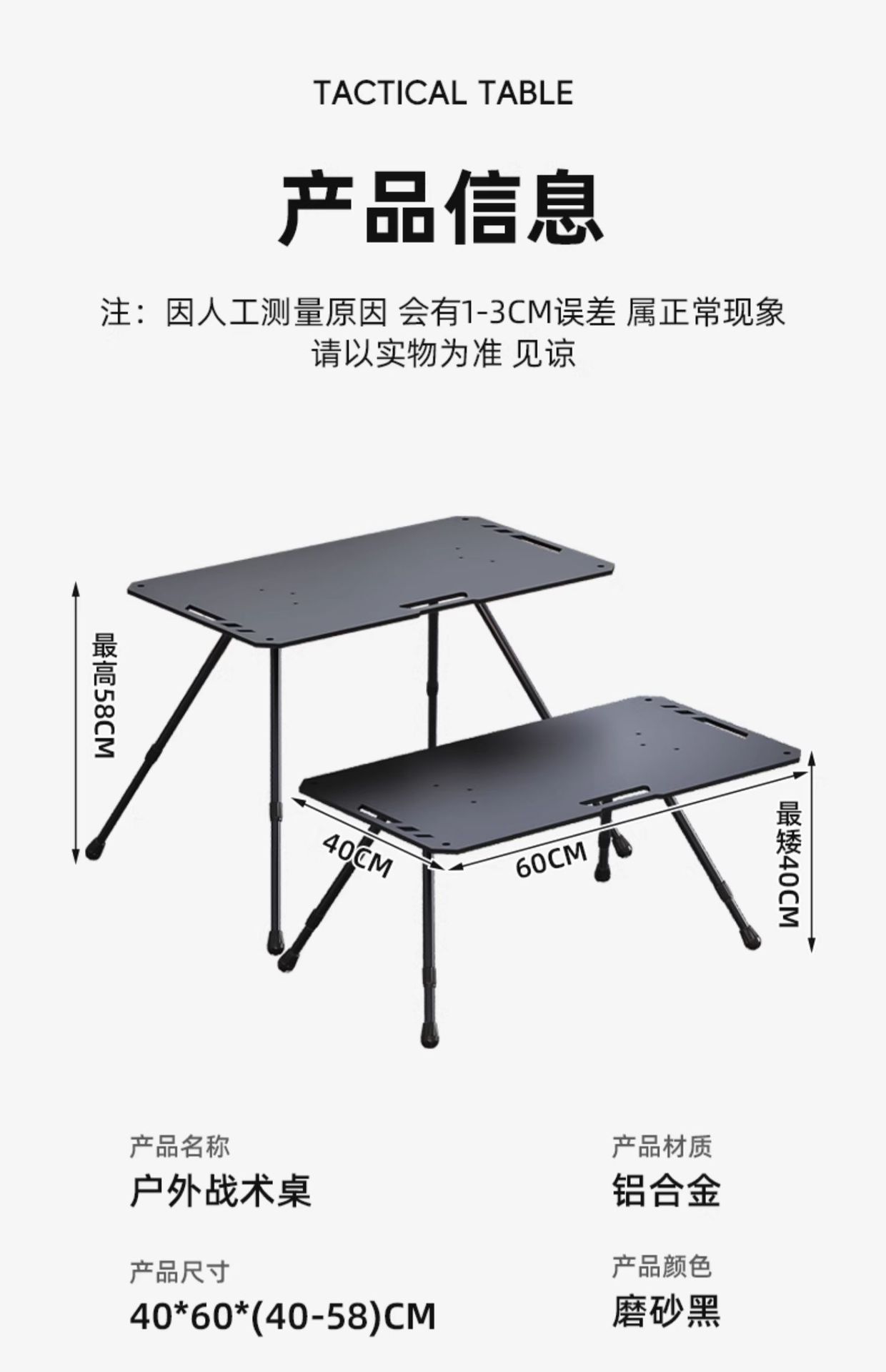 • [빠른 오픈 전술 테이블] 클래식 블랙 + 라이트 스탠드 - 두꺼운 탄소강 / 초당 접이식(수납 가방 포함)