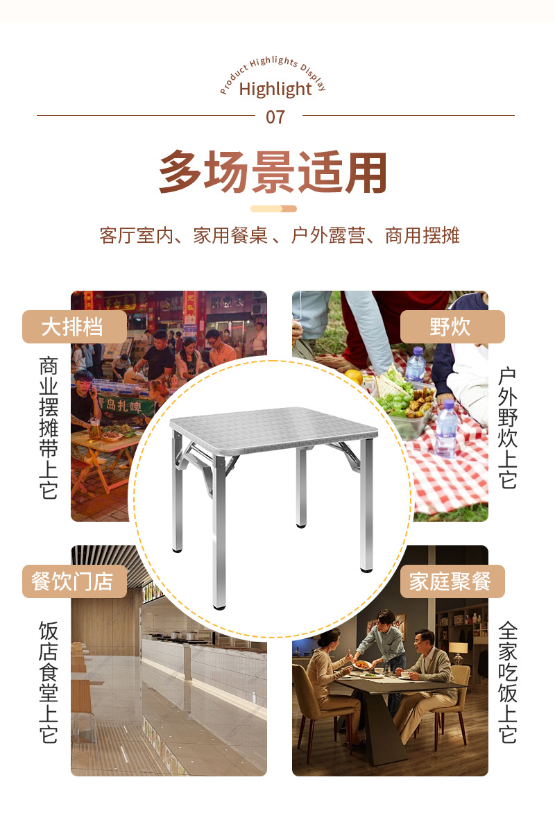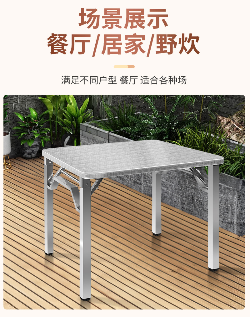 두꺼운 스테인레스 스틸 접이식 테이블 모닥불 가정용 사각형 식탁 야외 바베큐 안뜰 사각형 테이블스토어 가기
