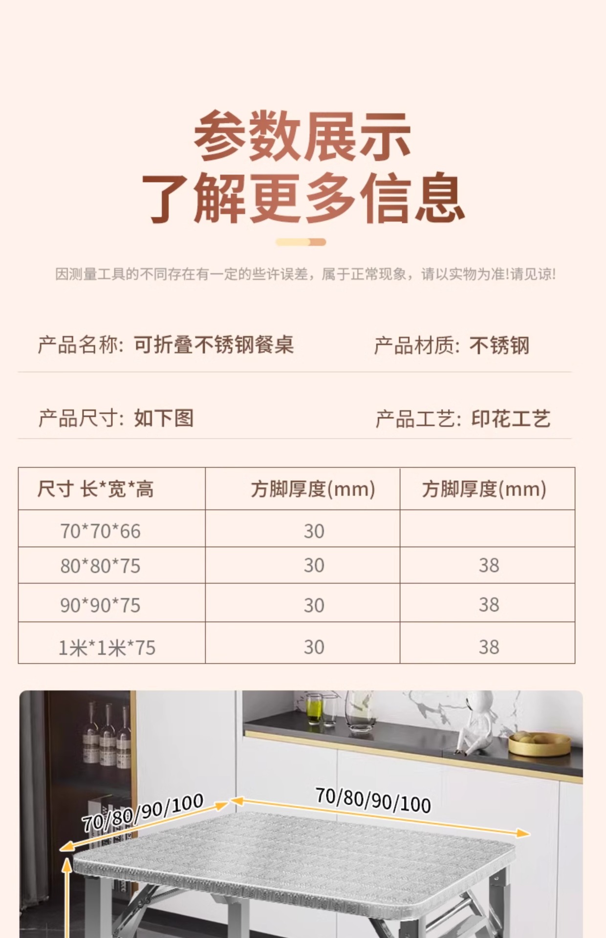 • 다리를 막지 않고 업그레이드 ▲ 두꺼운 모델 [길이 100*가로 100*높이 75] 테이블 다리 두께 38mm