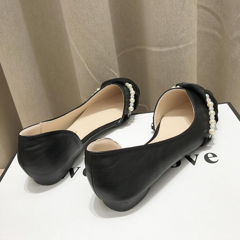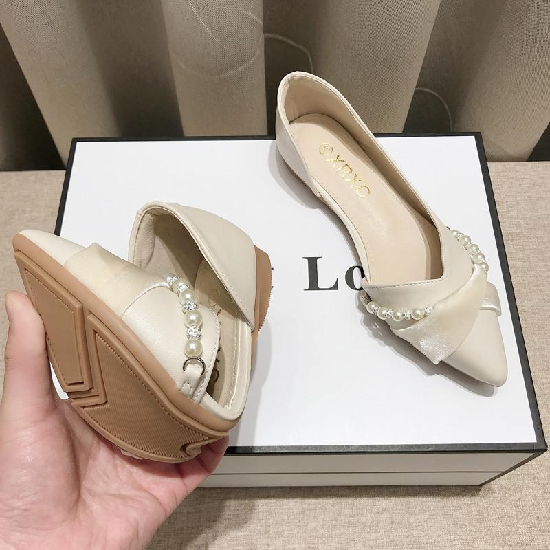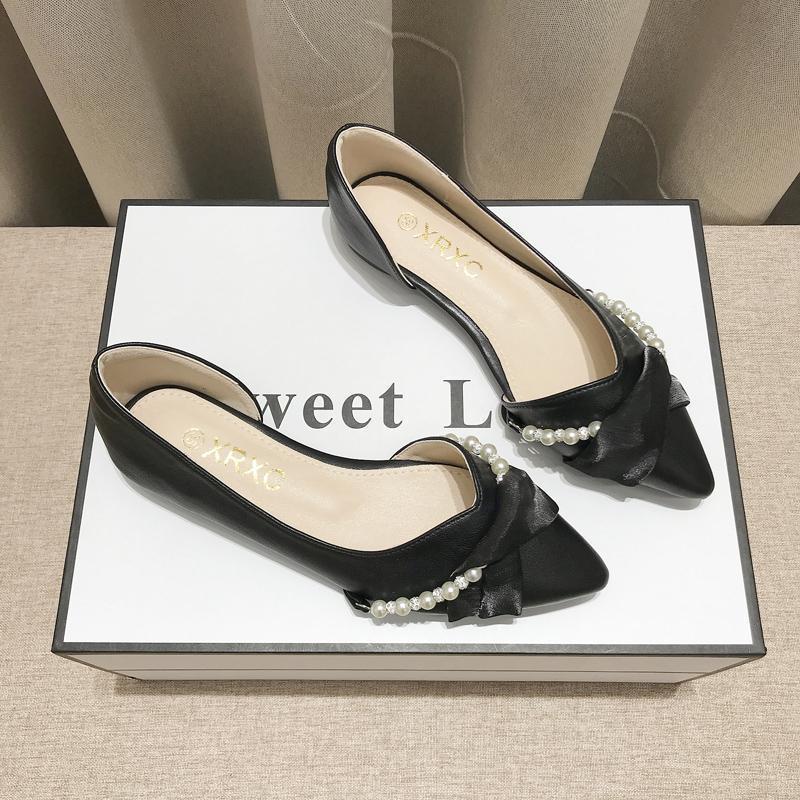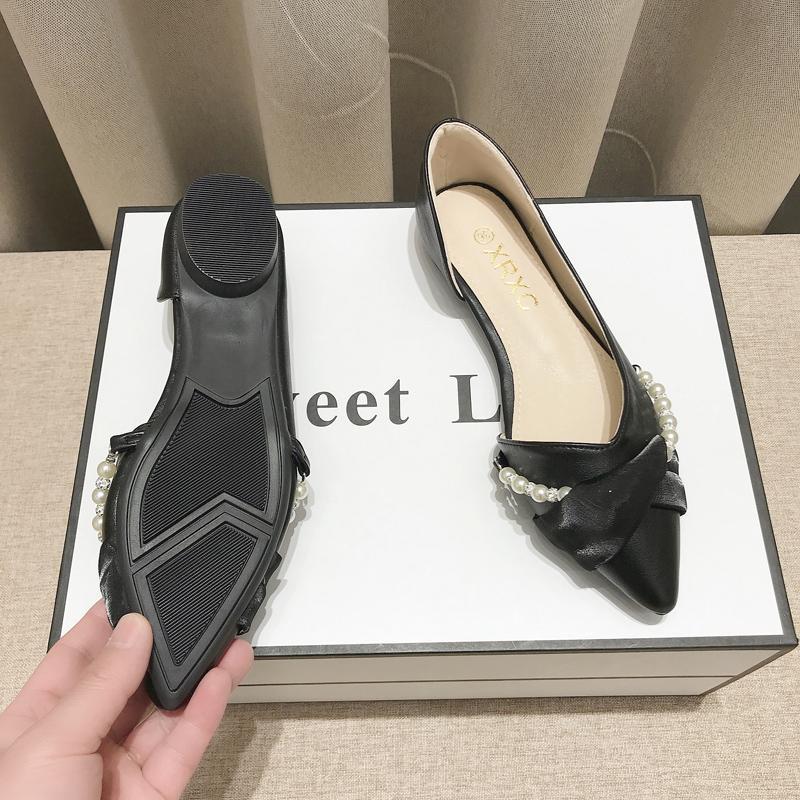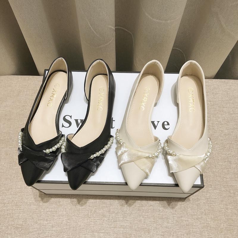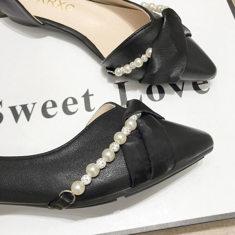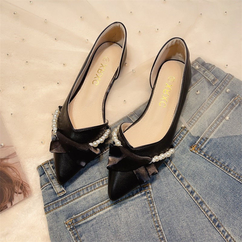 샤넬 스타일의 우아한 포인티드 토 여성용 슈즈, 2025년 신상 진주 요정 스타일 여름 샌들, 앞코가 막힌 슬립온 슈즈스토어 가기