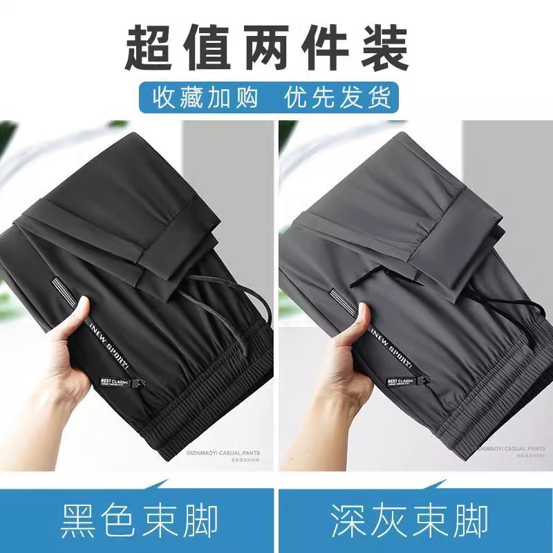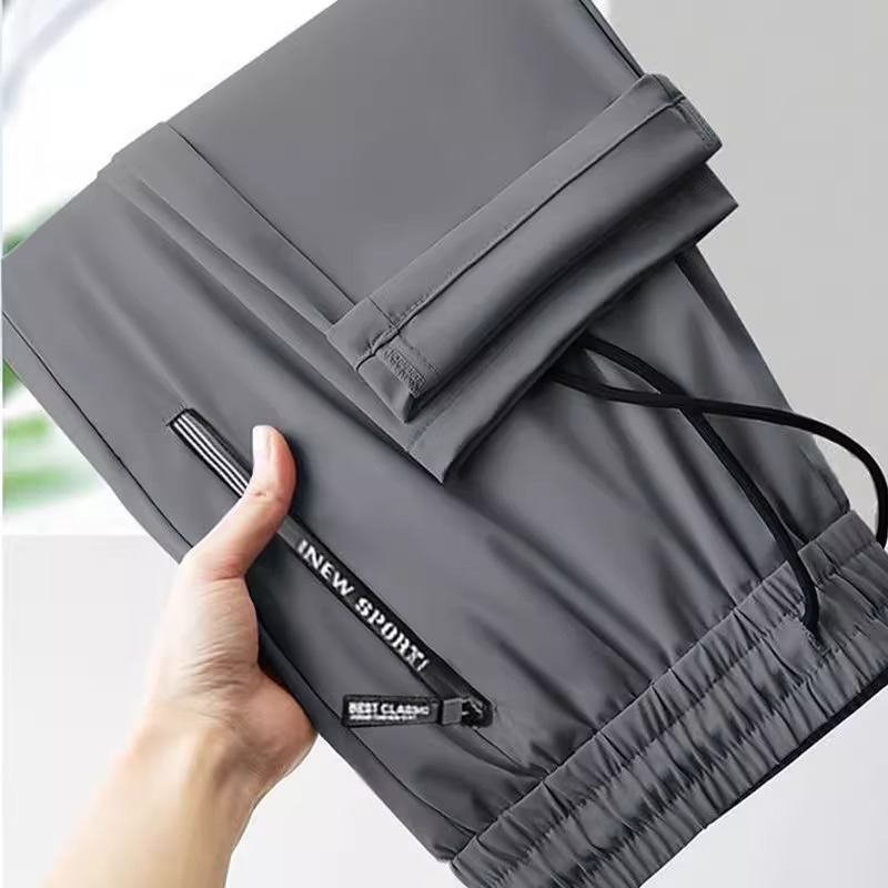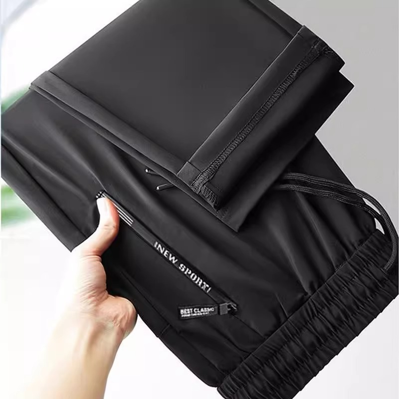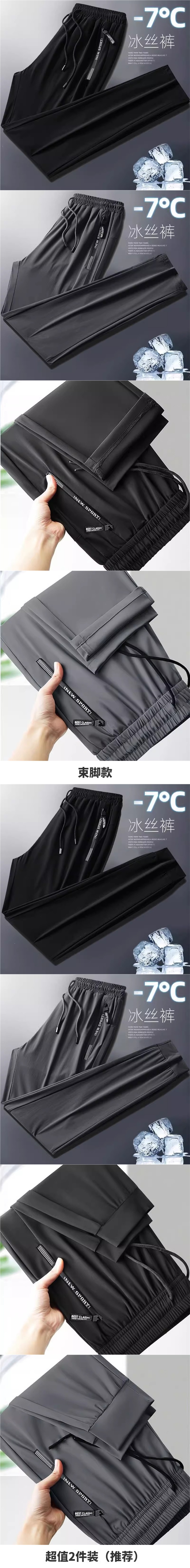 아이스 실크 여름 루즈한 신축성 있는 속건성 남성용 스포츠 바지 얇은 스웨트 팬츠 캐주얼 긴 바지