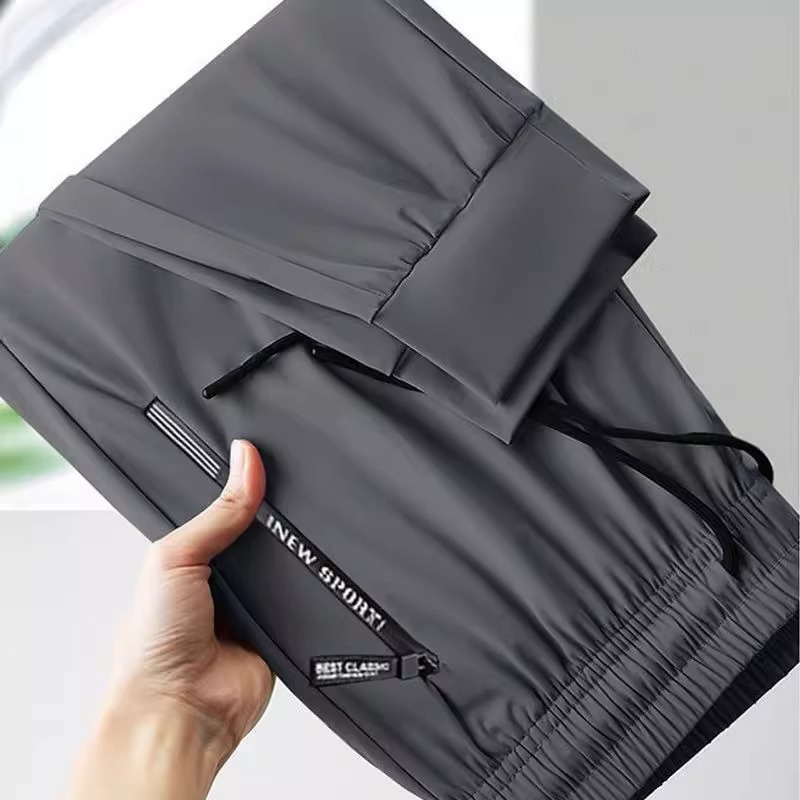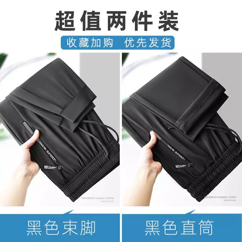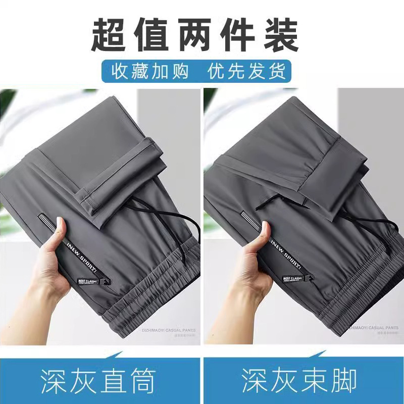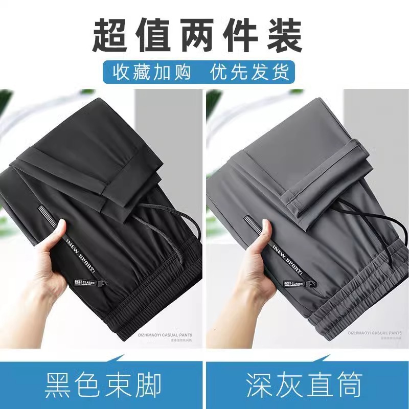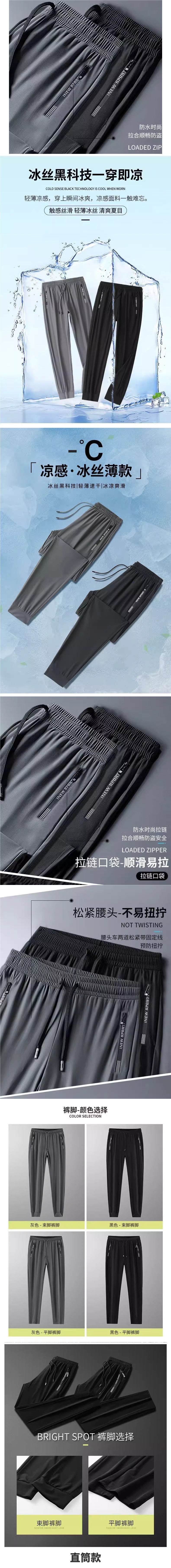 아이스 실크 여름 루즈한 신축성 있는 속건성 남성용 스포츠 바지 얇은 스웨트 팬츠 캐주얼 긴 바지