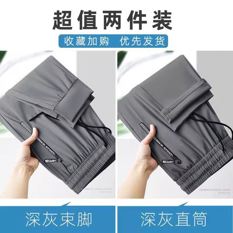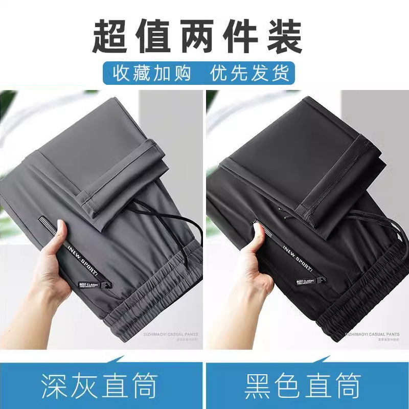 아이스 실크 여름 루즈한 신축성 있는 속건성 남성용 스포츠 바지 얇은 스웨트 팬츠 캐주얼 긴 바지스토어 가기