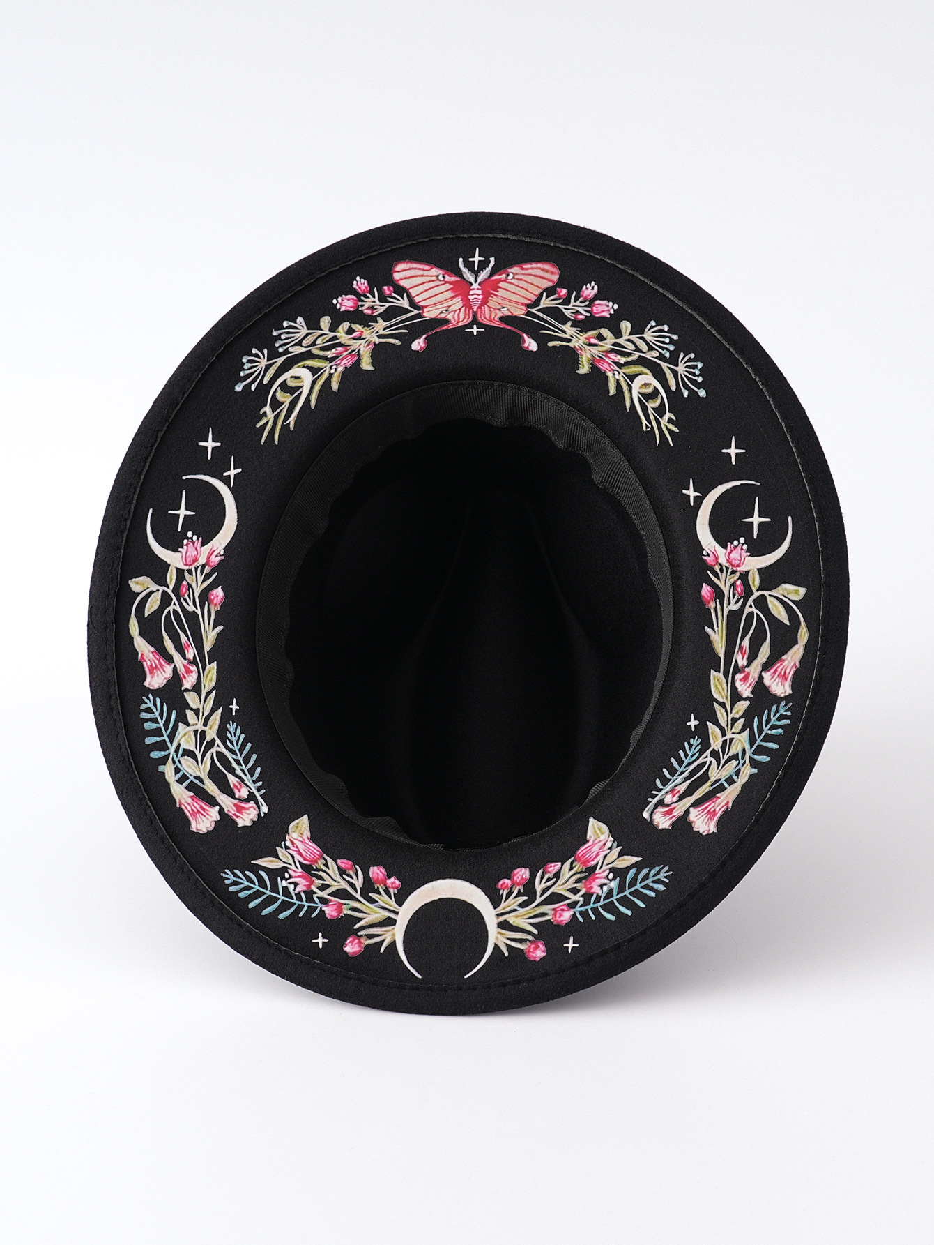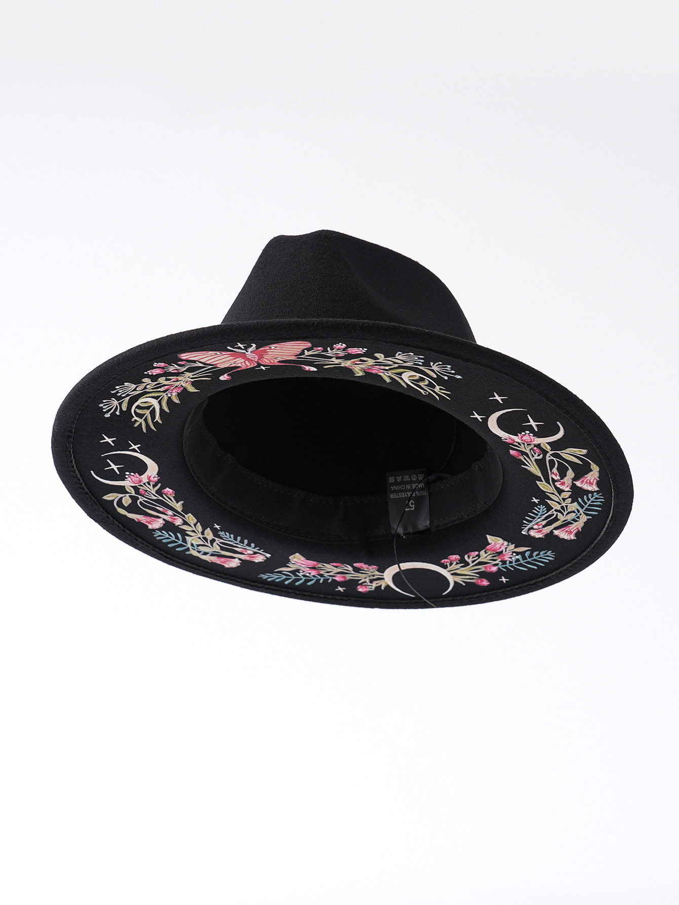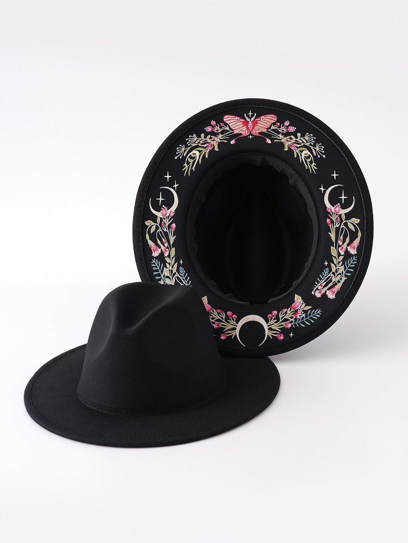 국경 간 모자 새로운 서양 카우보이 모자 민족 스타일 모직 모자 다채로운 나비 꽃 달 인쇄 펠트 모자