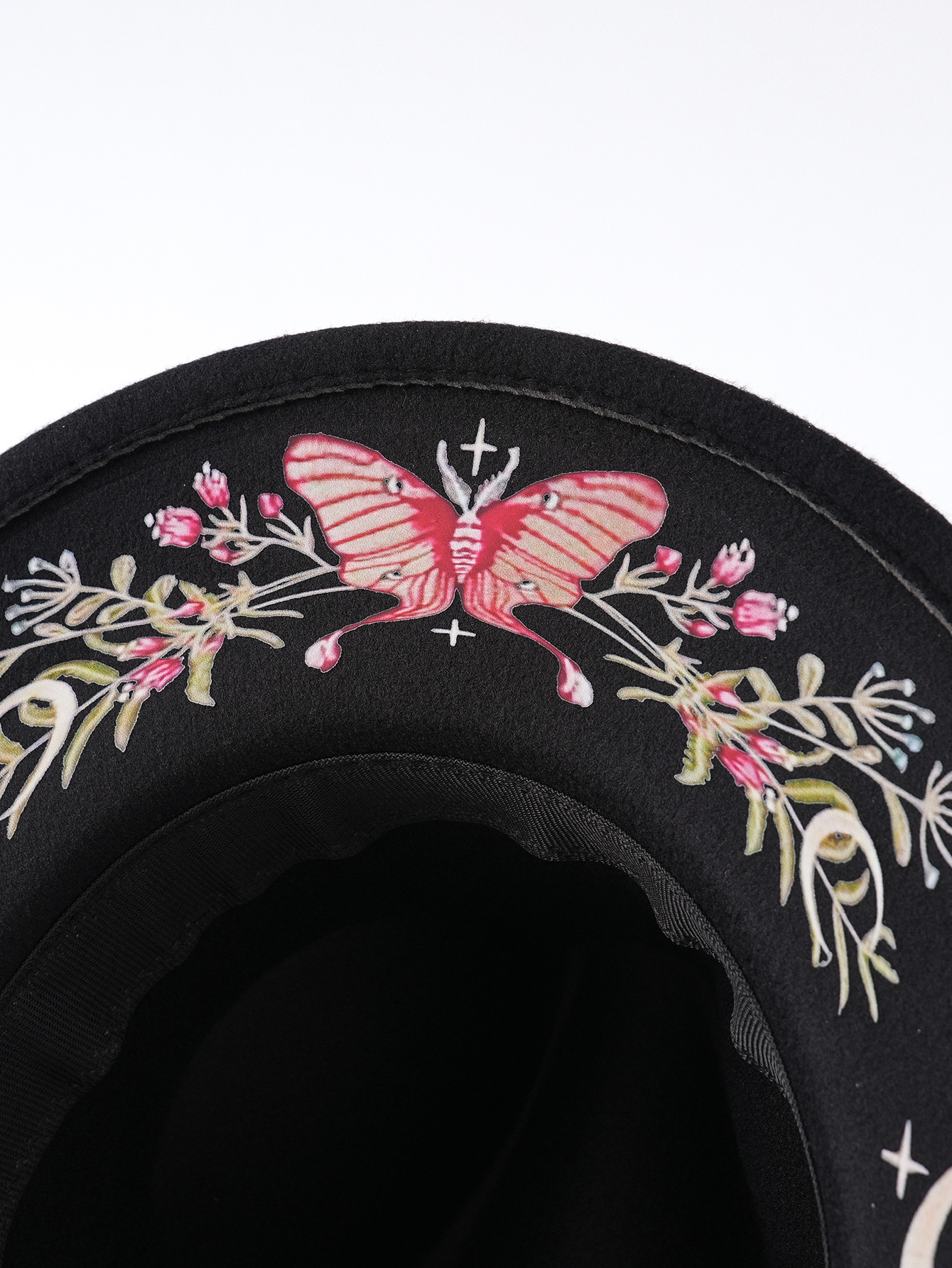 국경 간 모자 새로운 서양 카우보이 모자 민족 스타일 모직 모자 다채로운 나비 꽃 달 인쇄 펠트 모자스토어 가기