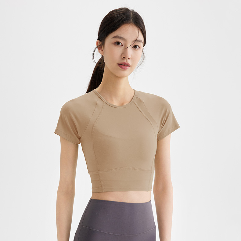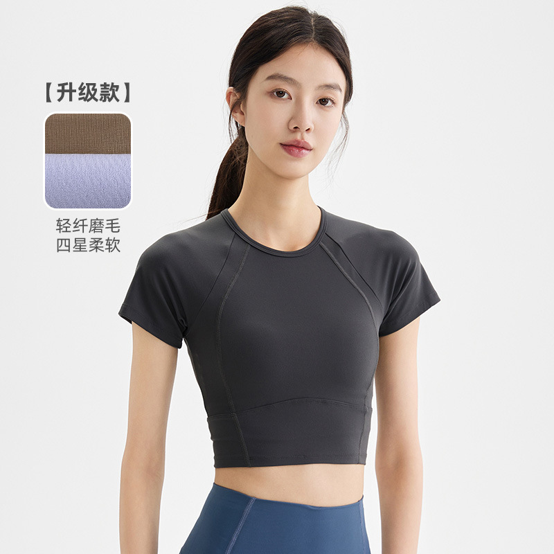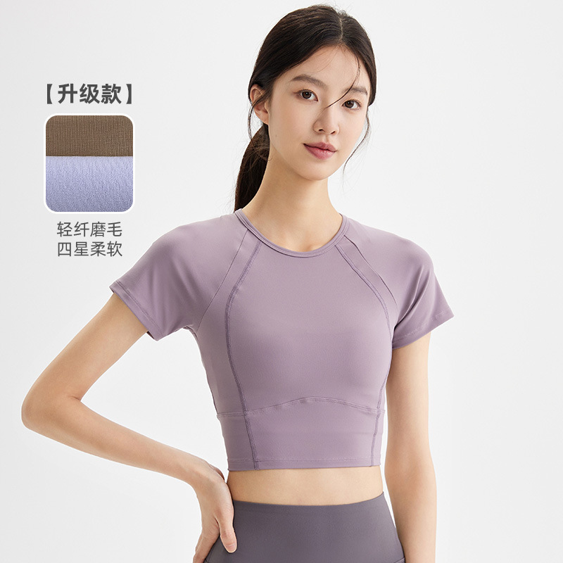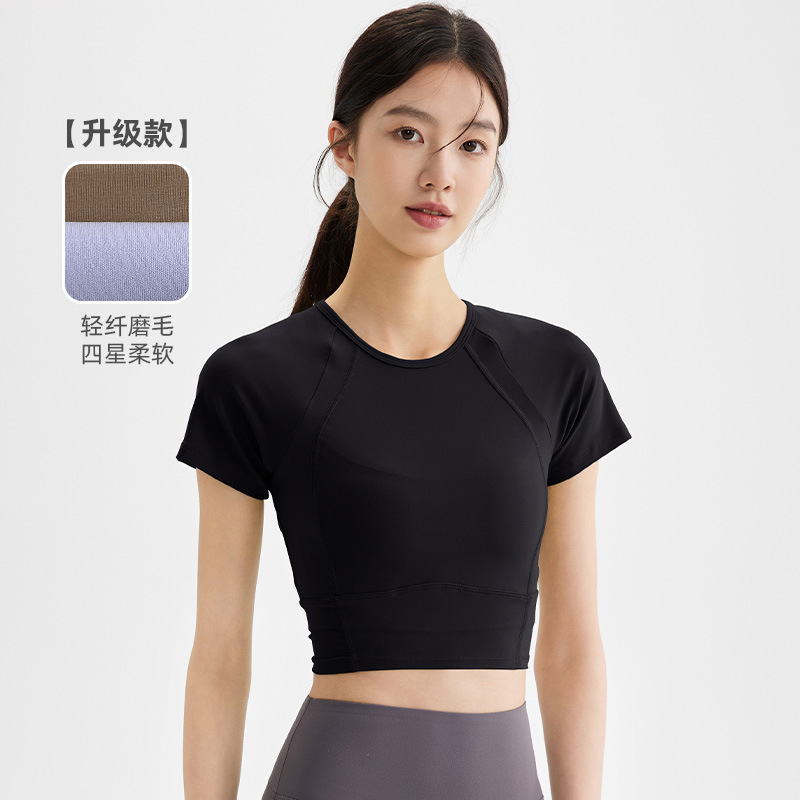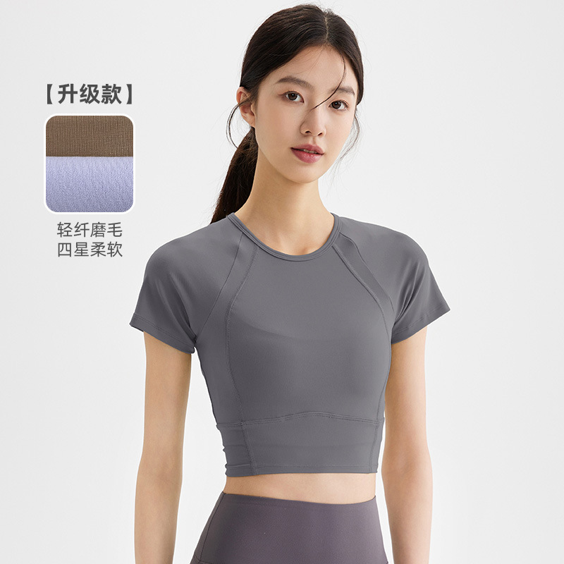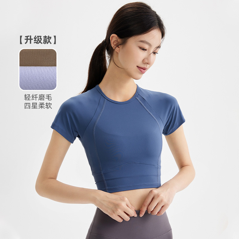 봄과 여름 새로운 요가 옷 블라우스 스포츠 꽉 옷 반팔 티셔츠 여성용 슬림핏 짧은 알몸 빠른 건조 피트니스 옷스토어 가기