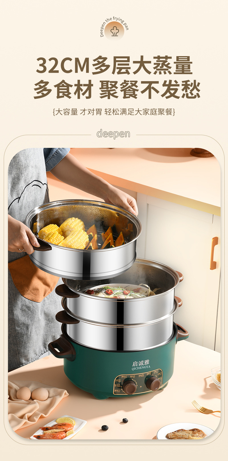 다기능 전기찜기, 대용량 일체형 냄비, 전기 냄비, 가정용 전기 전기 냄비, 붙지 않는 밥솥, 전기 냄비 배치