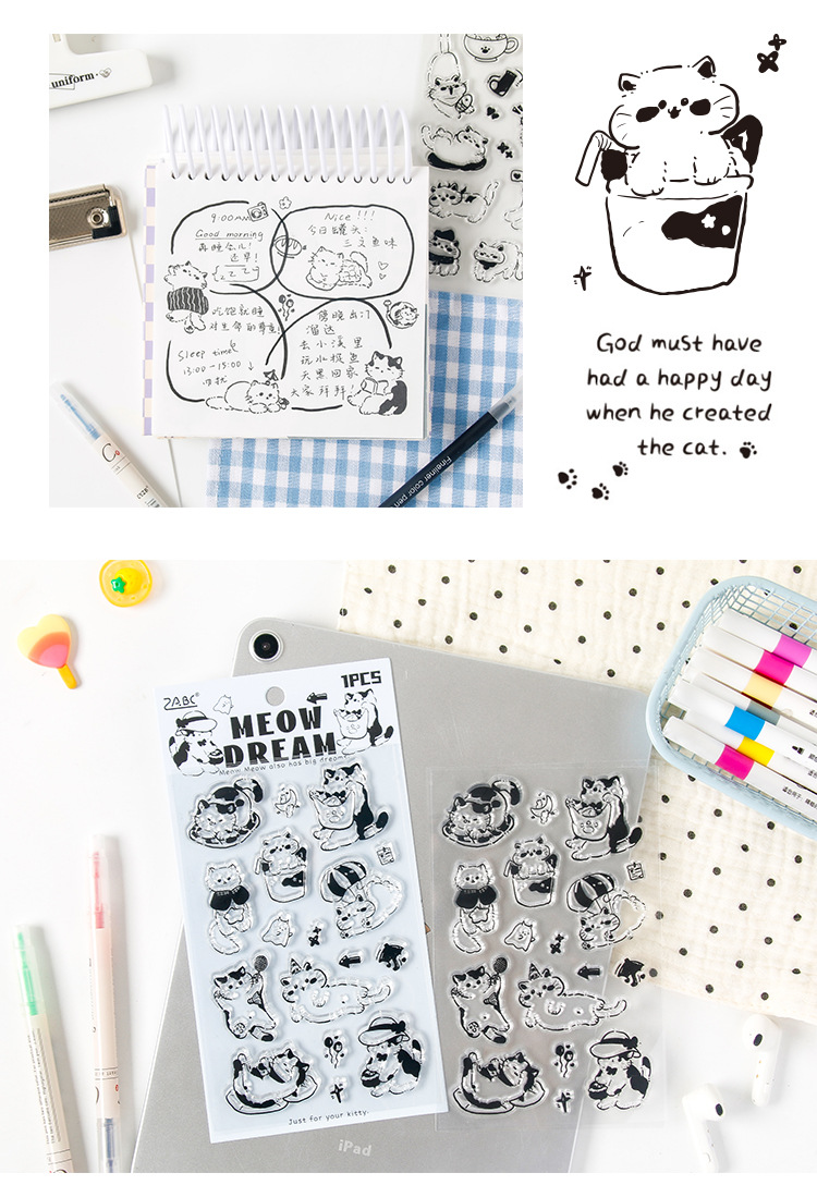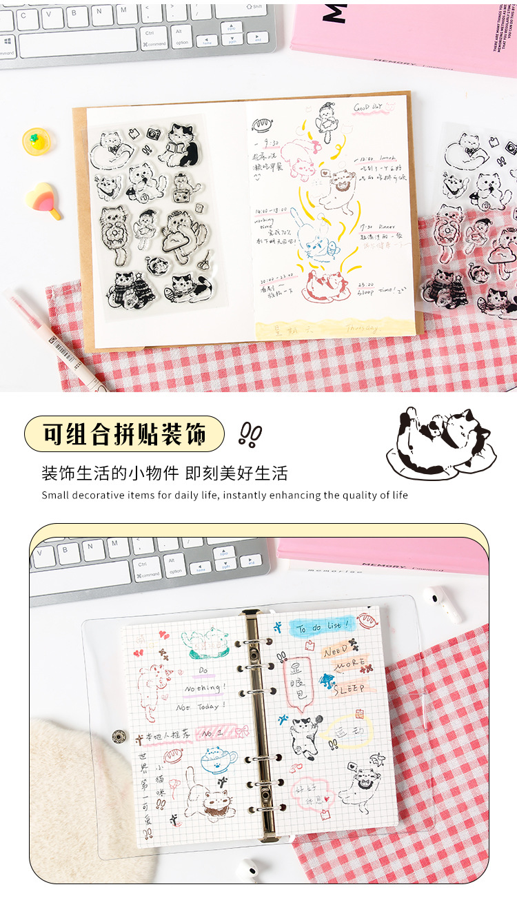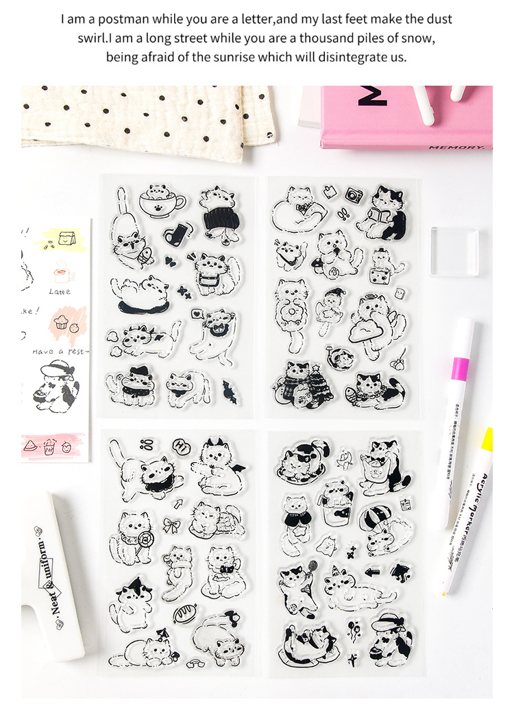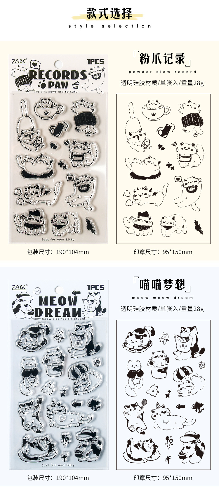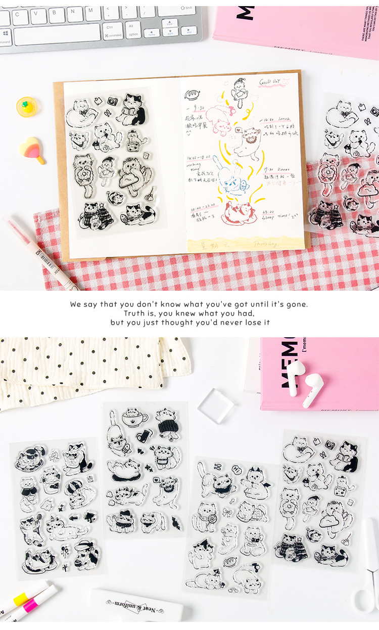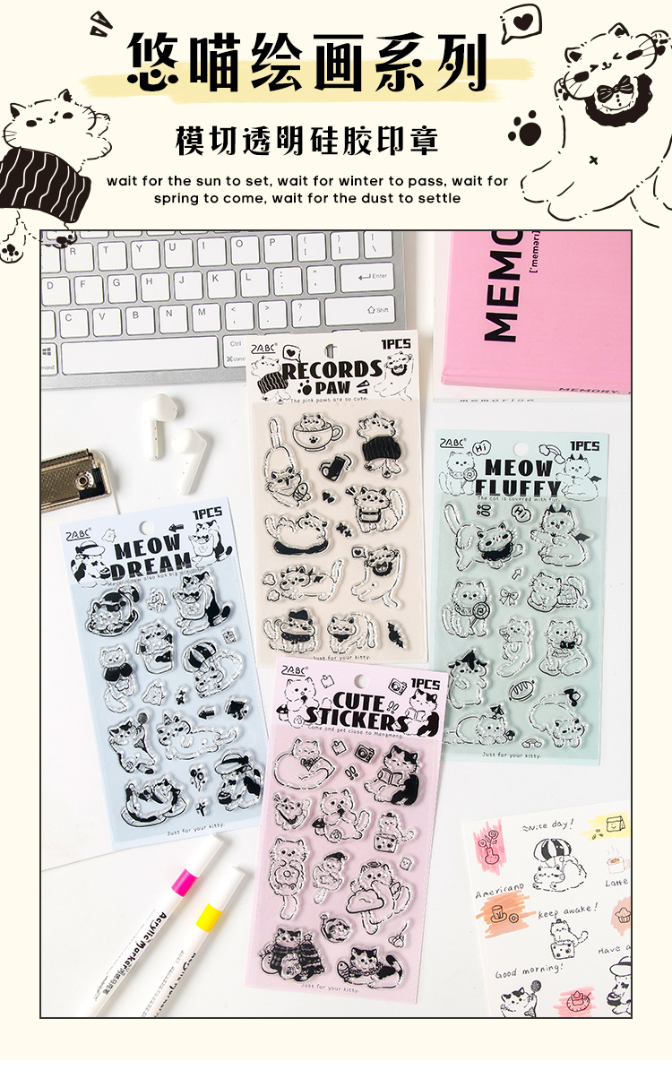 Youmia 그림 투명 실리콘 스탬프 크로스 보더 복고풍 고양이 핸드북 스탬프 인쇄 만화 동물 투명 스탬프