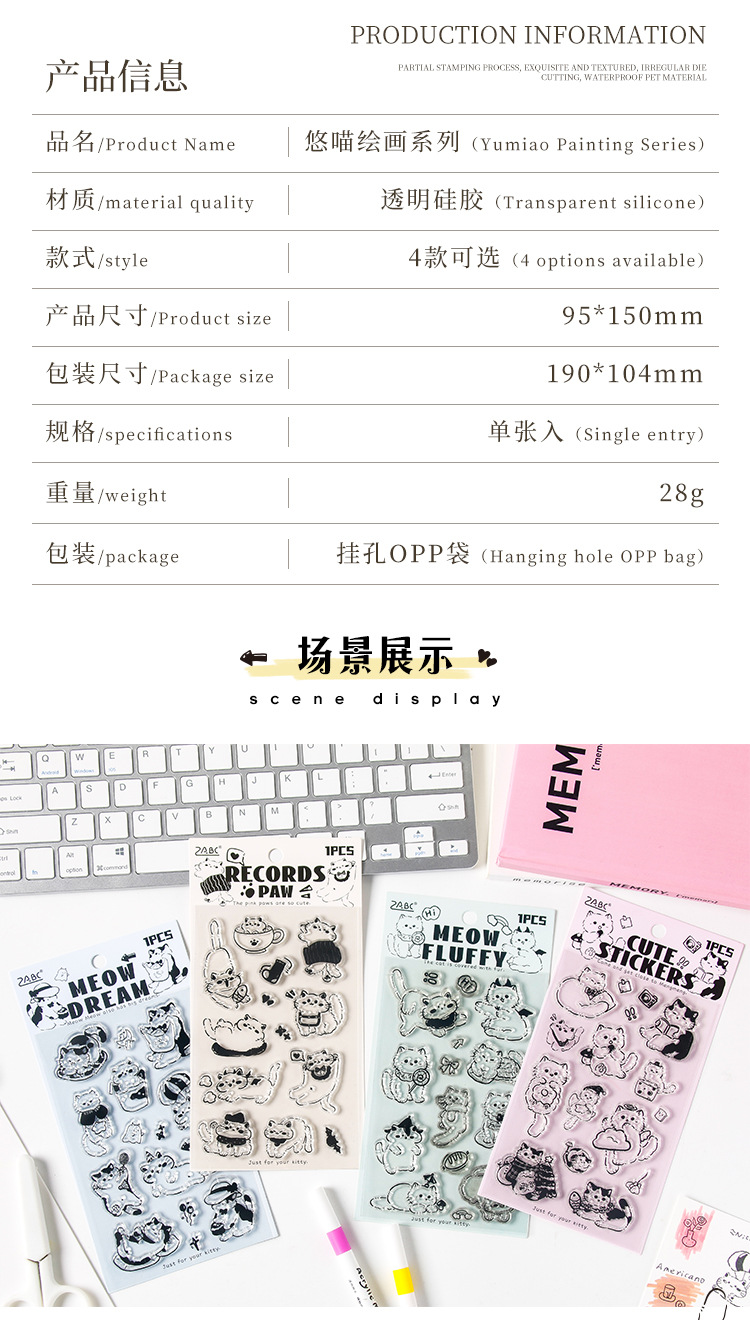 Youmia 그림 투명 실리콘 스탬프 크로스 보더 복고풍 고양이 핸드북 스탬프 인쇄 만화 동물 투명 스탬프스토어 가기