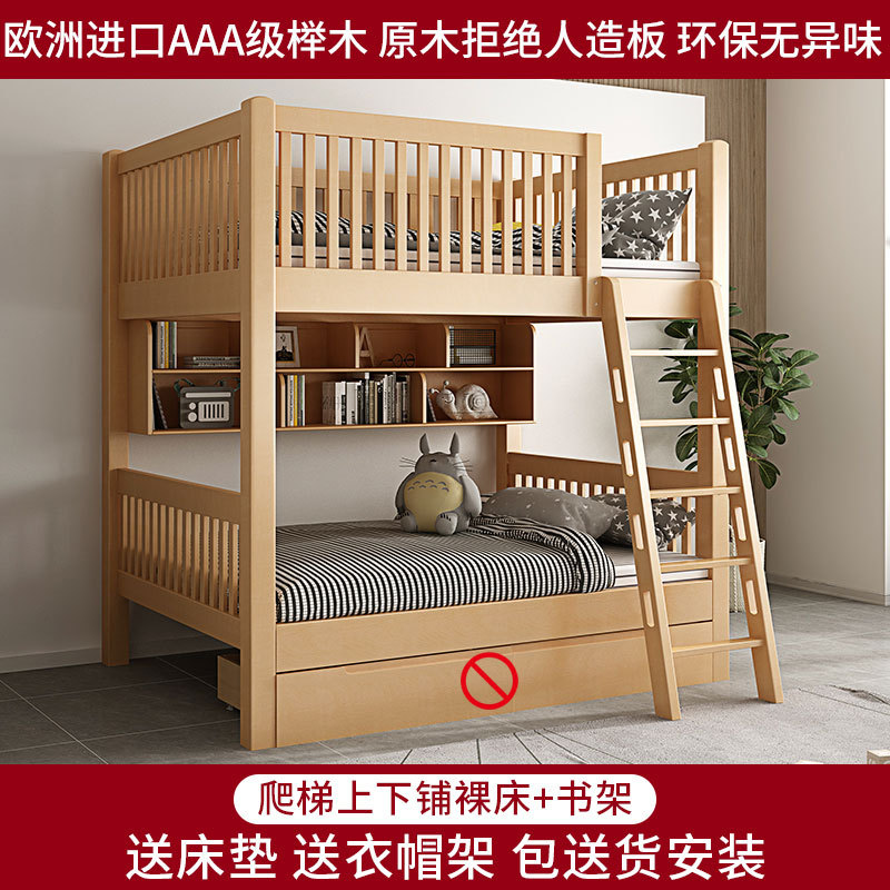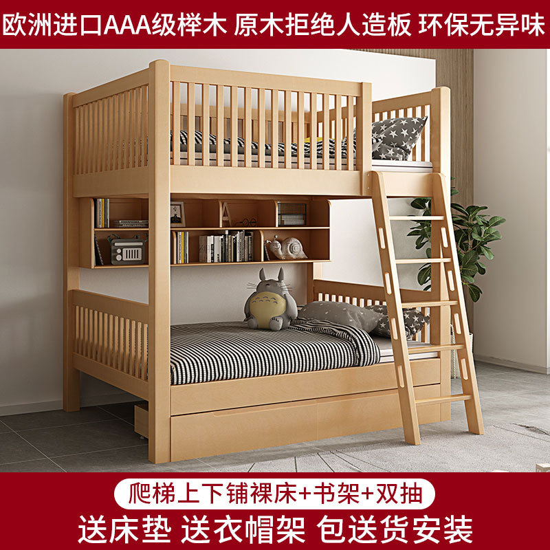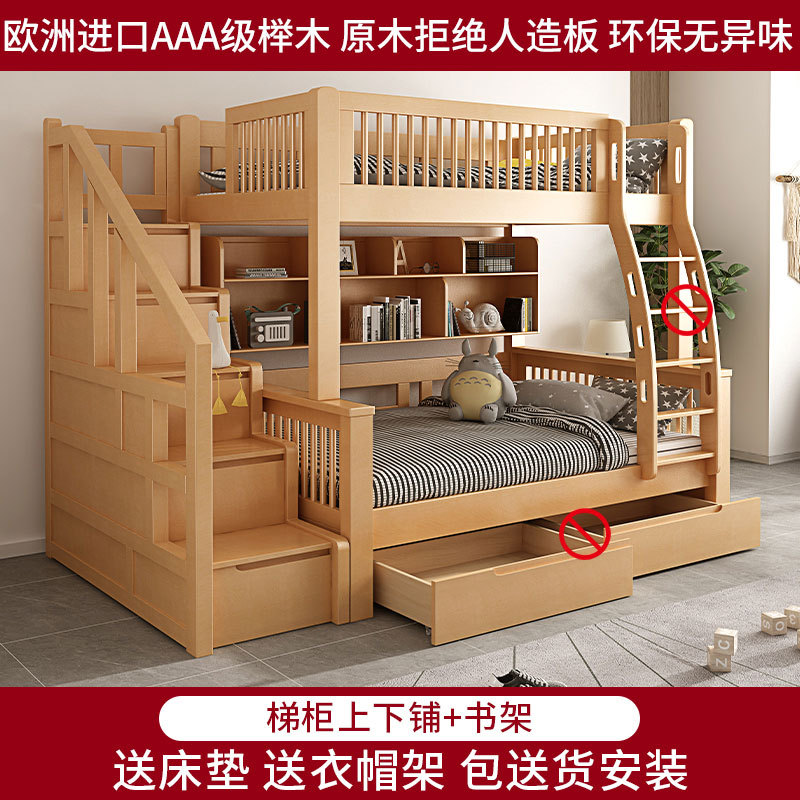 • 사다리 캐비닛 이층 침대 + 책장 + 이중 서랍 + 무료 무접착 코코넛 야자 매트리스 * 2 (모두 단단한 나무 - AAA 등급 너도밤 나무로 제작)