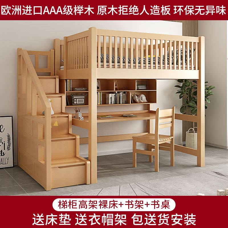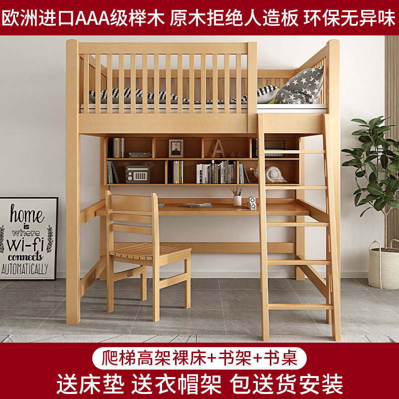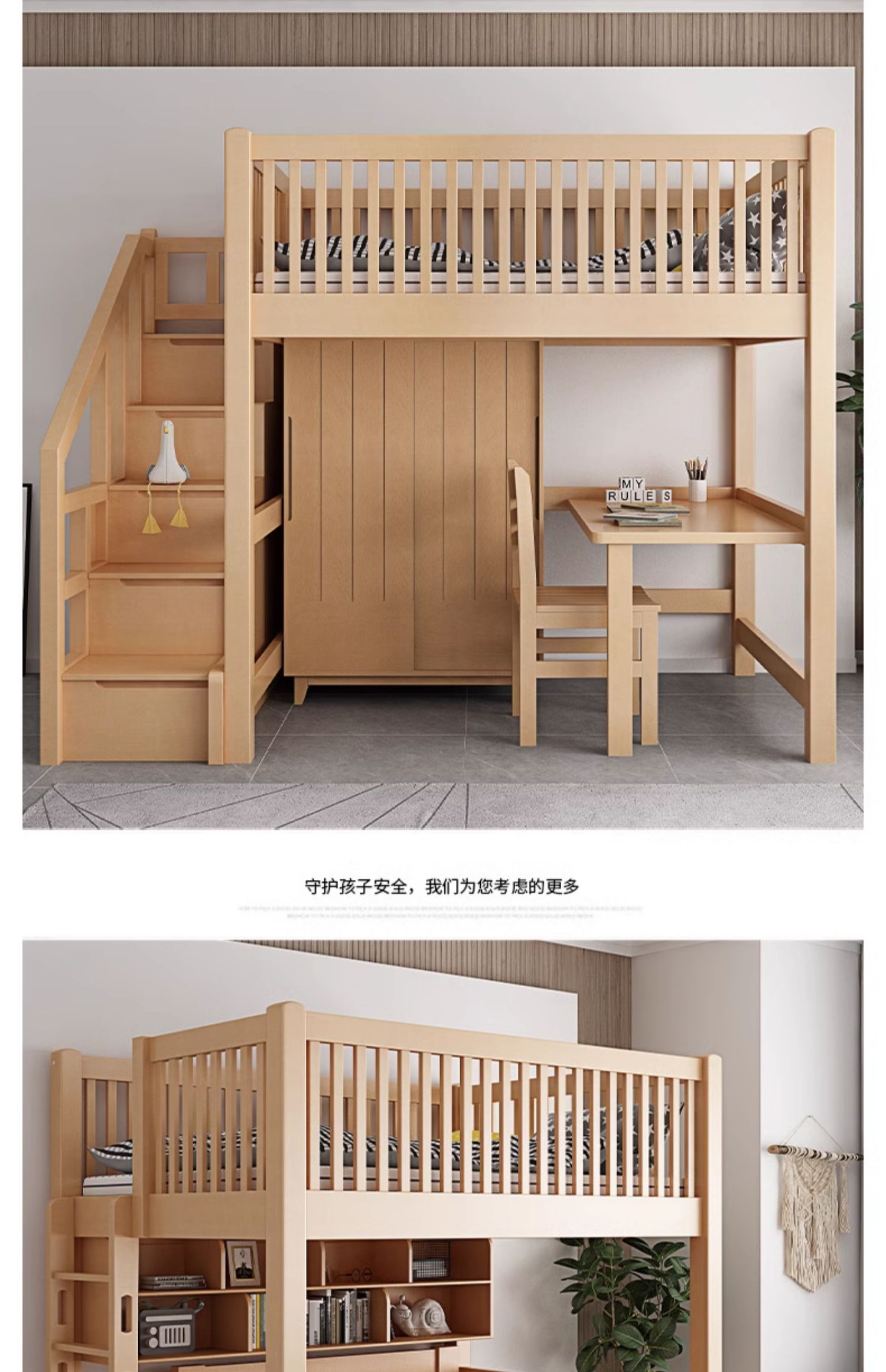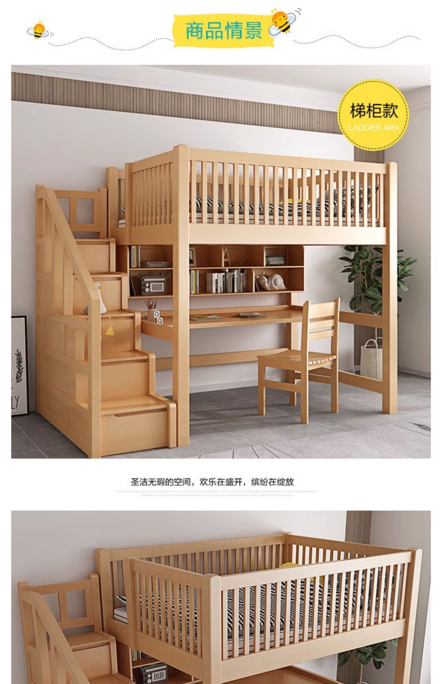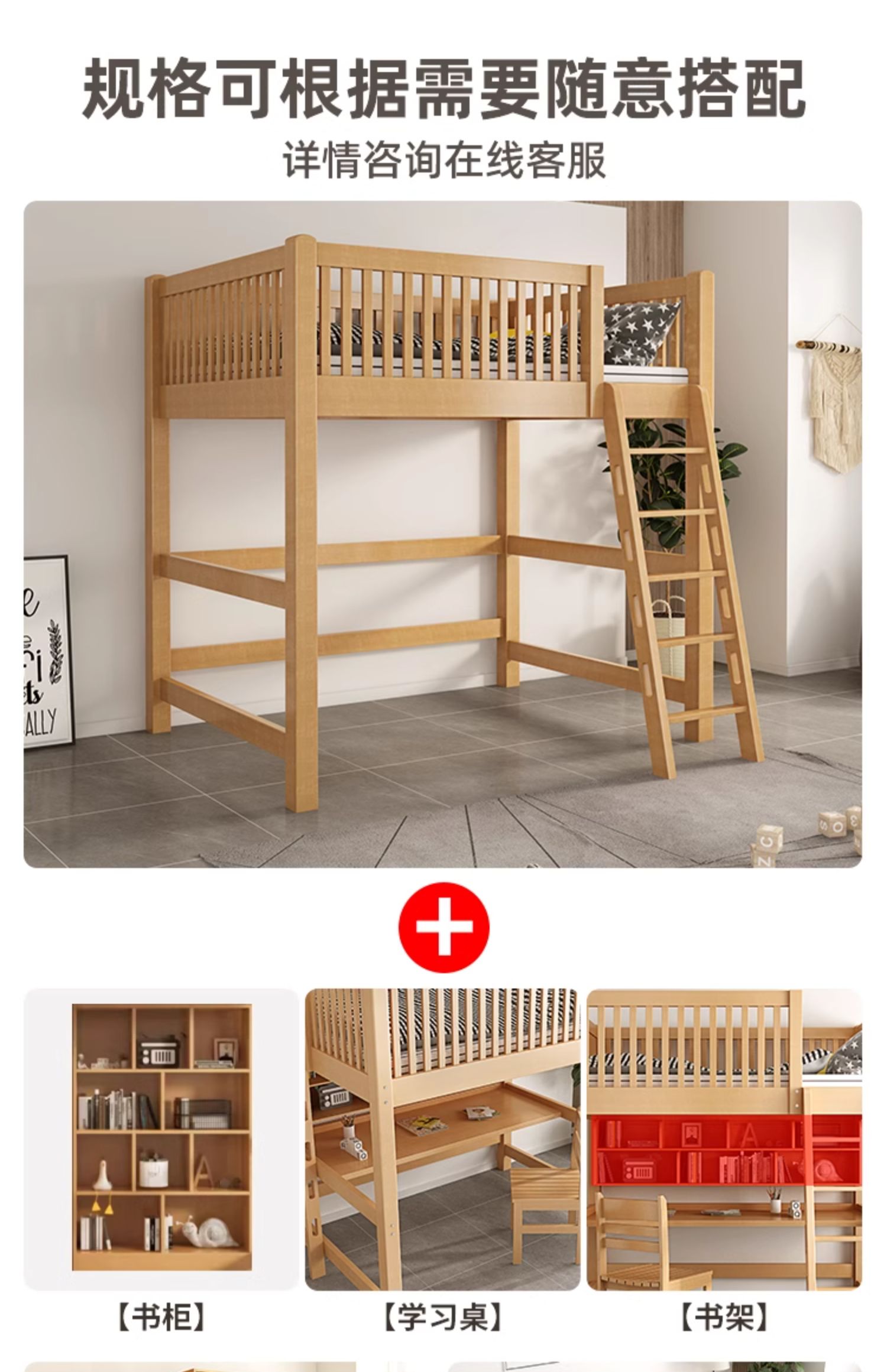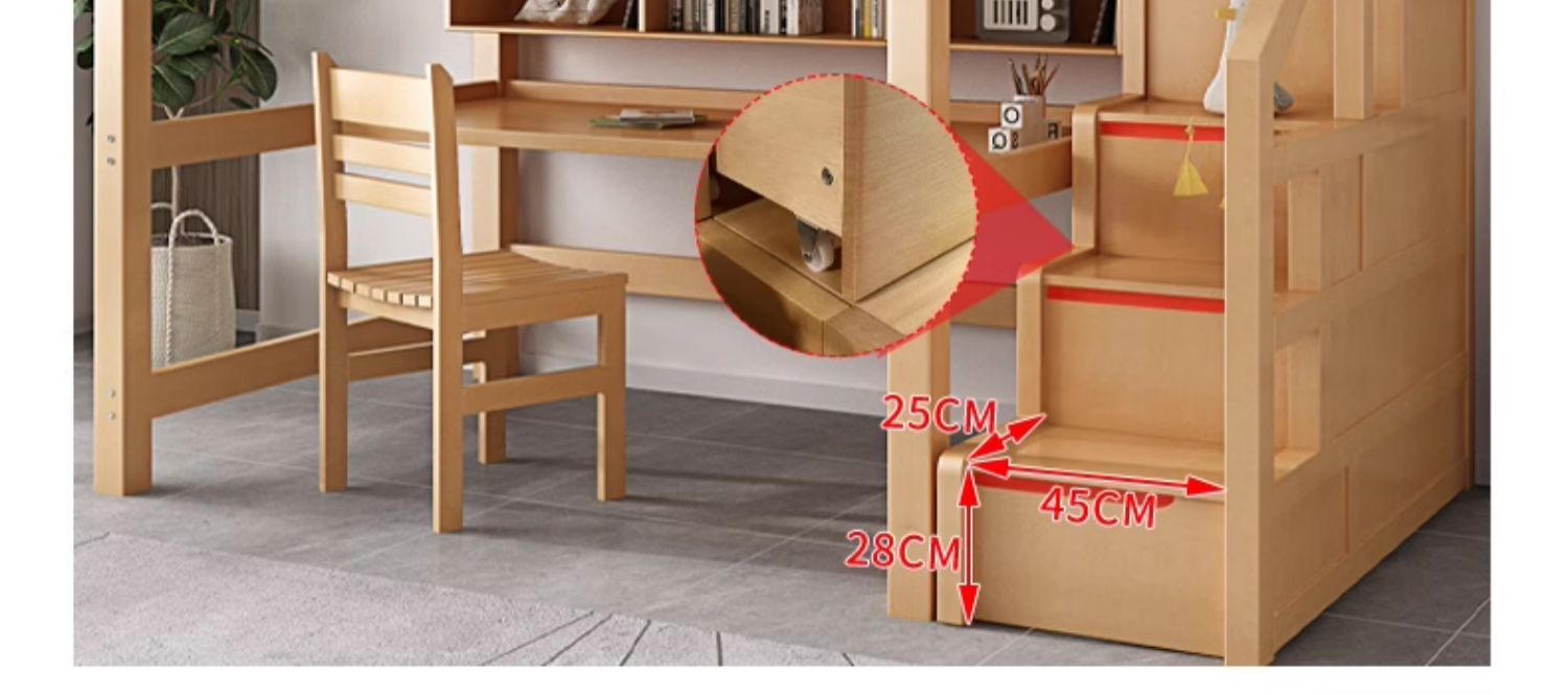 • 사다리형 침대 + 책장 + 책상 + 싱글 옷장 + 무접착 코코넛 야자 매트리스 * 1 (전체 원목 - AAA 등급 너도밤나무)