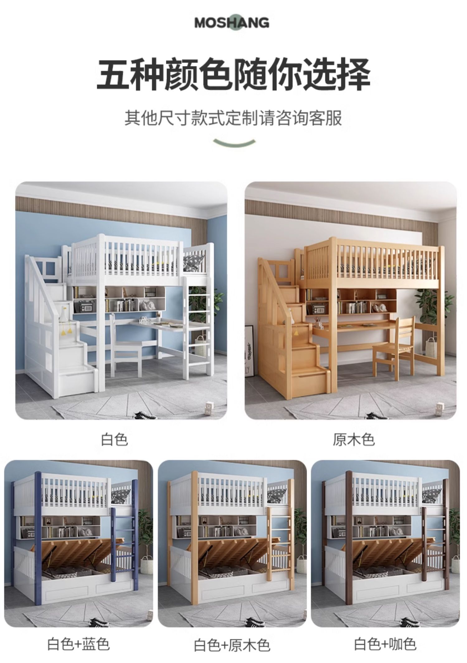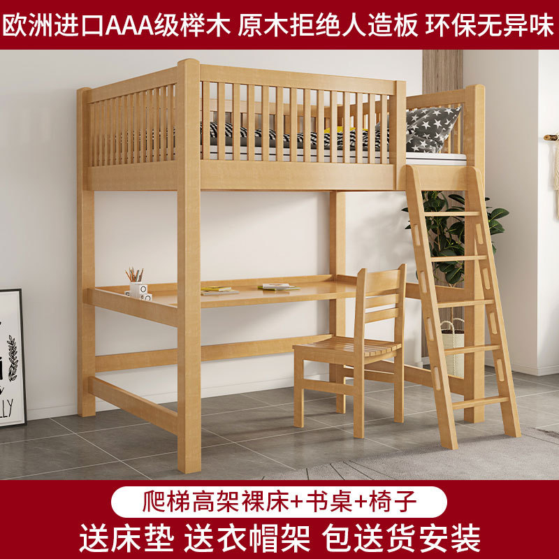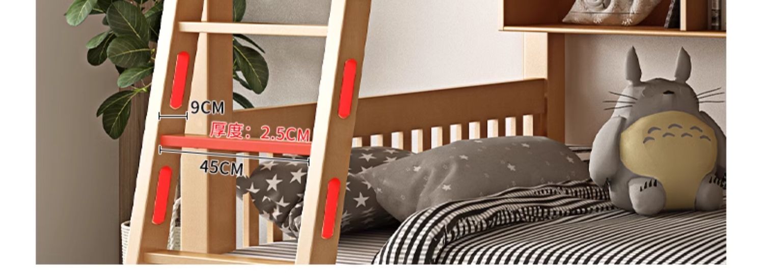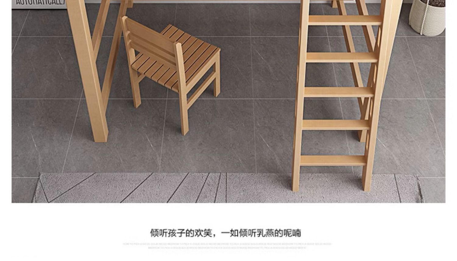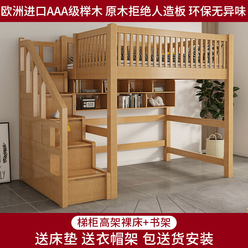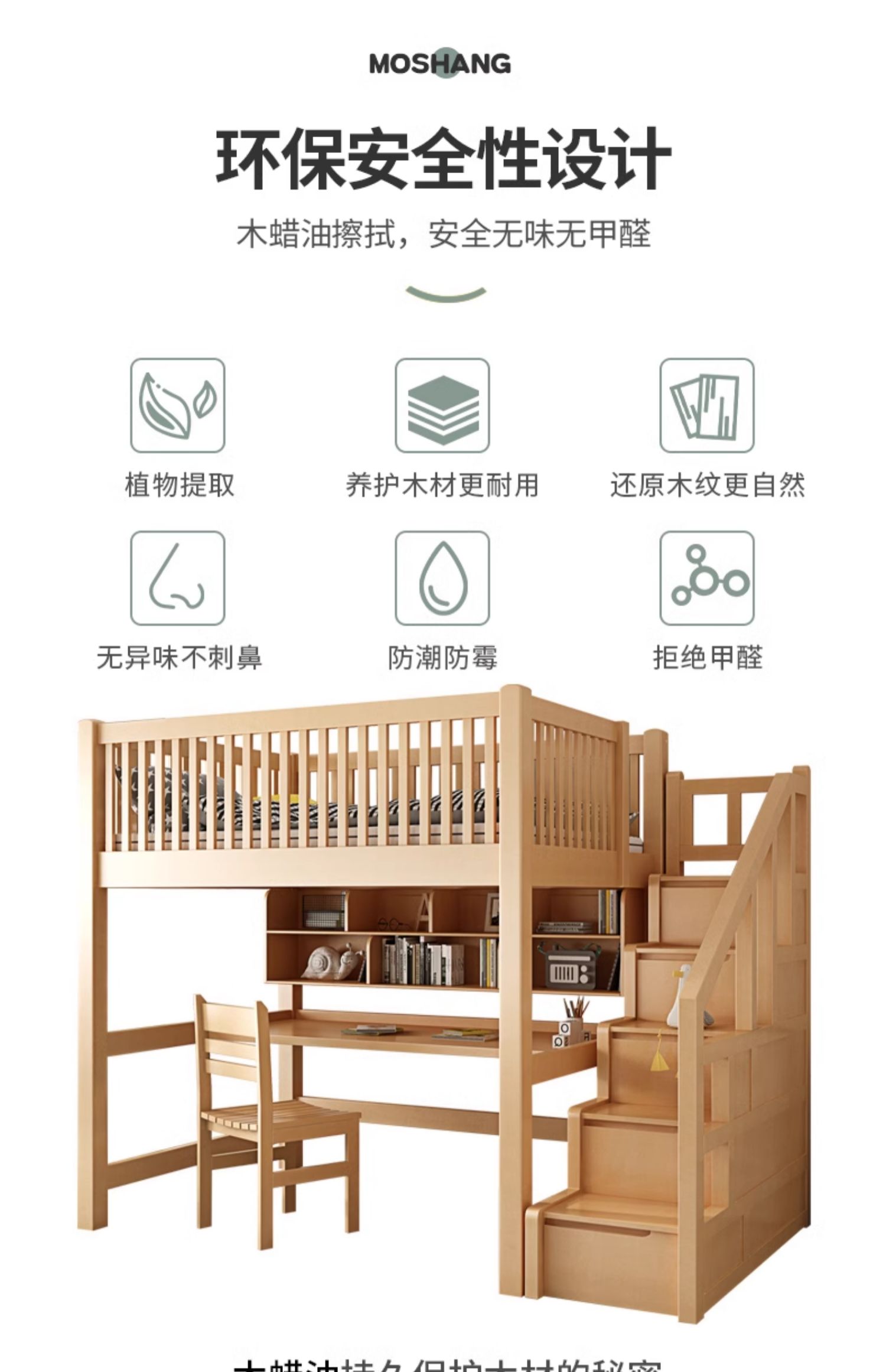 • 사다리형 침대 + 책장 + 책상 + 싱글 옷장 + 무접착 코코넛 야자 매트리스 * 1 (전체 원목 - AAA 등급 너도밤나무)