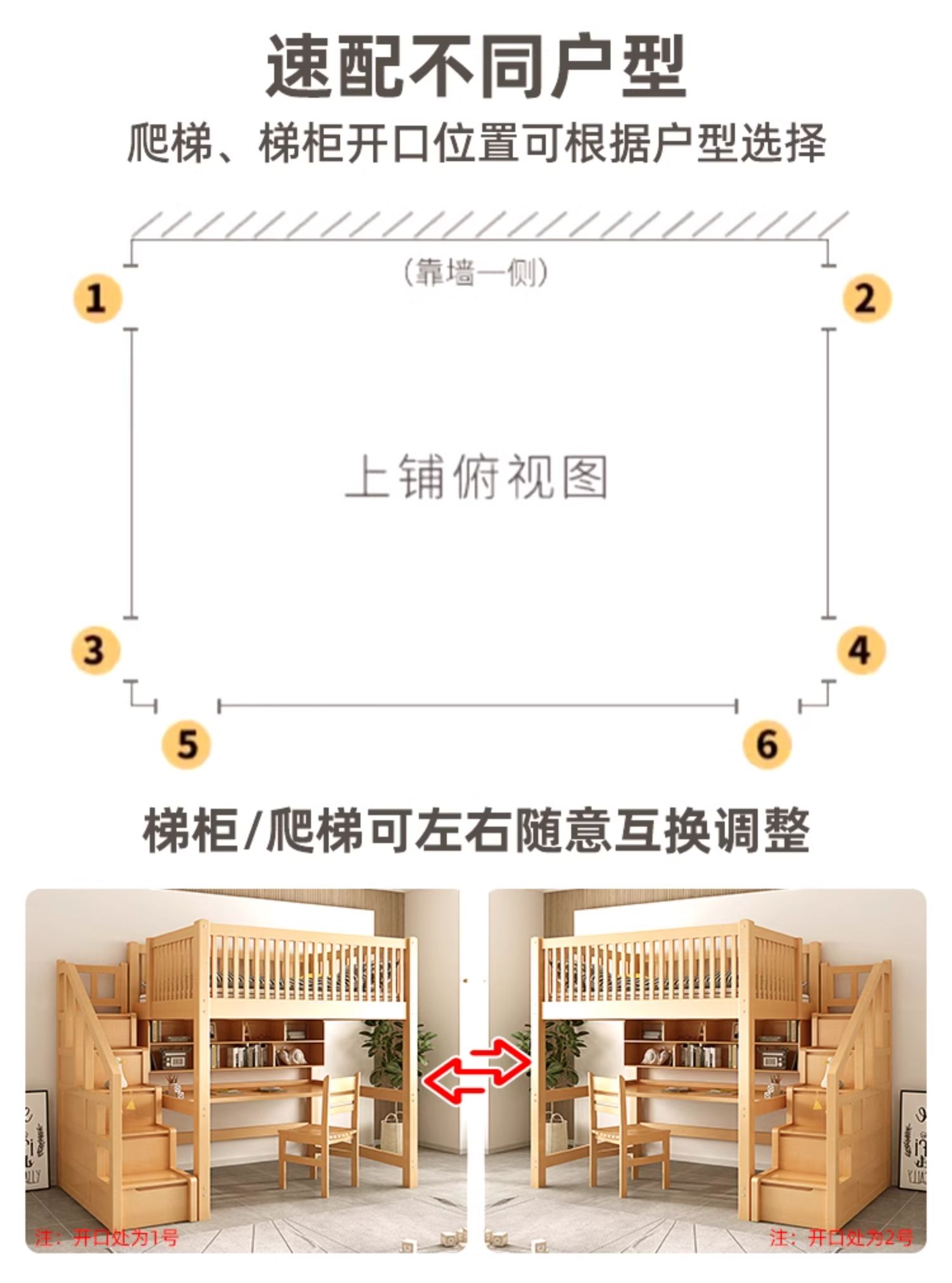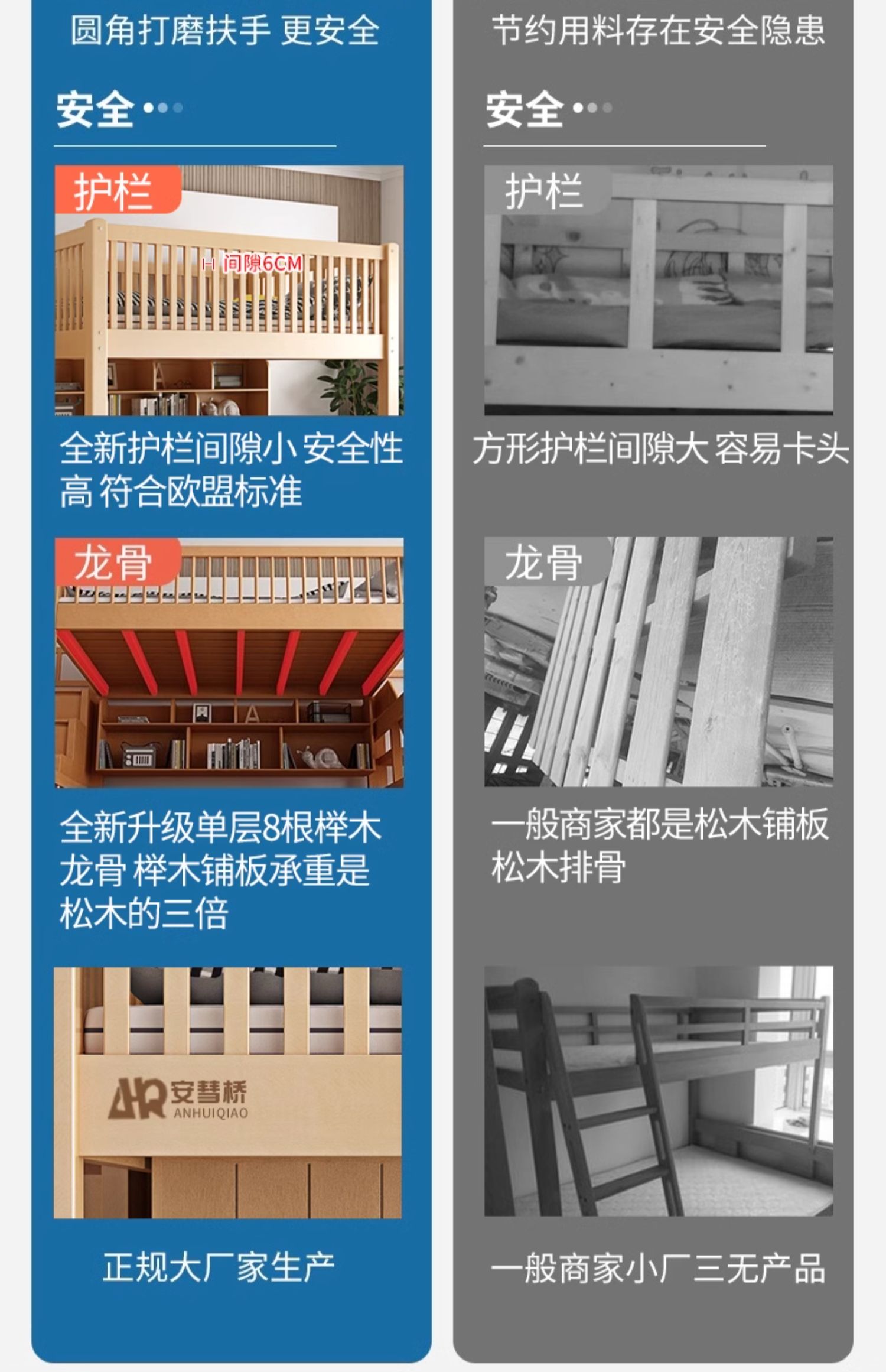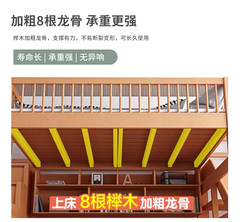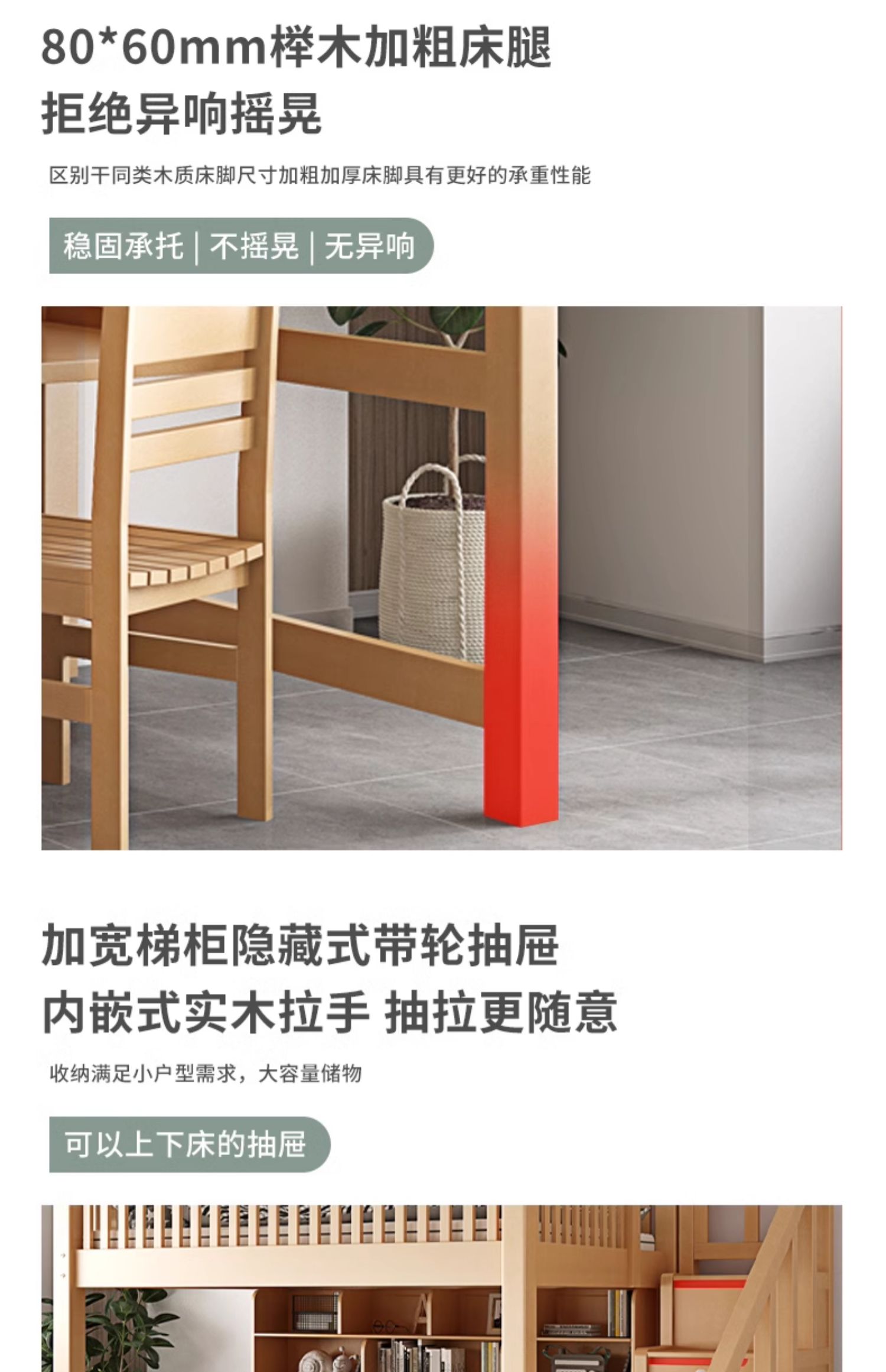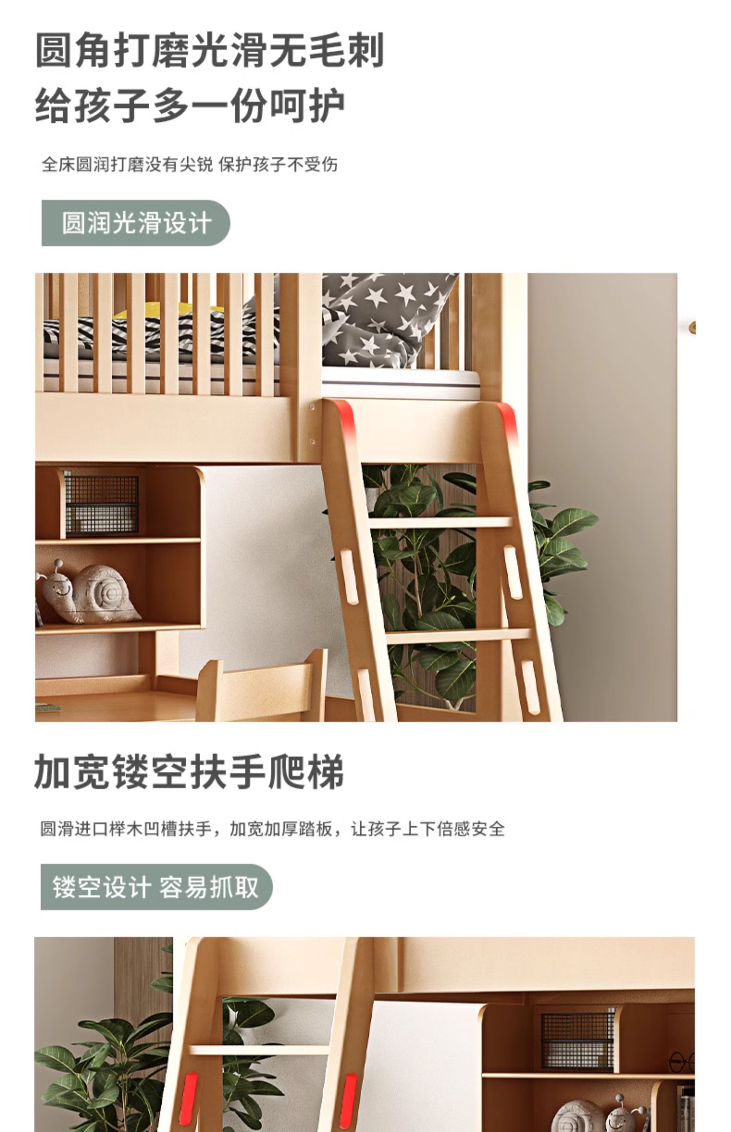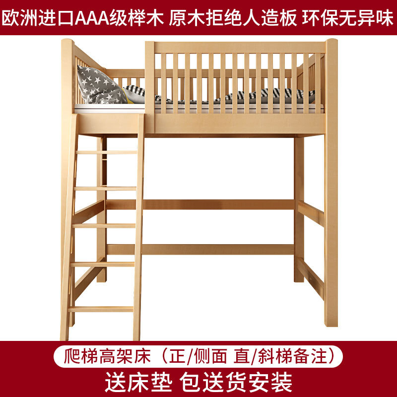• 사다리형 침대 + 책장 + 책상 + 싱글 옷장 + 무접착 코코넛 야자 매트리스 * 1 (전체 원목 - AAA 등급 너도밤나무)