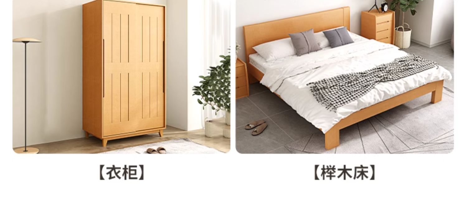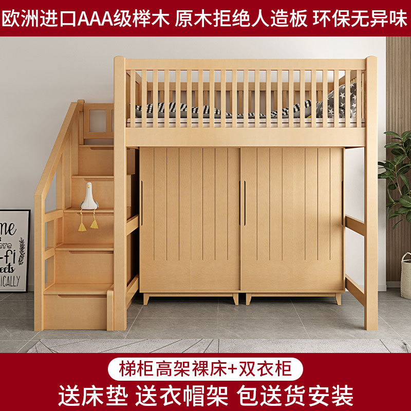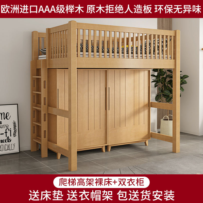 • 사다리형 침대 + 더블 옷장 + 무료 무접착 코코넛 야자 매트리스*1(전체 원목 - AAA 등급 너도밤나무로 제작)