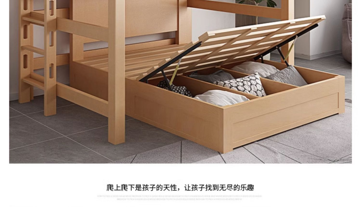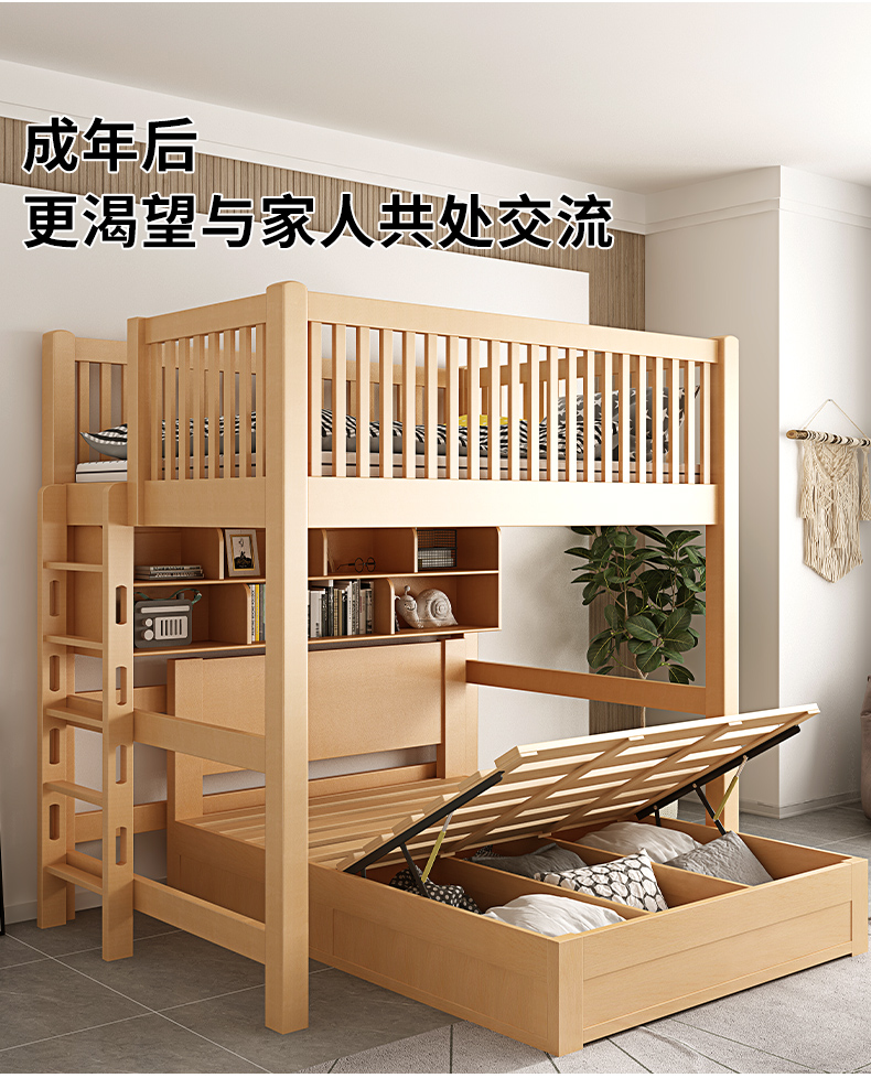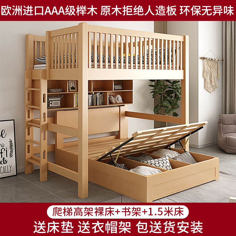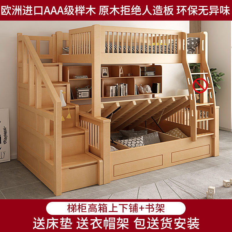 • 사다리형 침대 + 책장 + 1.5 높이 박스 수납 침대 + 무접착 코코넛 야자 매트리스 * 2 (모두 단단한 나무 - AAA 등급 너도밤나무로 제작)