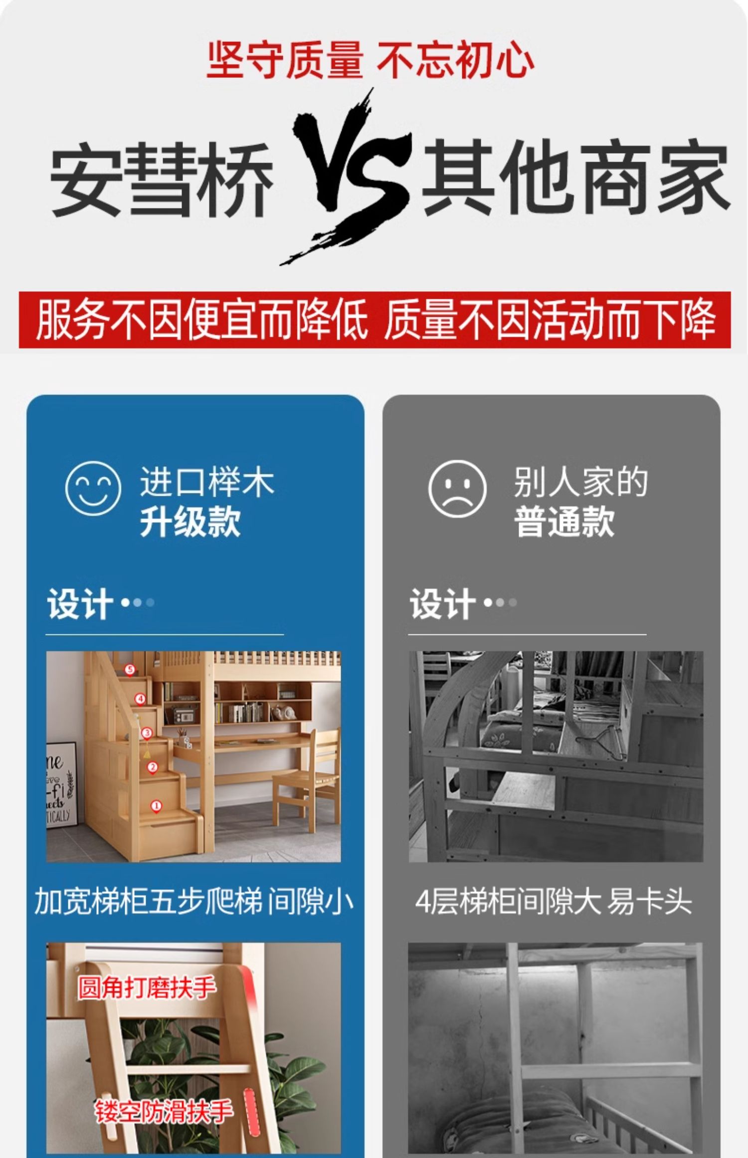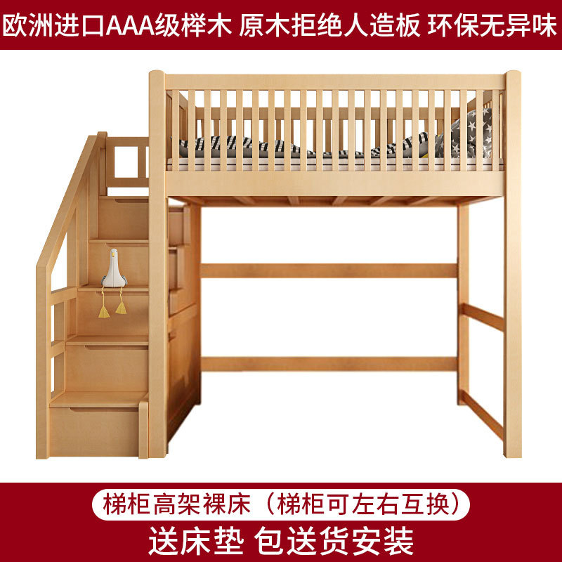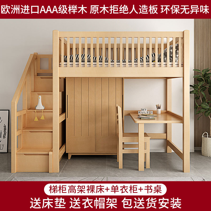 • 사다리 캐비닛 높은 침대 + 싱글 옷장 + 책상 + 무료 무접착 코코넛 야자 매트리스 * 1 (모두 단단한 나무 - AAA 등급 너도밤나무로 제작)