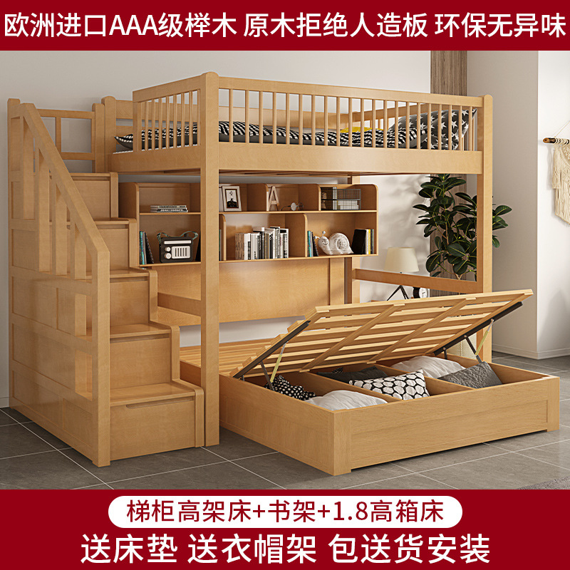 • 사다리 캐비닛 높은 침대 + 책장 + 1.8 높이 상자 수납 침대 + 무료 무접착 코코넛 야자 매트리스 * 2 (모두 단단한 나무 - AAA 등급 너도밤나무로 제작)