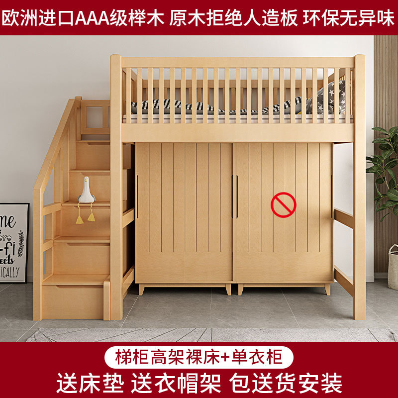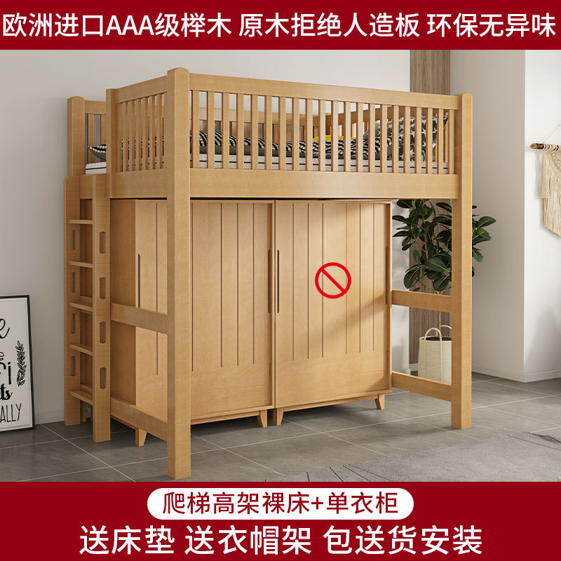 • 사다리 캐비닛 높은 침대 + 싱글 옷장 + 무료 무접착 코코넛 야자 매트리스 * 1 (모두 단단한 나무 - AAA 등급 너도밤나무로 제작)