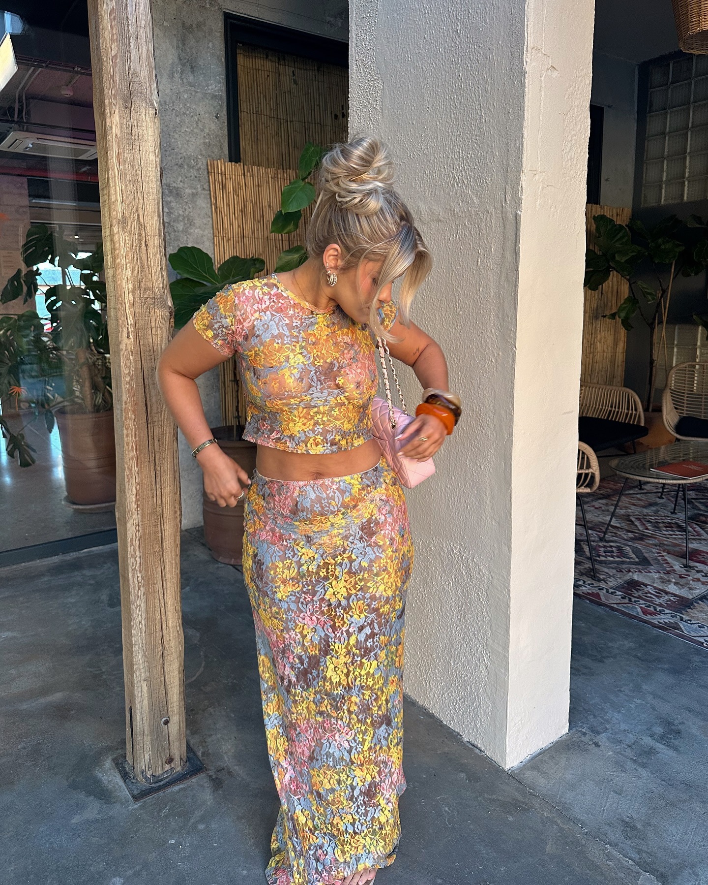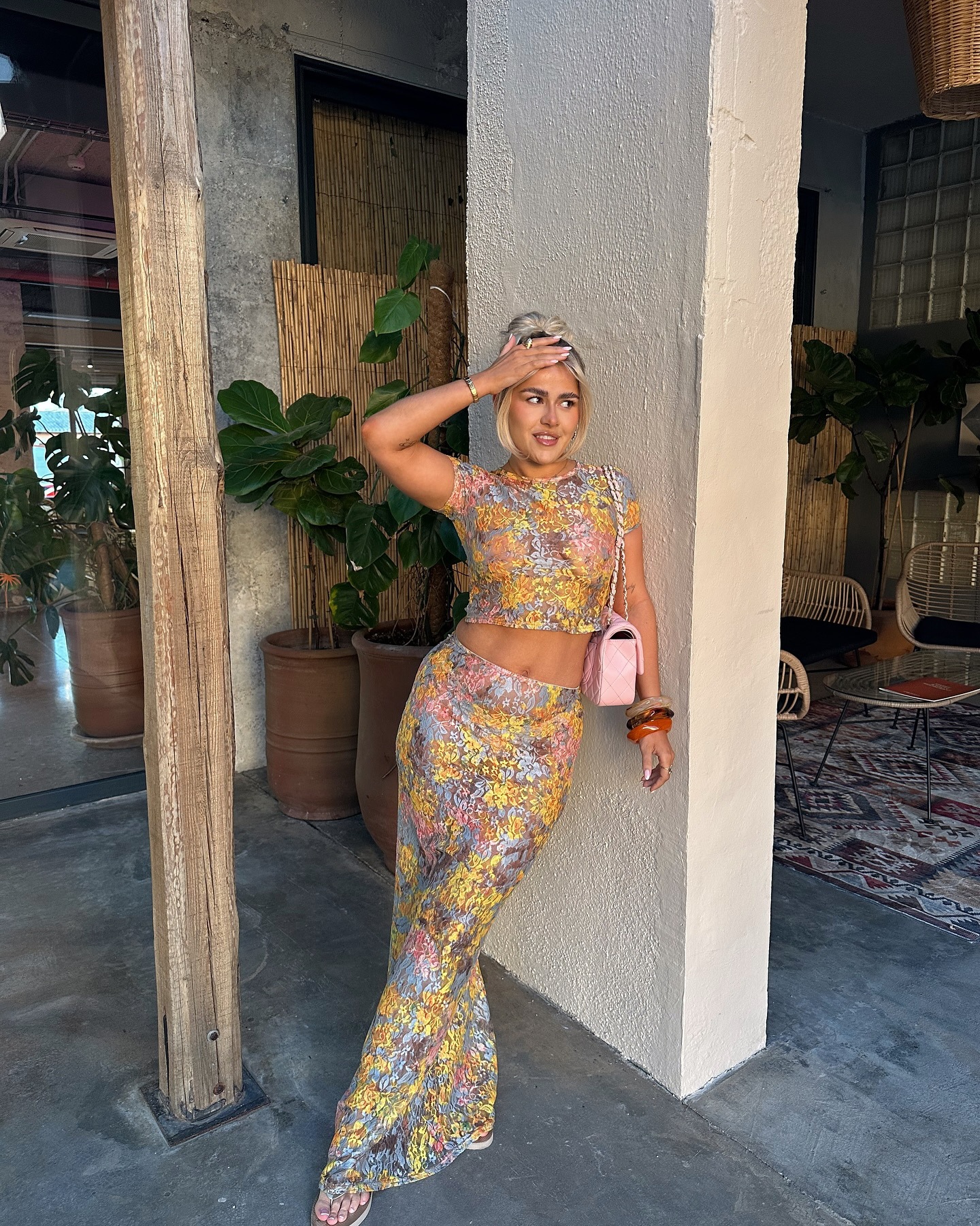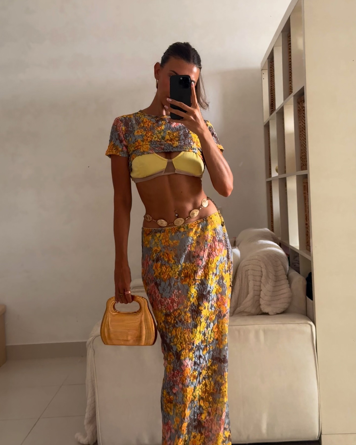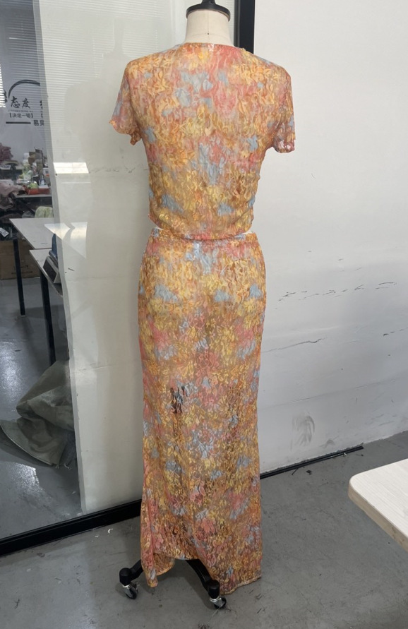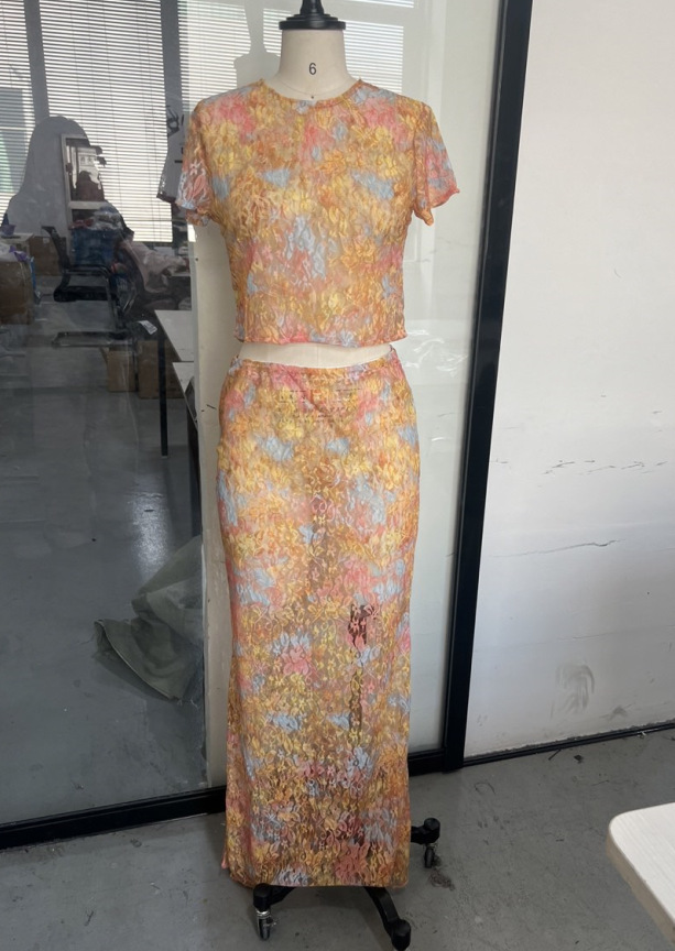 아마존 국경 간 인기 대외 무역 유럽과 미국 스타일의 여성 패션 프린트 반팔 탑과 스커트 슈트