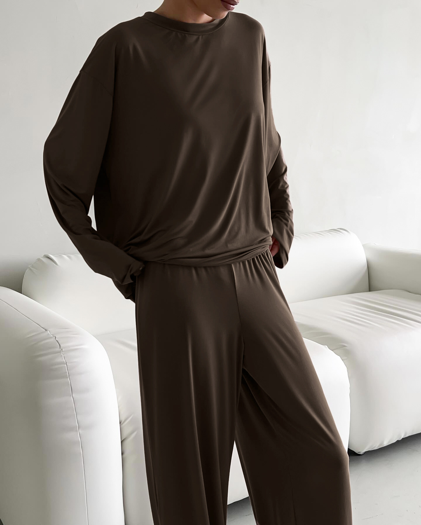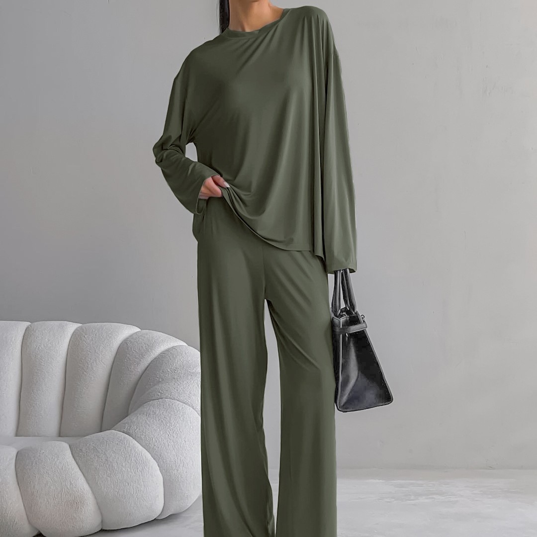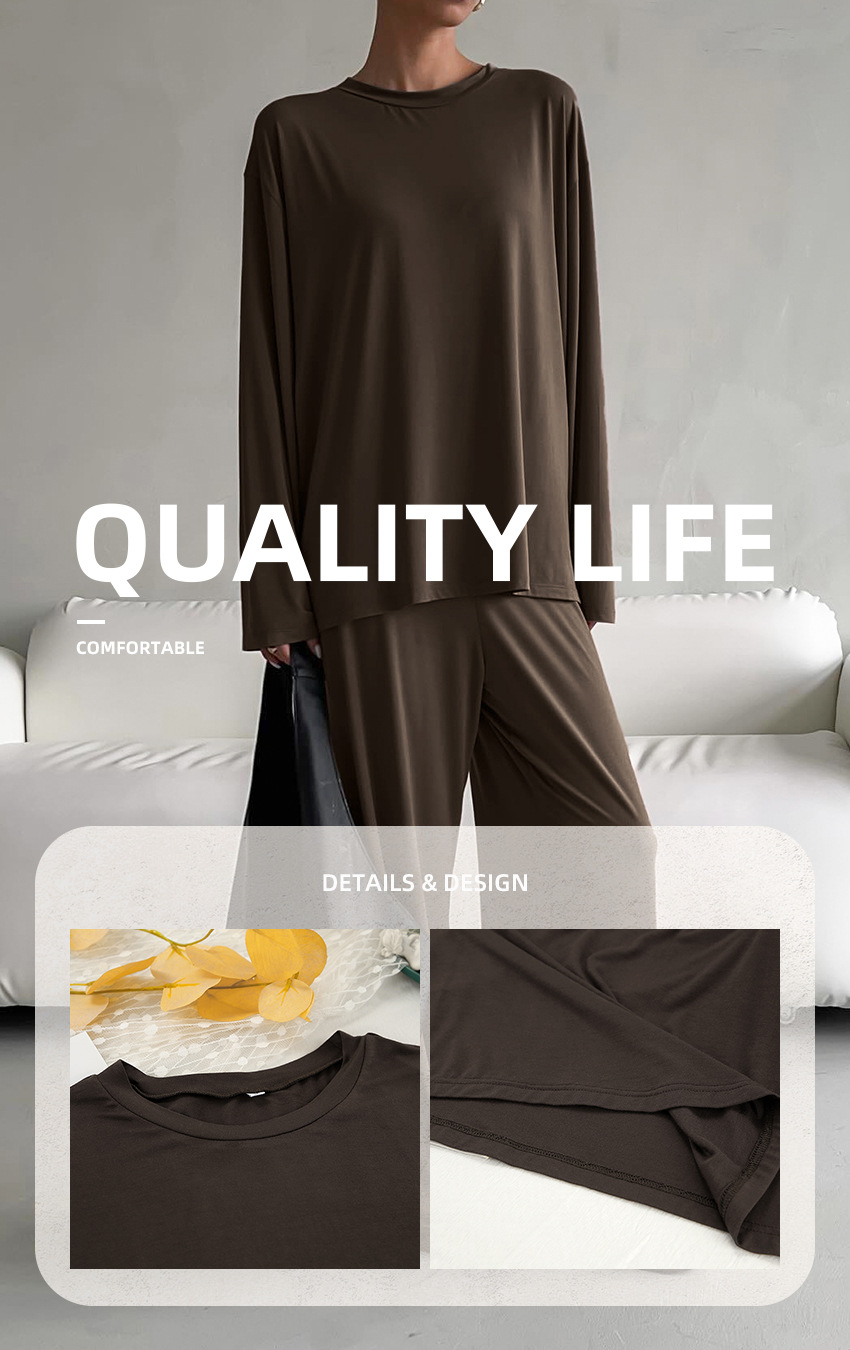 모달 소재 부드러운 긴팔 긴바지 잠옷 투피스 세트 2026 유럽 및 미국 여름 신상품 피부 친화적인 홈웨어 여성용
