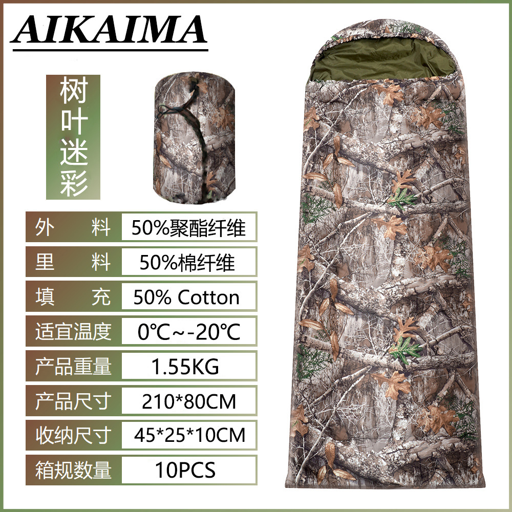 아마존 국경 간 나뭇잎 위장 침낭 여행 캠핑 사냥 절연 위장 침낭 2M 성인 겨울 침낭