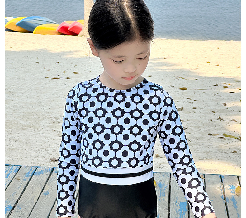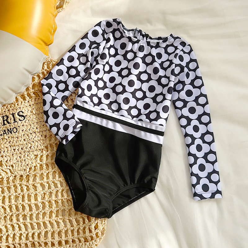 신형 여아 수영복 한국 아동용 긴팔 자외선 차단 속건 원피스 수영복 중소형 여아 패션 수영복