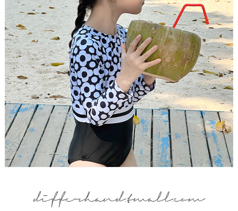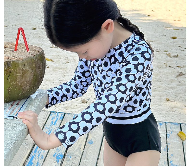 신형 여아 수영복 한국 아동용 긴팔 자외선 차단 속건 원피스 수영복 중소형 여아 패션 수영복스토어 가기