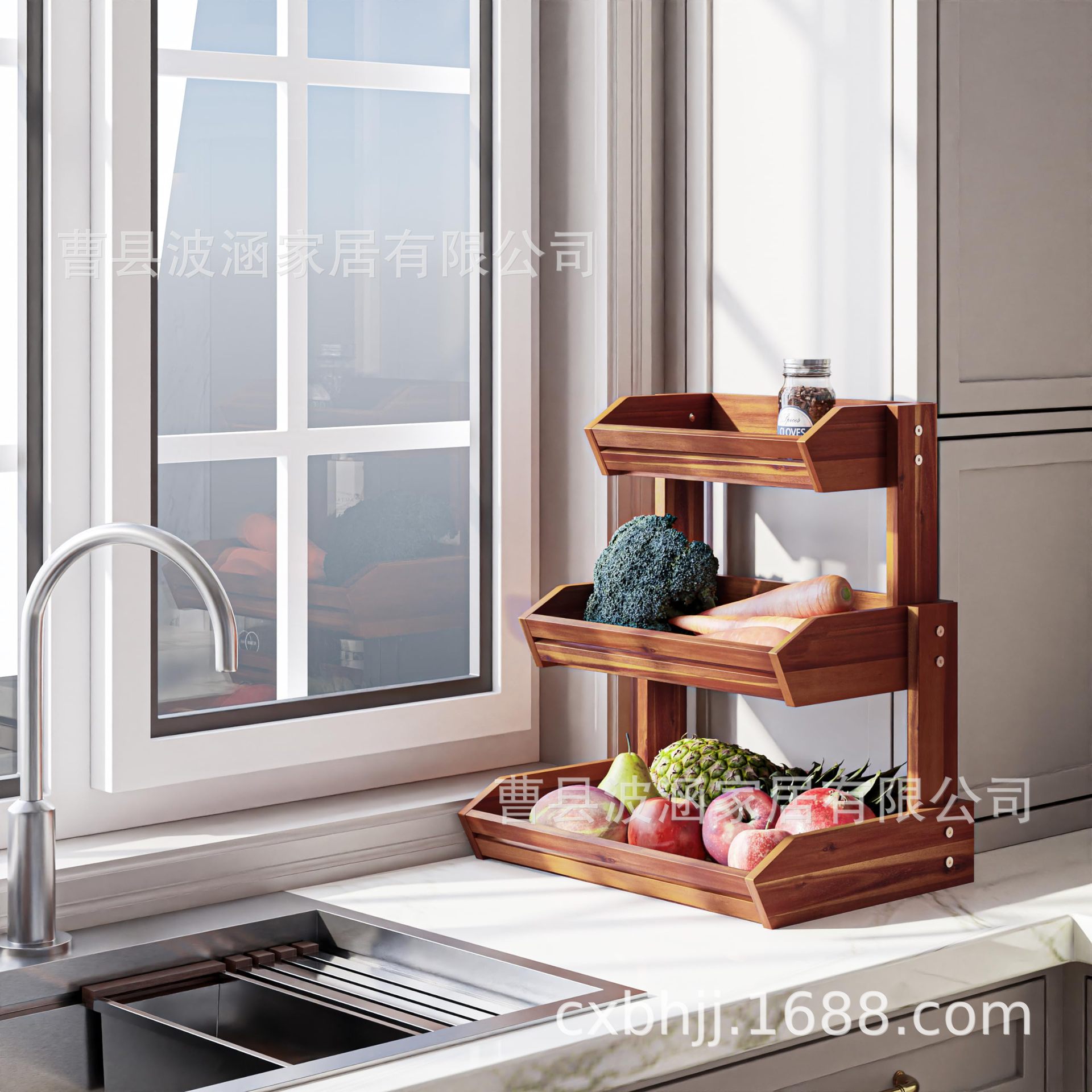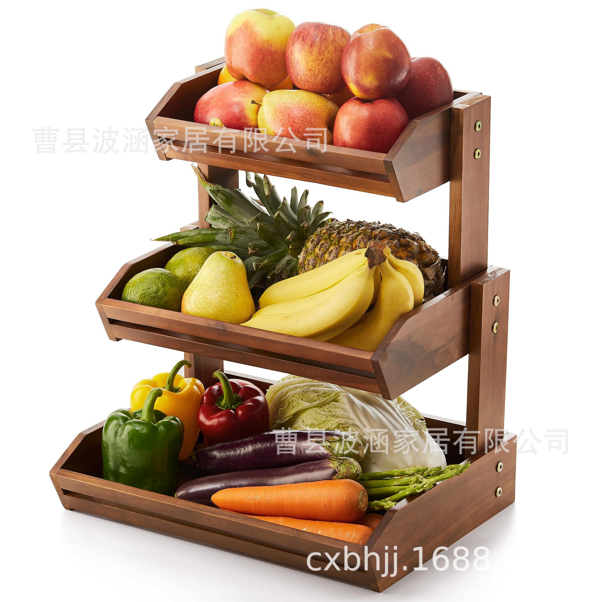 나무 3층 수납 선반 주방 수납 선반 데스크탑 수납 야채 빵 바구니 스낵 과일 잡화 수납 바구니