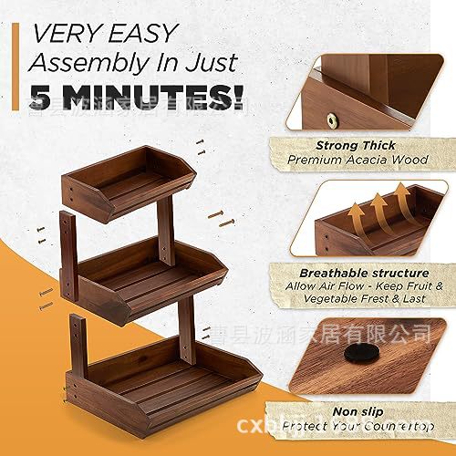 나무 3층 수납 선반 주방 수납 선반 데스크탑 수납 야채 빵 바구니 스낵 과일 잡화 수납 바구니스토어 가기