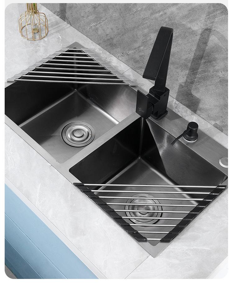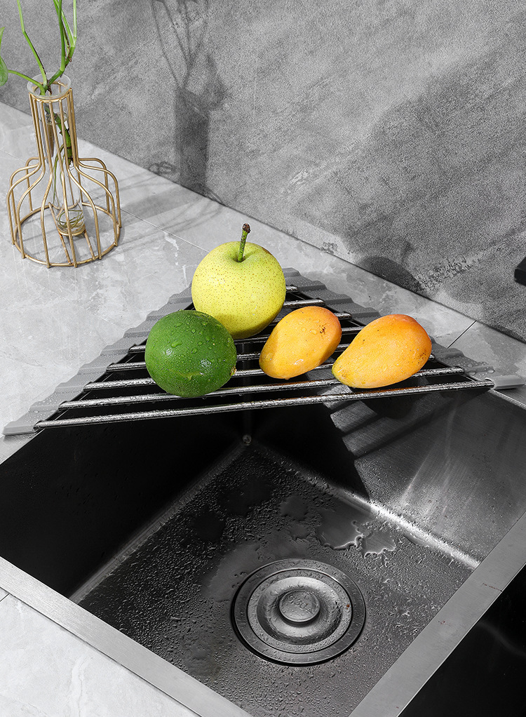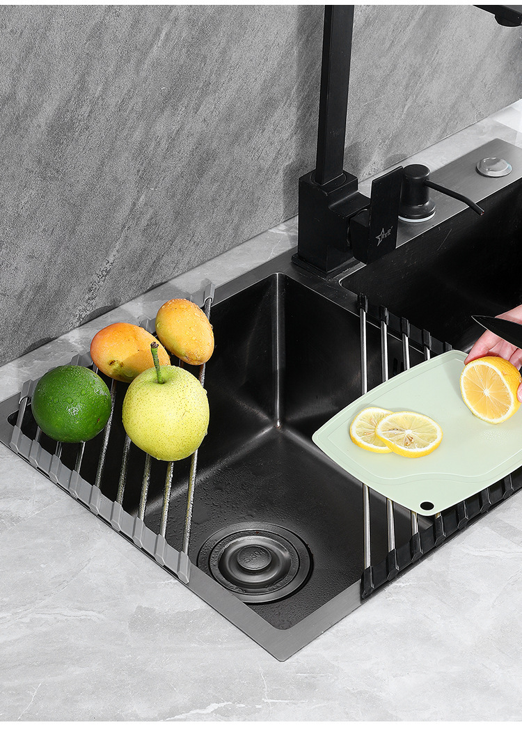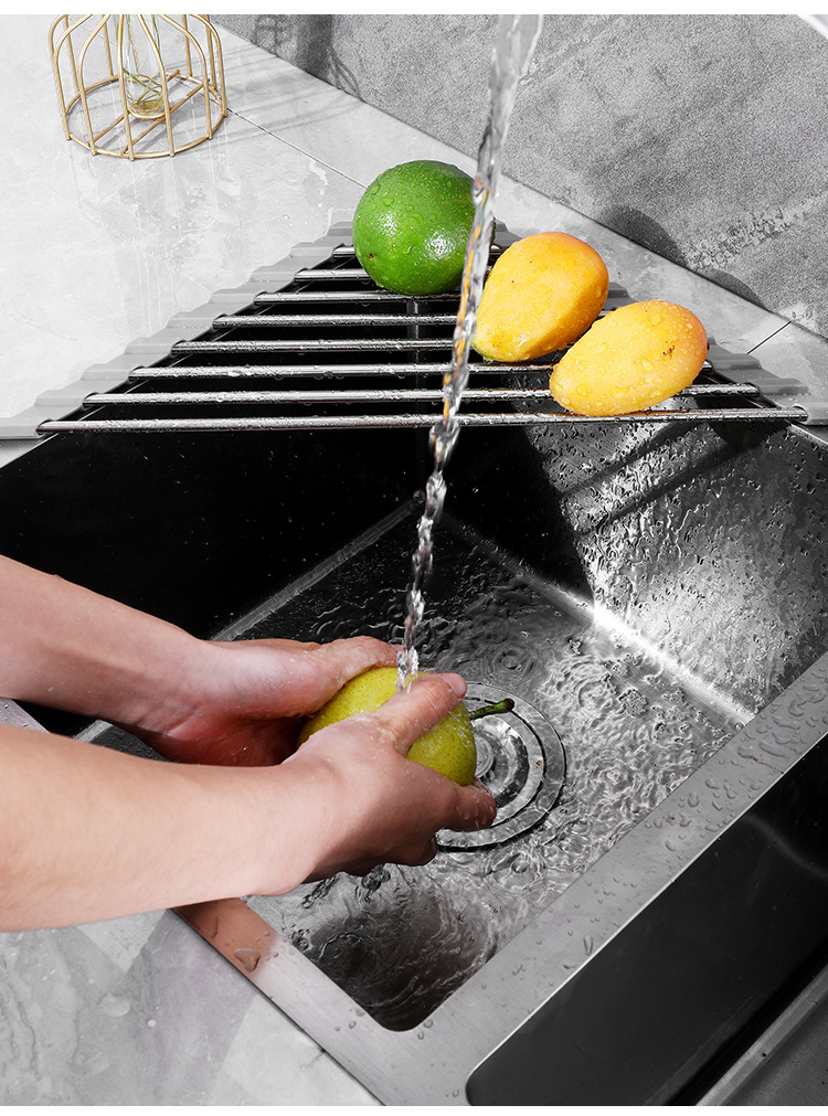 스테인레스 스틸 배수구 다기능 접이식 과일 및 야채 배수구 싱크대 주방 접시 배수 바구니 배수 롤러 셔터