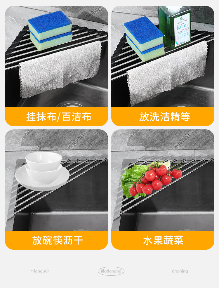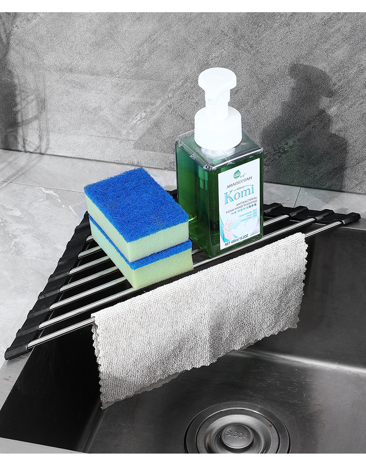 스테인레스 스틸 배수구 다기능 접이식 과일 및 야채 배수구 싱크대 주방 접시 배수 바구니 배수 롤러 셔터스토어 가기