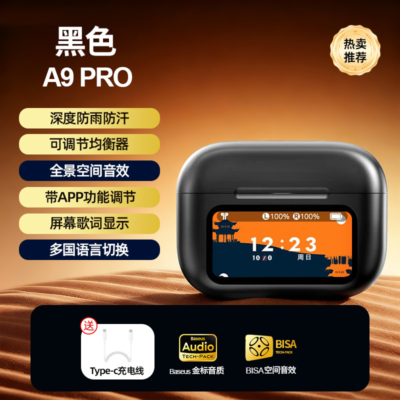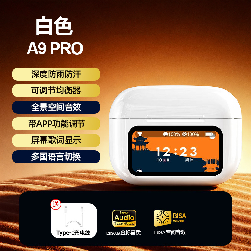 인기 a9pro 무선 블루투스 이어폰, 긴 배터리 수명, ANC 소음 감소, 스마트 컬러 스크린, 스포츠용 화창북 이어폰